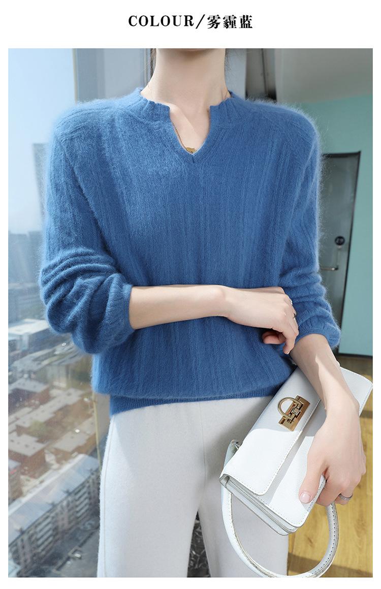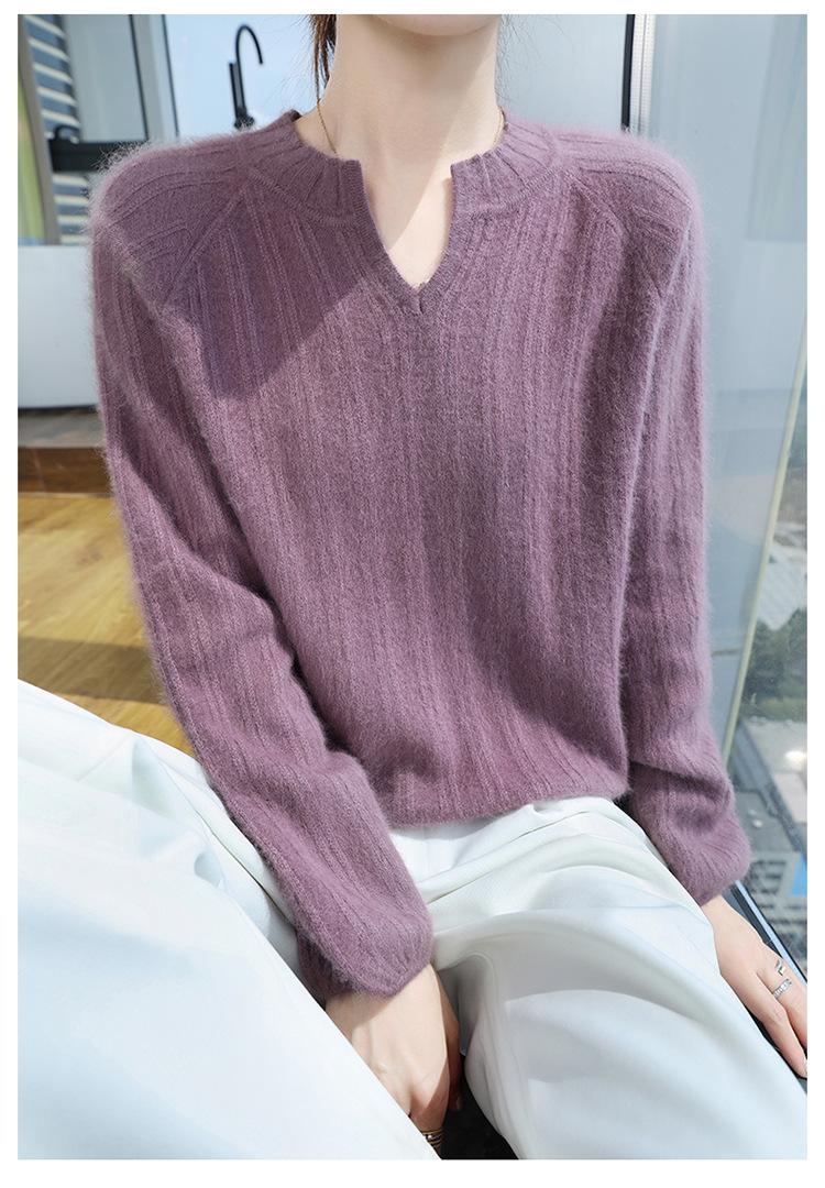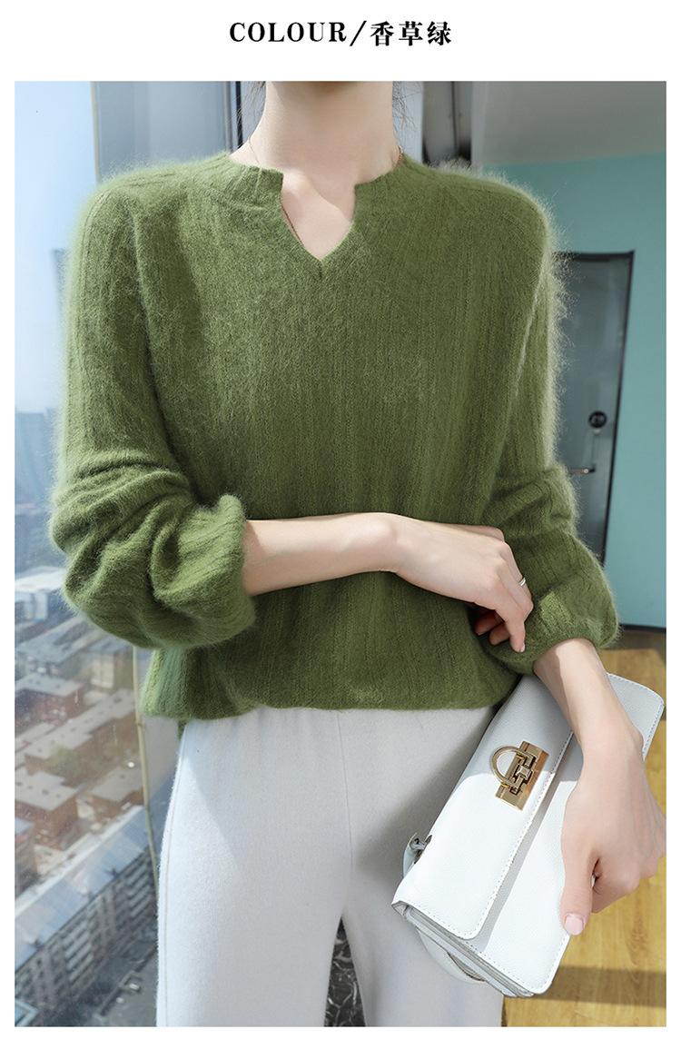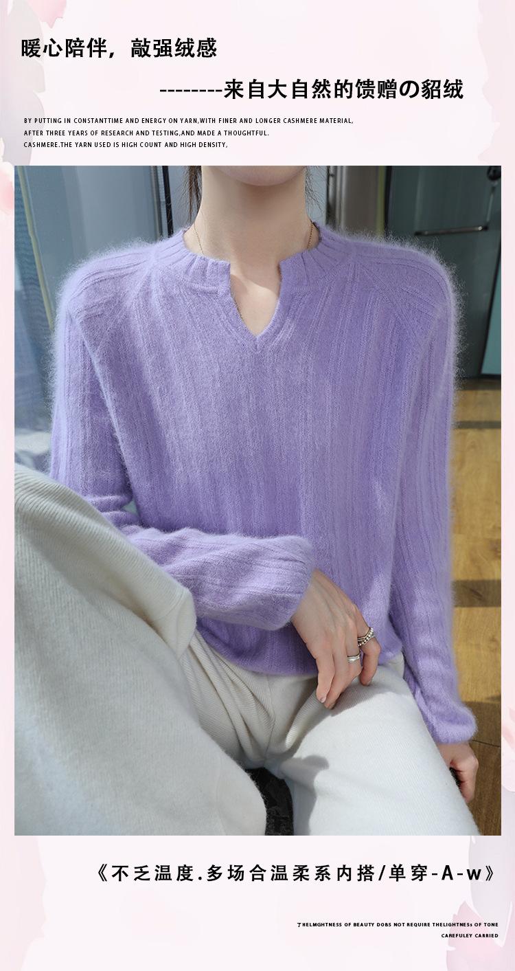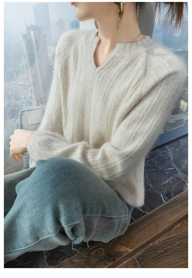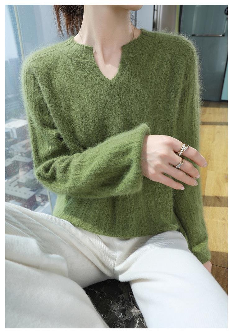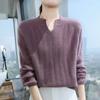Suéter de visón para otoño e invierno de 2024, suéter holgado con cuello en V para mujer, suéter corto de lana de color liso, suéter cálido.