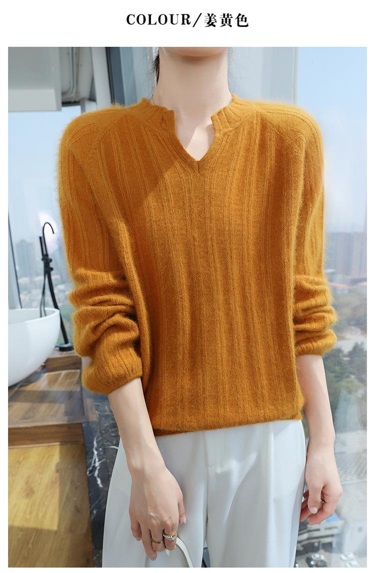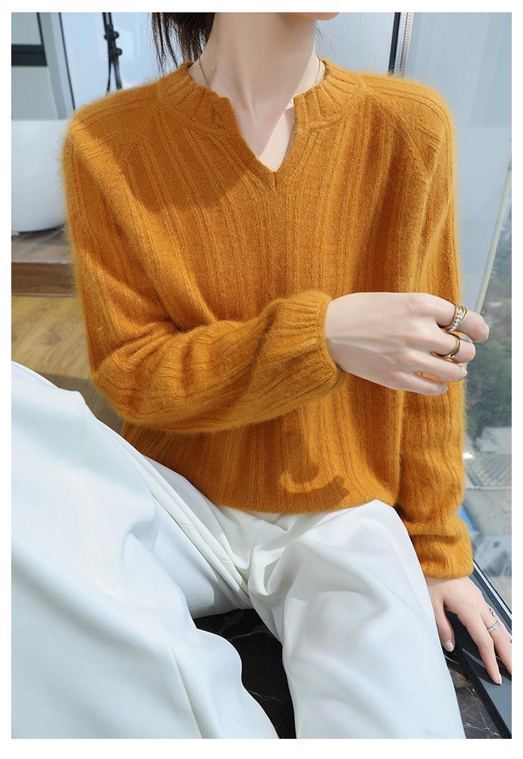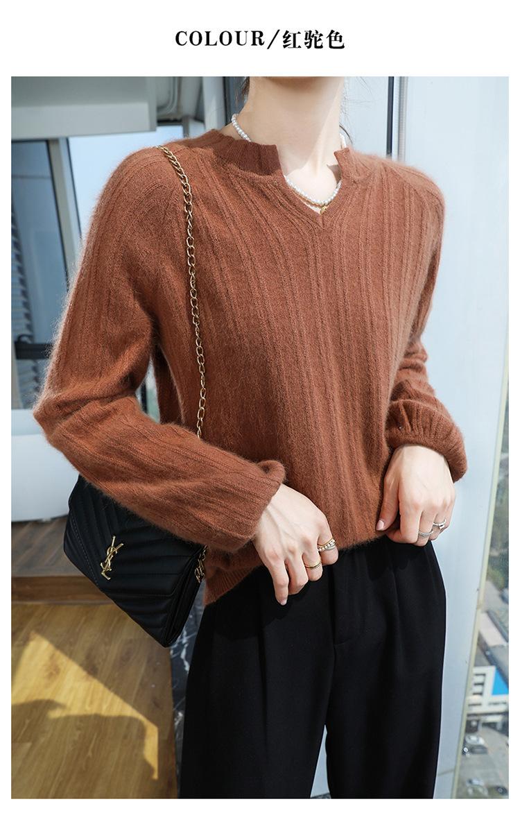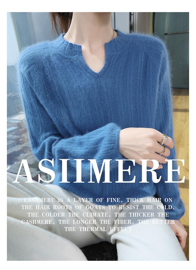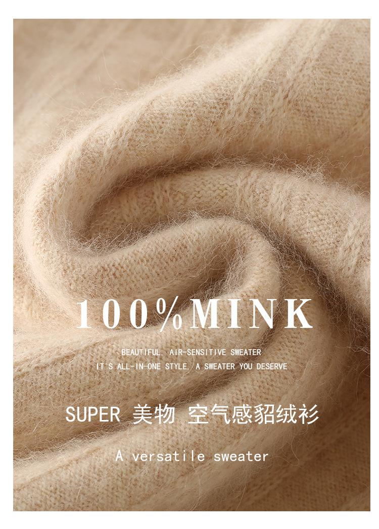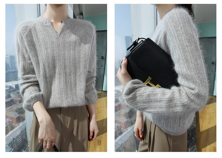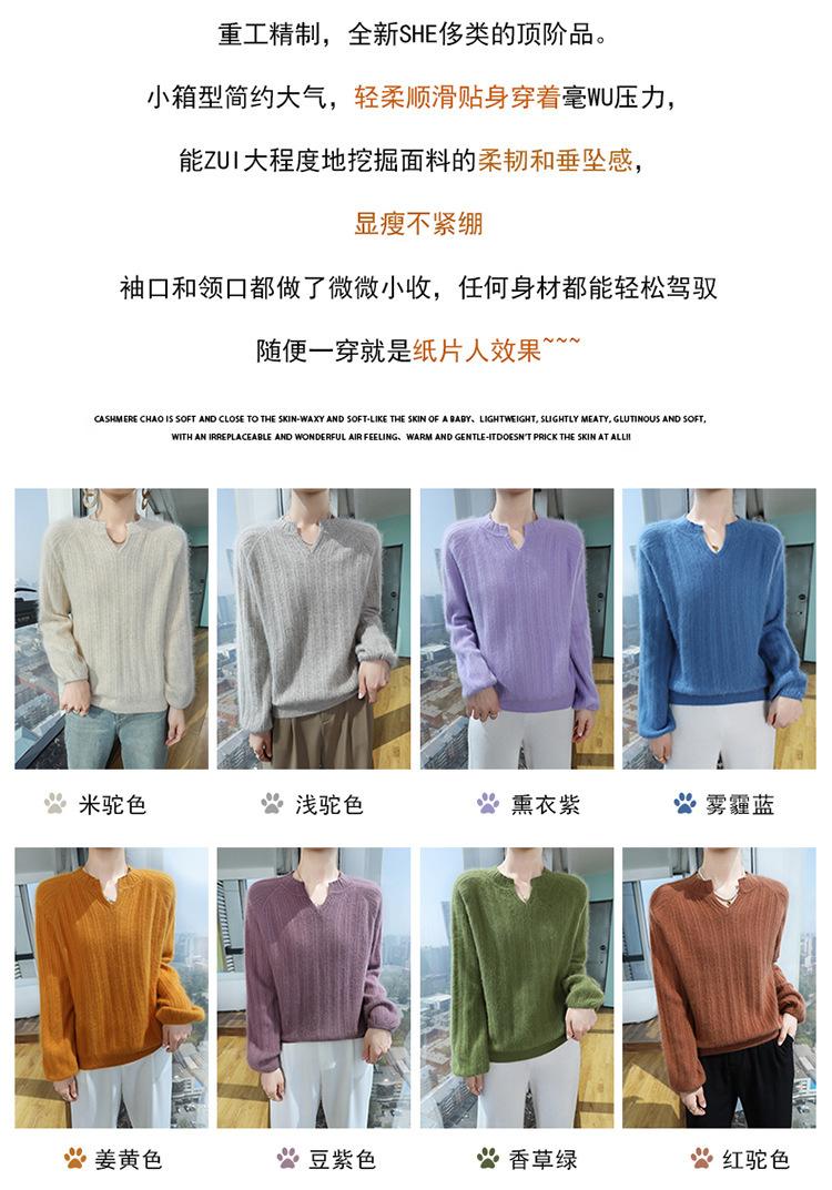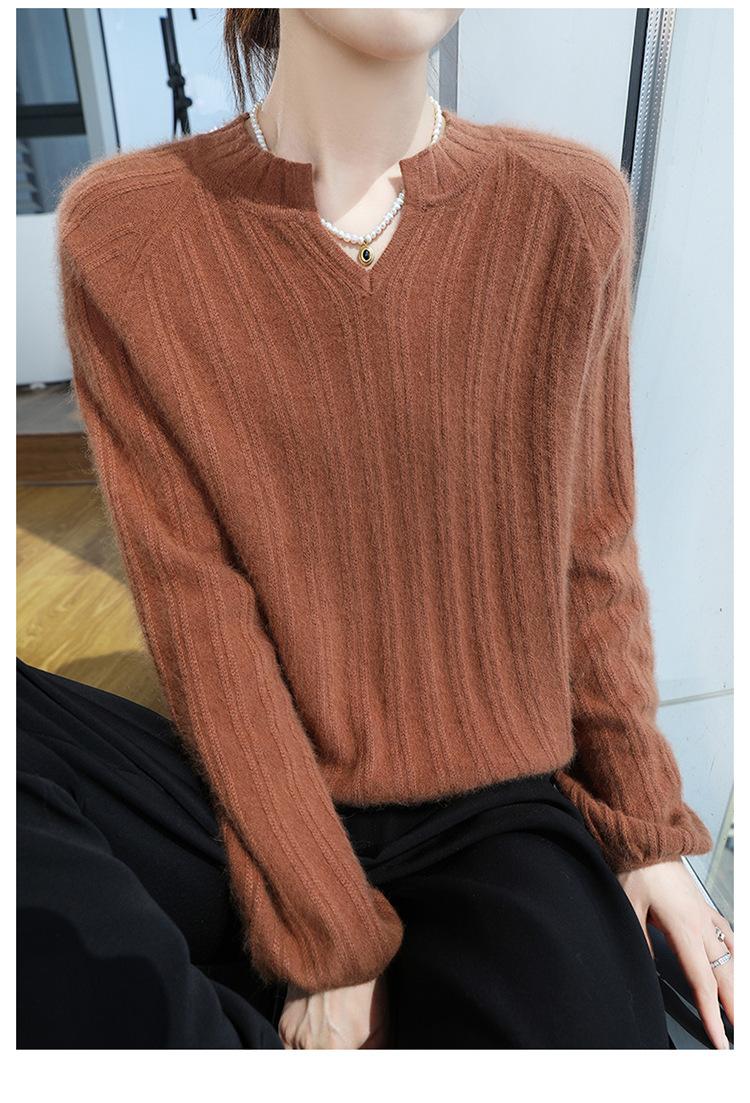 Suéter de visón para otoño e invierno de 2024, suéter holgado con cuello en V para mujer, suéter corto de lana de color liso, suéter cálido.