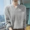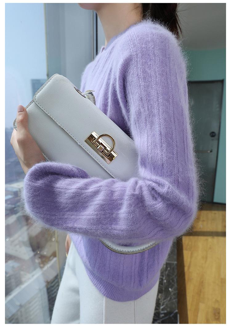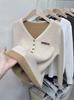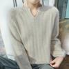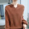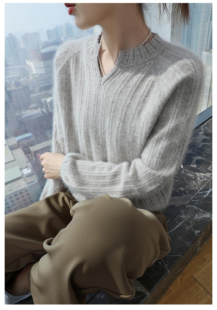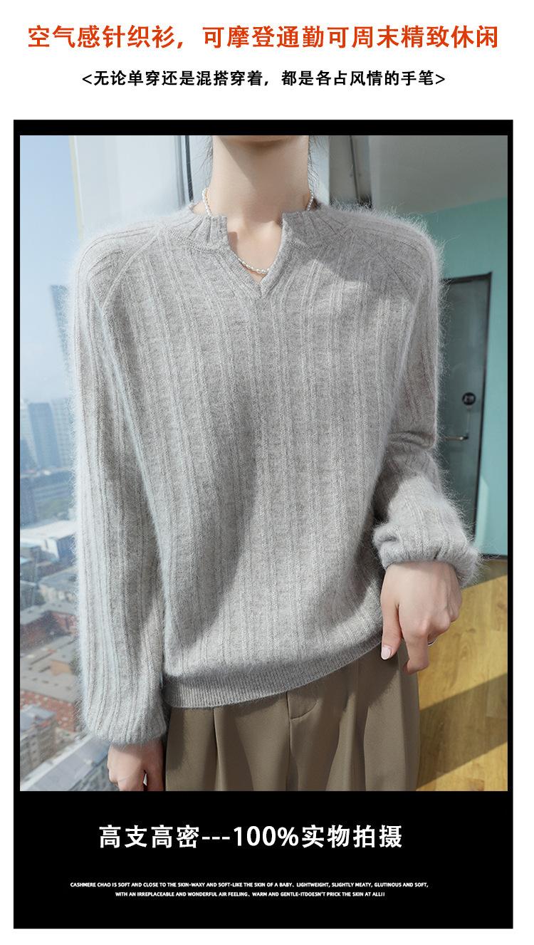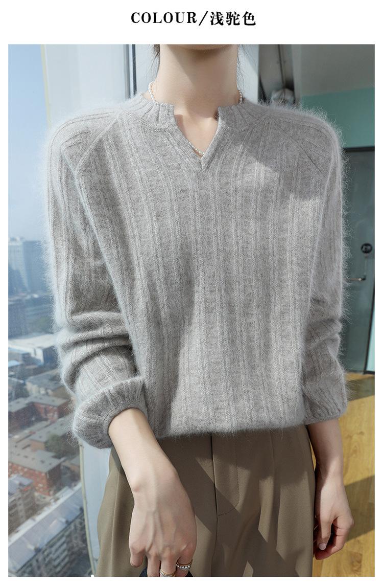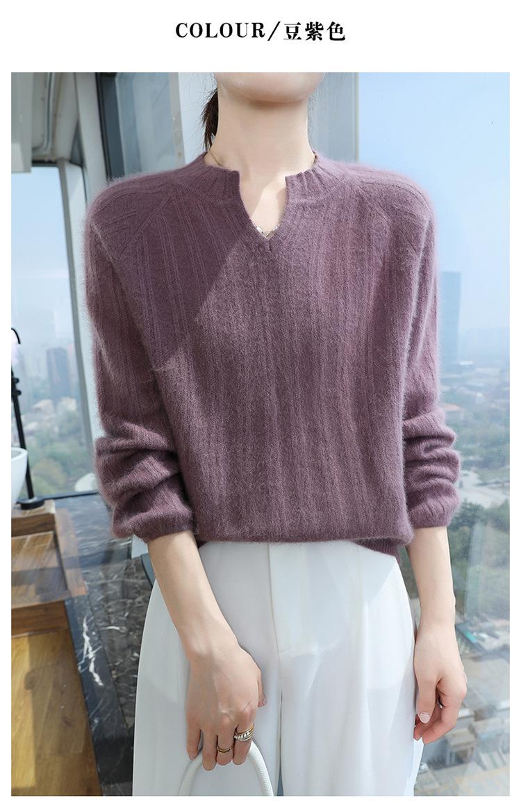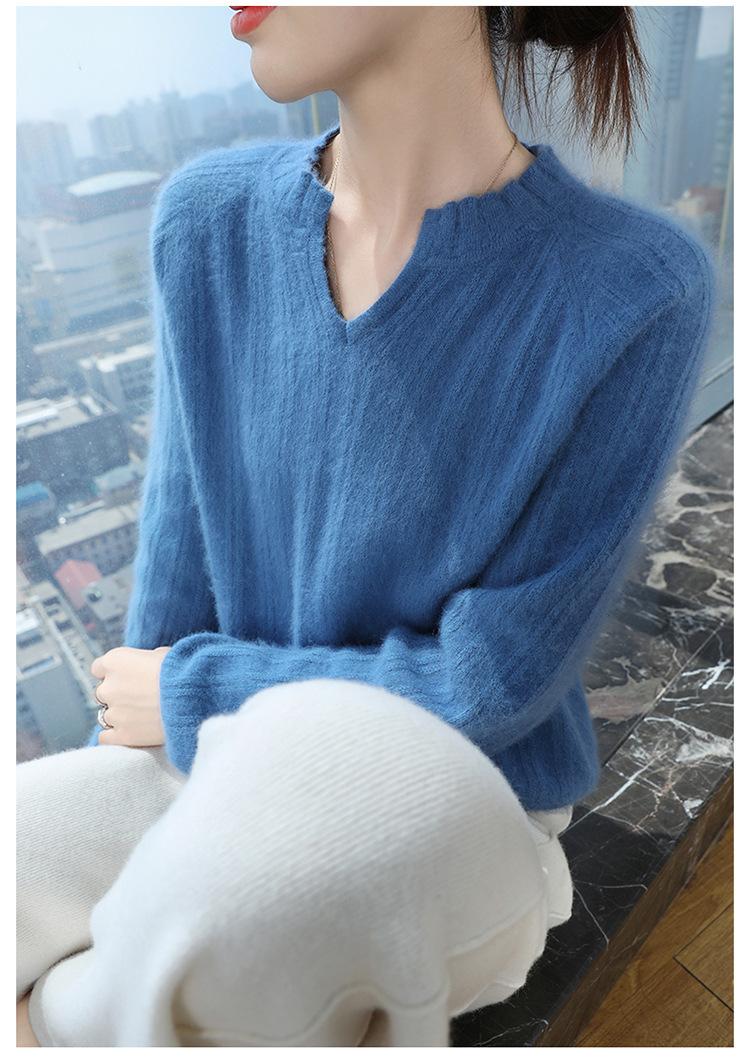 Suéter de visón para otoño e invierno de 2024, suéter holgado con cuello en V para mujer, suéter corto de lana de color liso, suéter cálido.