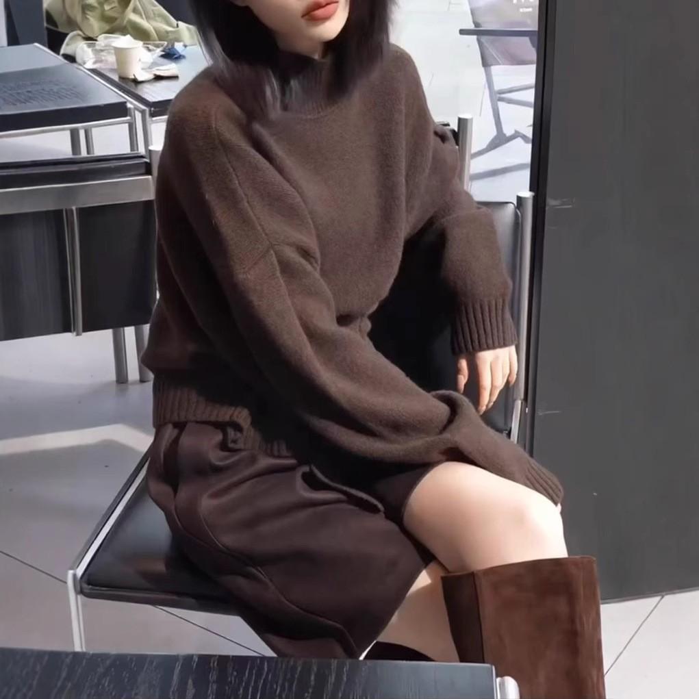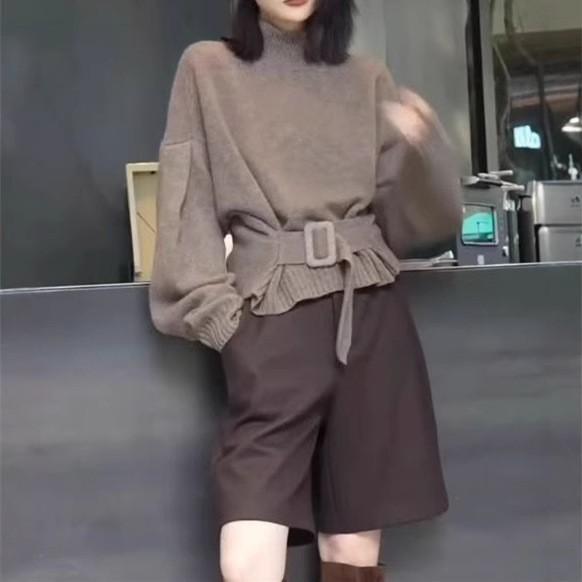 241156 Big Love Meiyuan 2025 Otoño e Invierno Nuevo Top Holgado de Cuello Redondo de Gama Alta Casual Pantalón Pirata para Mujer Moderno