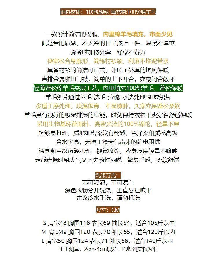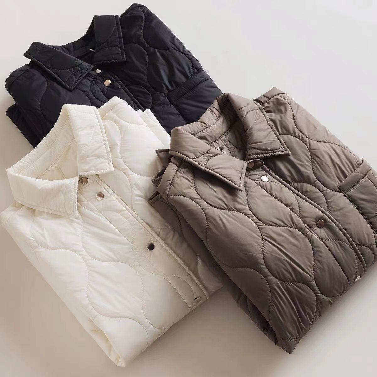 Japonés Commuter Sencillo Calabaza Acolchado Lana Acolchada Ligero Cálido Suelto Casual Camisa Algodón Acolchado Chaqueta Abrigo de Mujer
