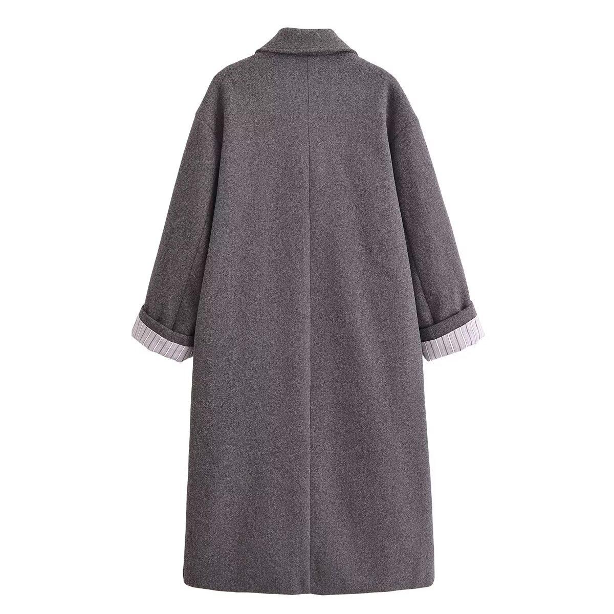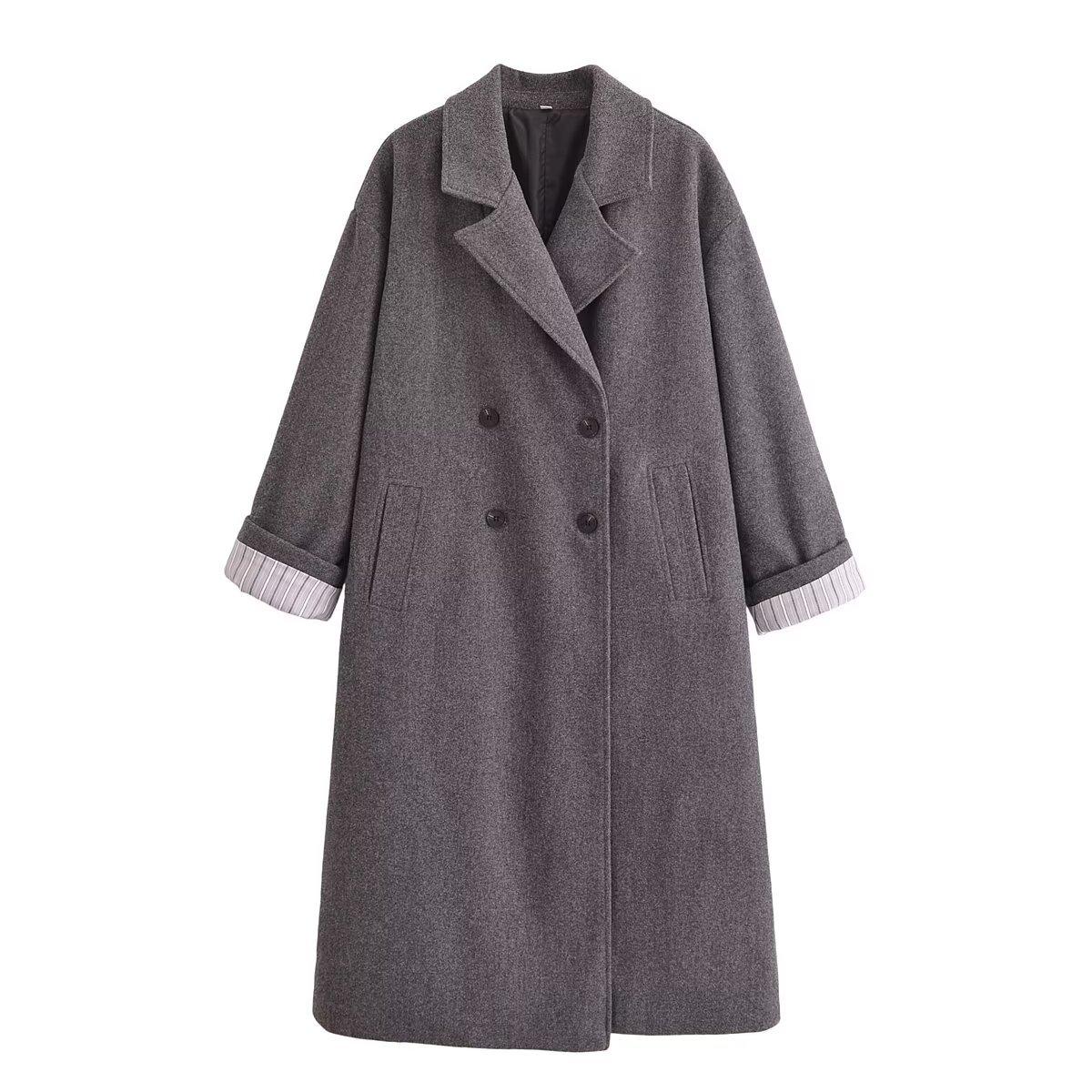 Abrigo largo holgado de lana cruzado para mujer, otoño e invierno 2024, nueva moda, comercio exterior transfronterizo de Amazon, Europa y América