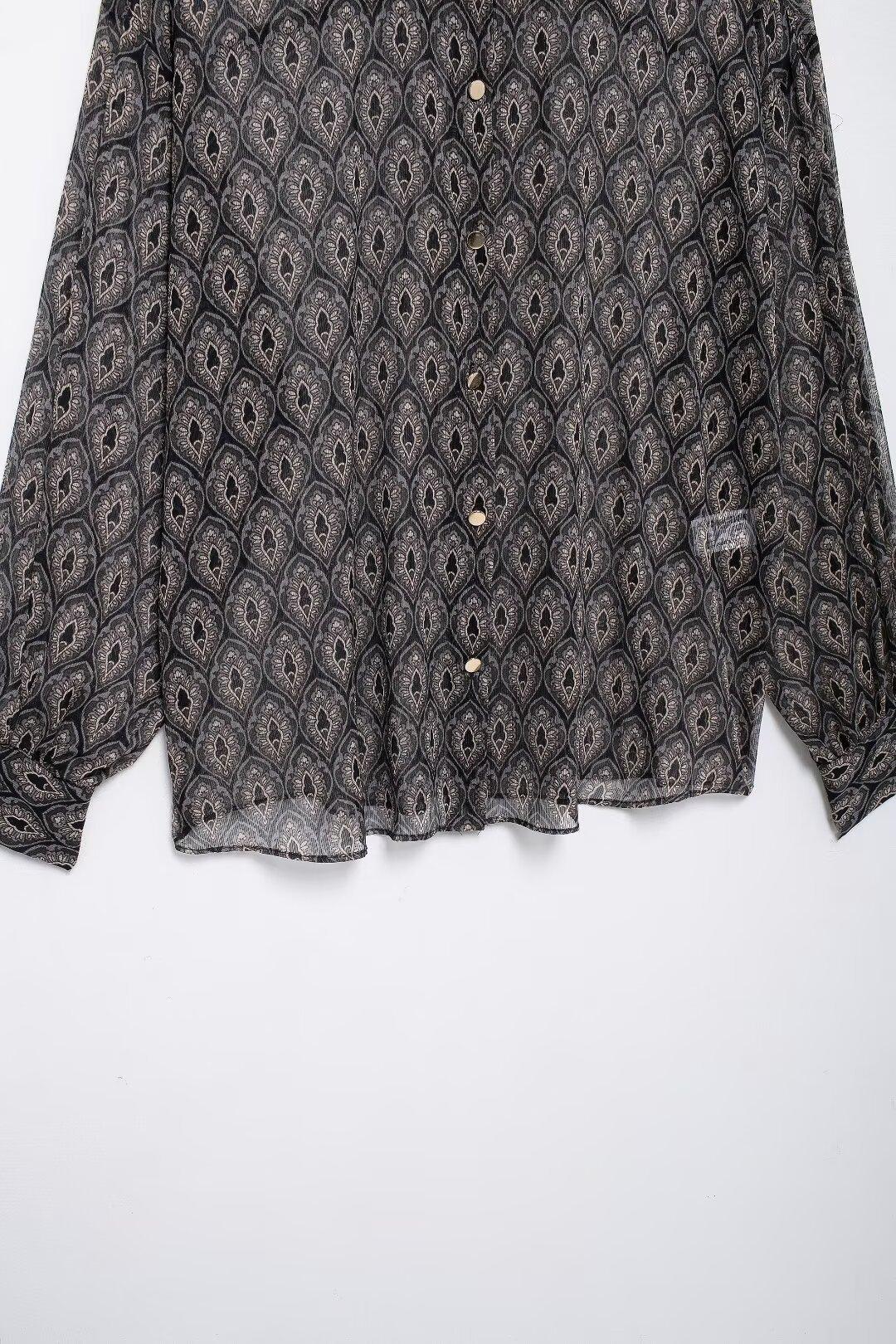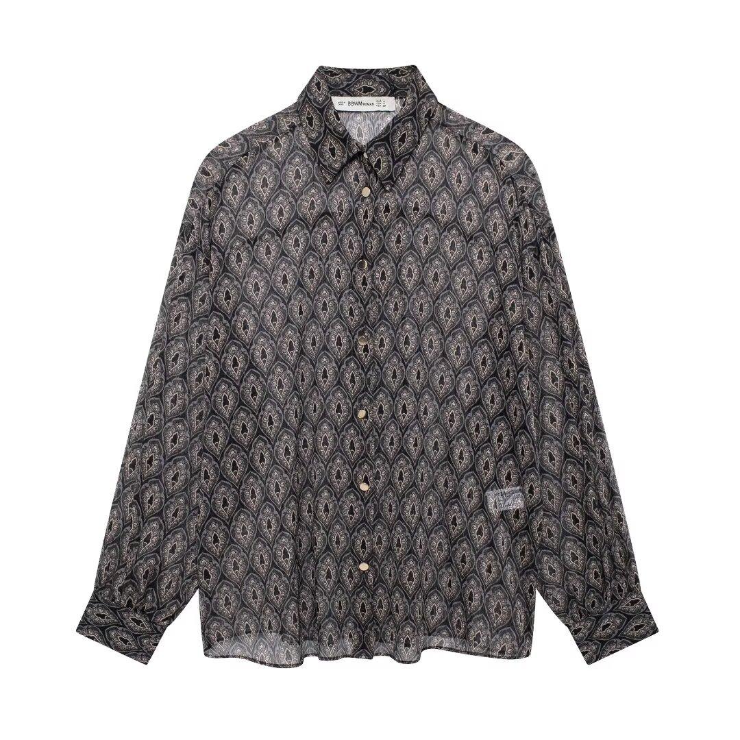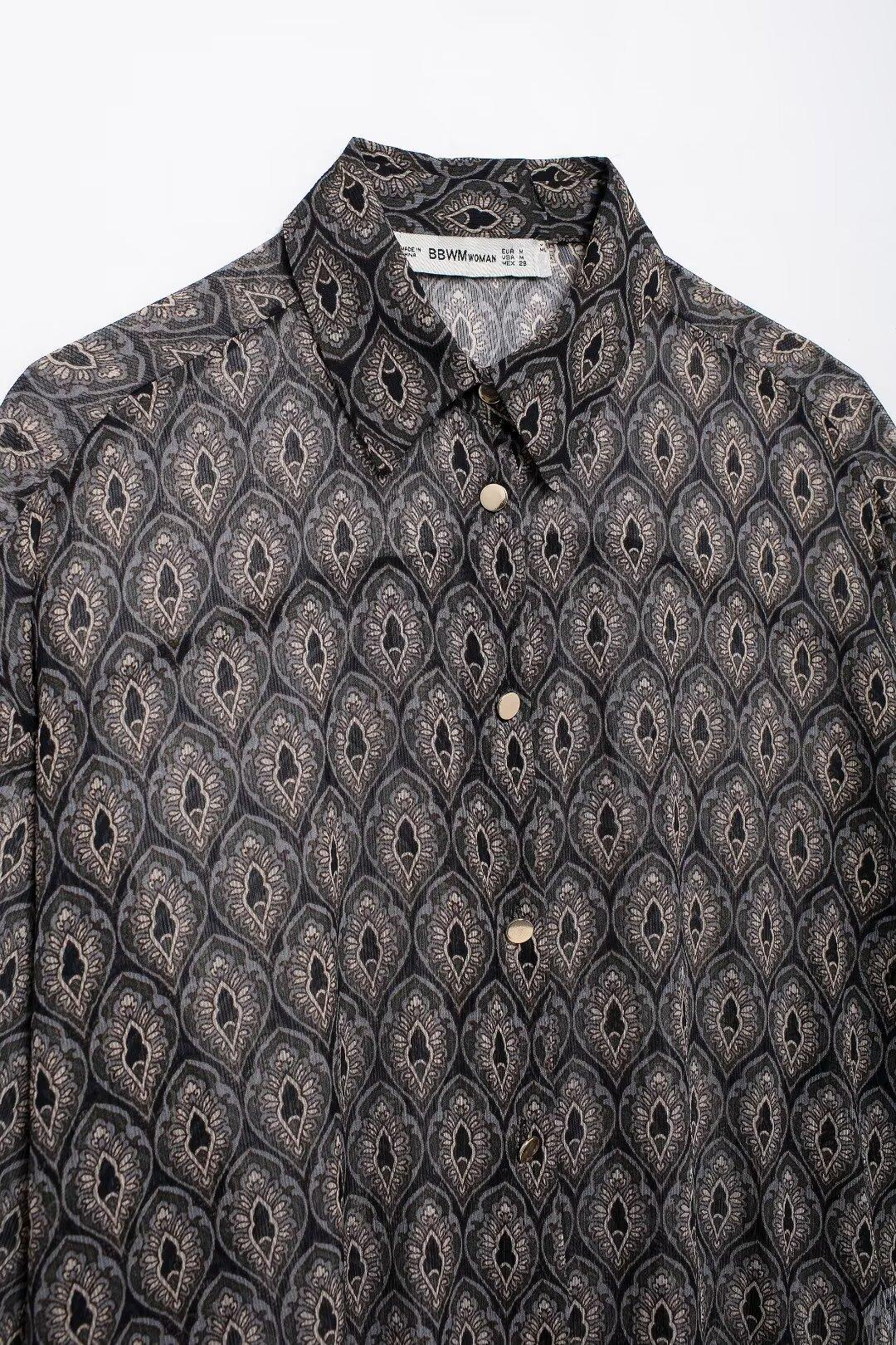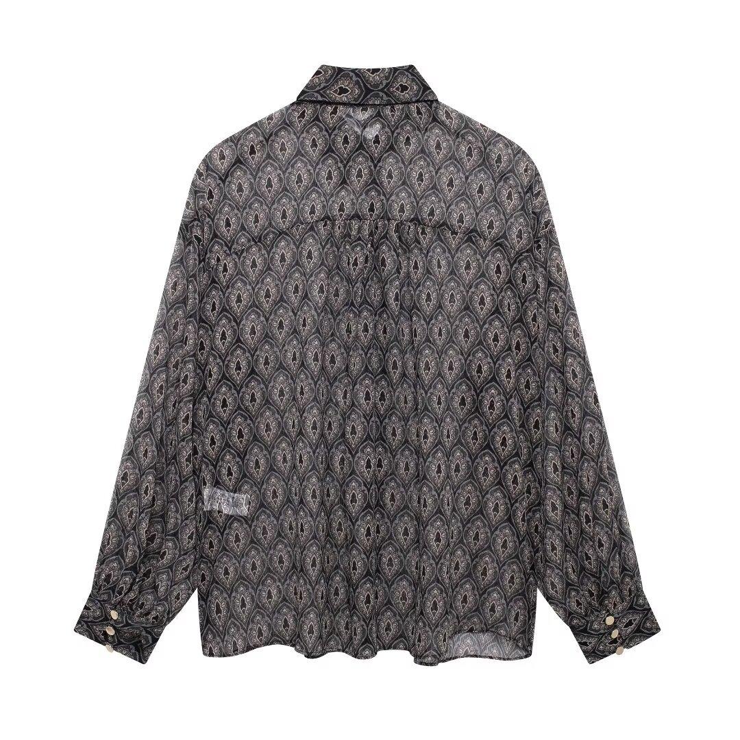 Ropa de Mujer de Comercio Exterior 2024 Moda Otoño Diseño Retro Camisa Elegante Estampada Diseño Nicho Top con Solapa para Mujer