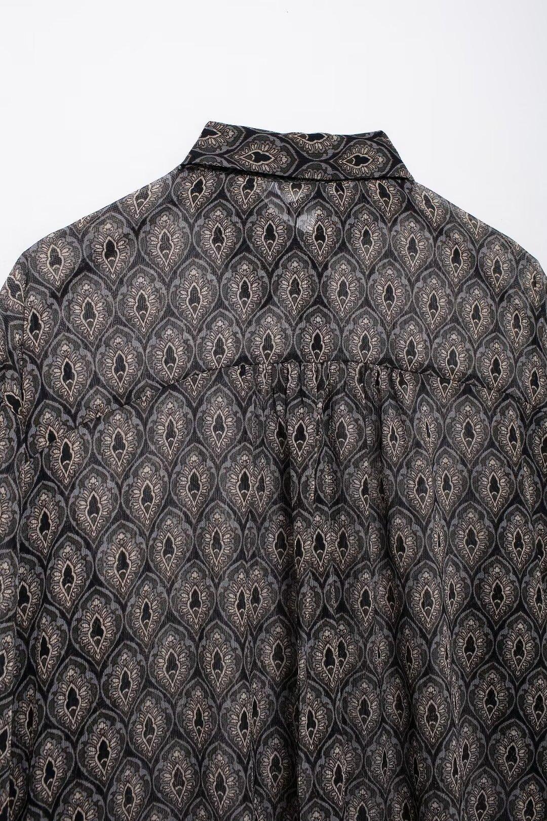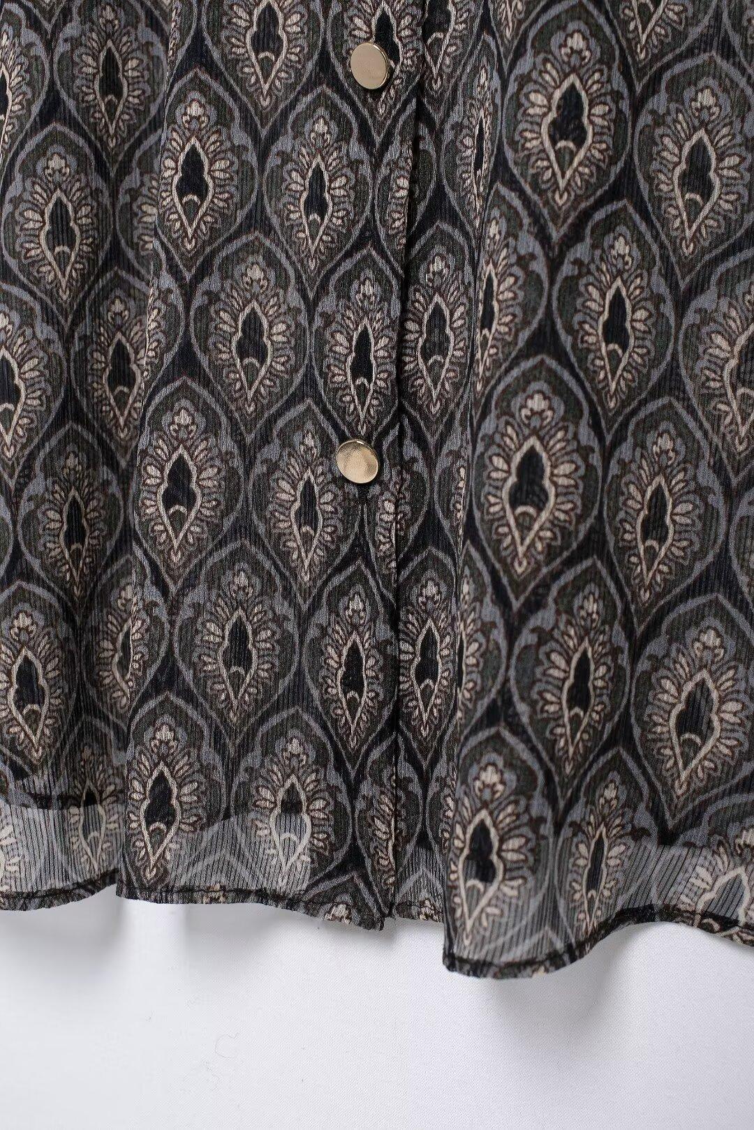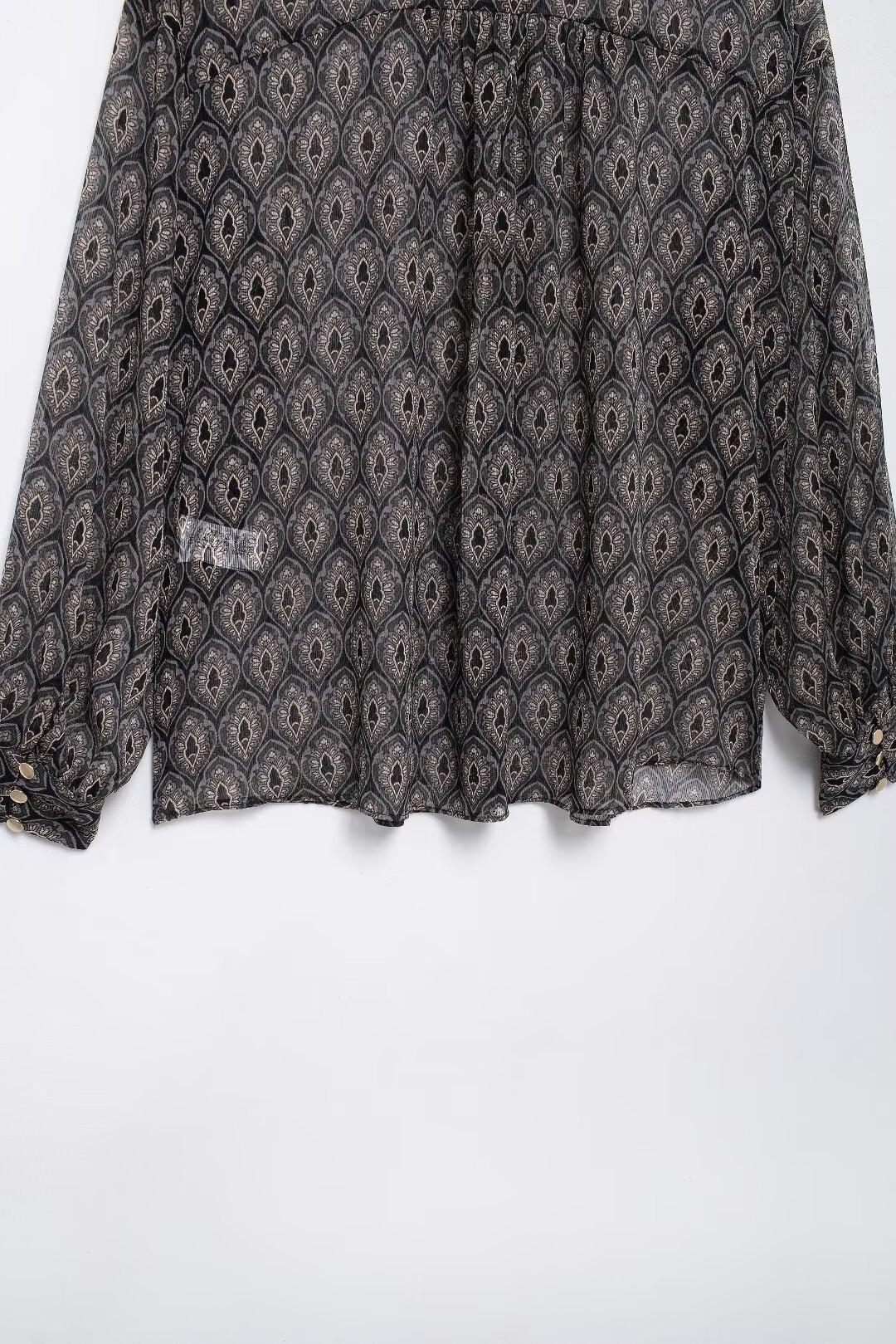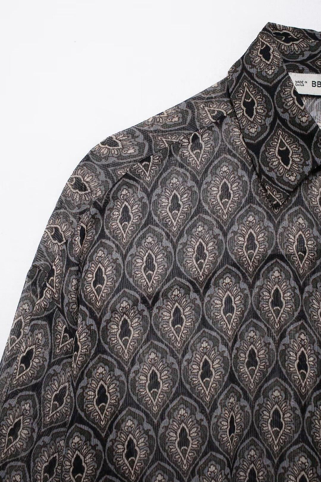 Ropa de Mujer de Comercio Exterior 2024 Moda Otoño Diseño Retro Camisa Elegante Estampada Diseño Nicho Top con Solapa para Mujer