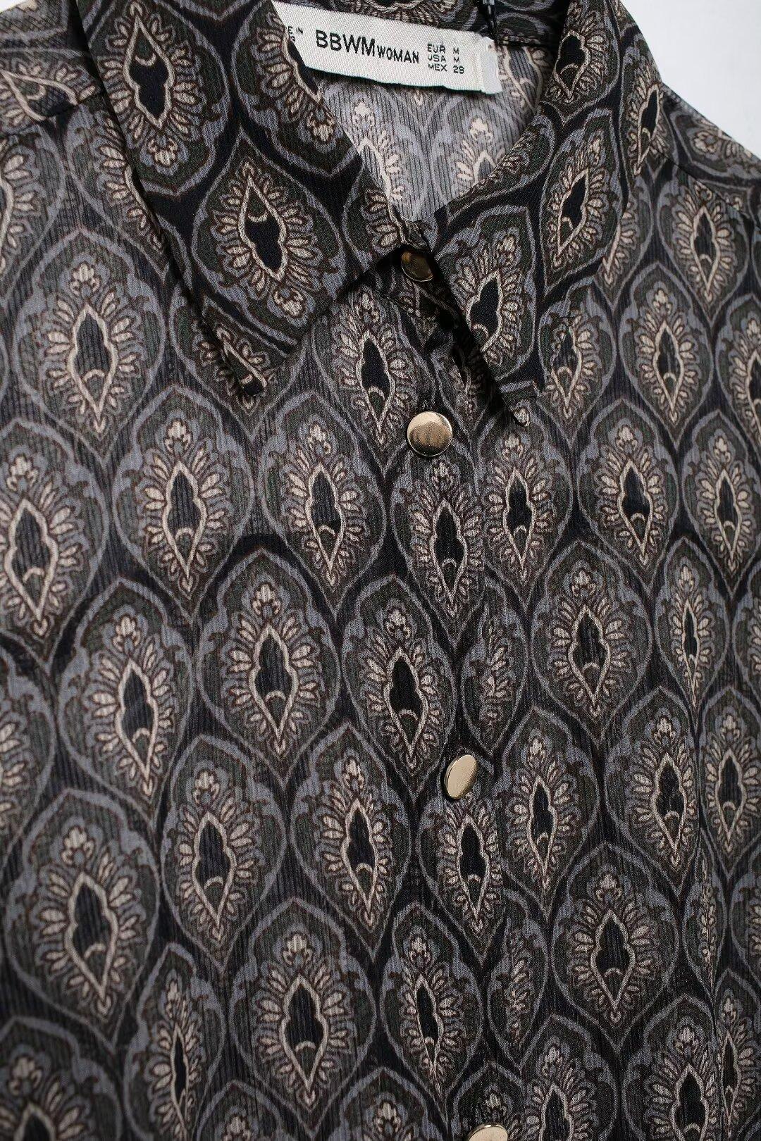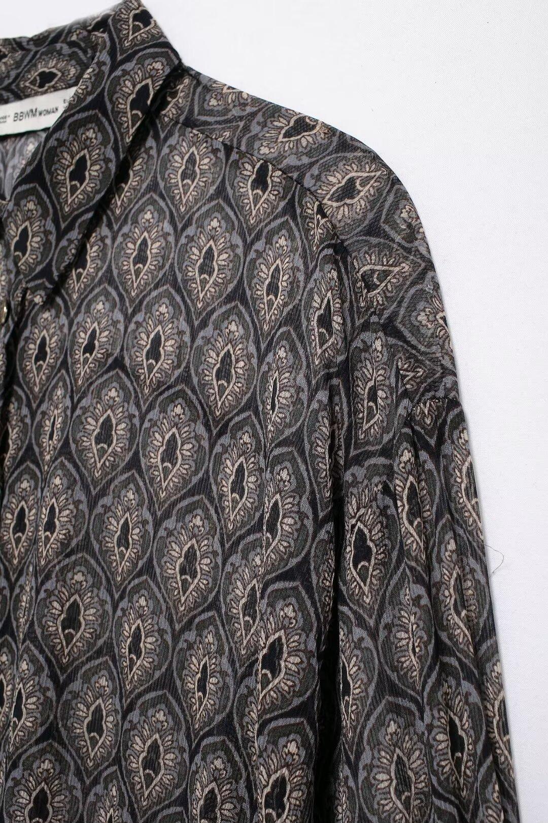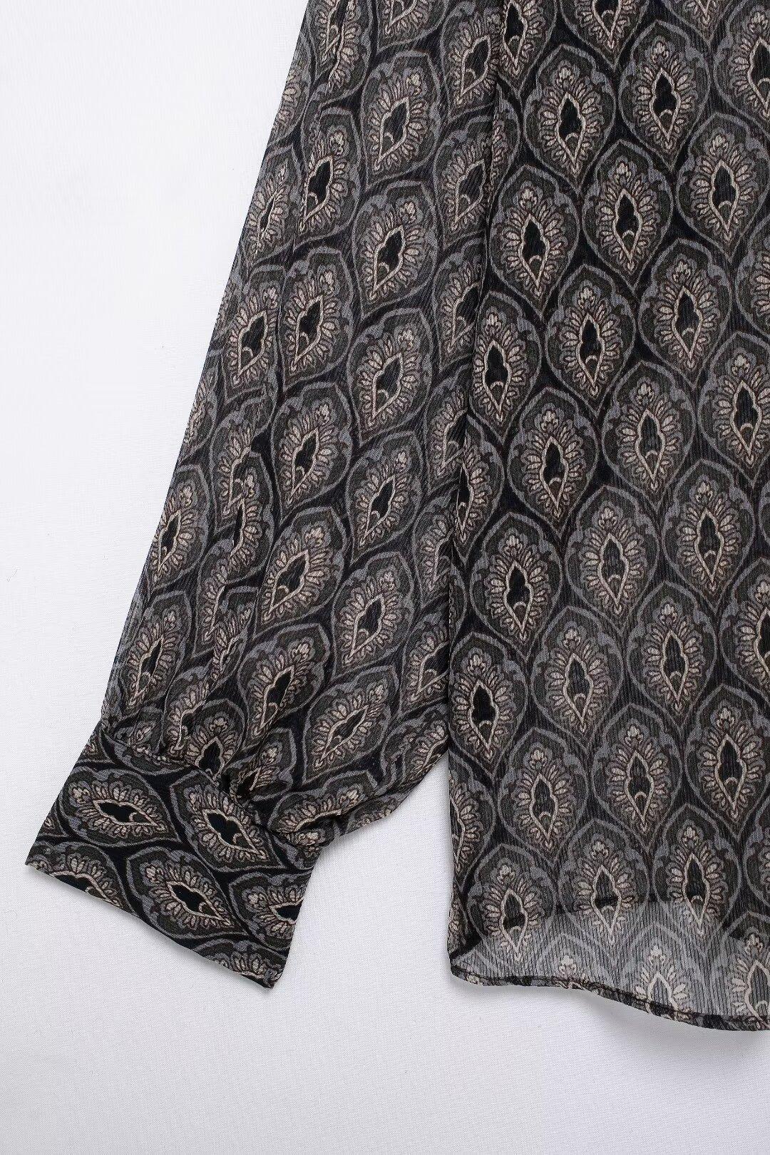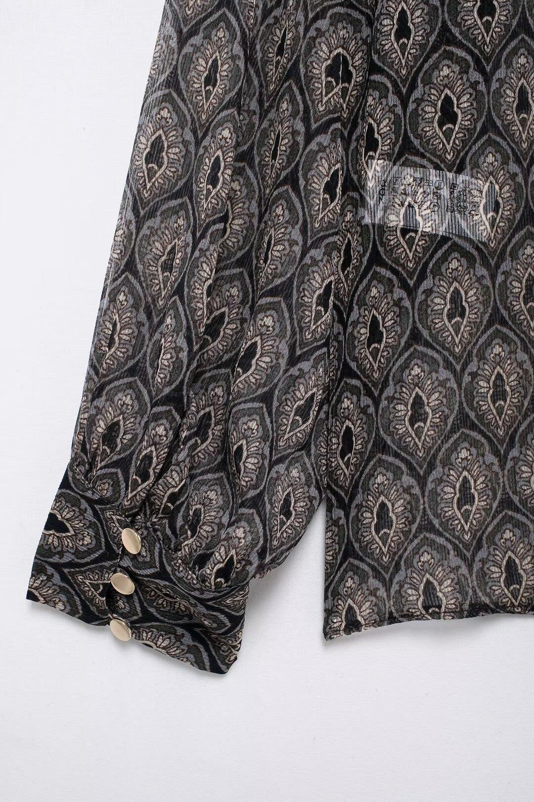 Ropa de Mujer de Comercio Exterior 2024 Moda Otoño Diseño Retro Camisa Elegante Estampada Diseño Nicho Top con Solapa para Mujer