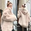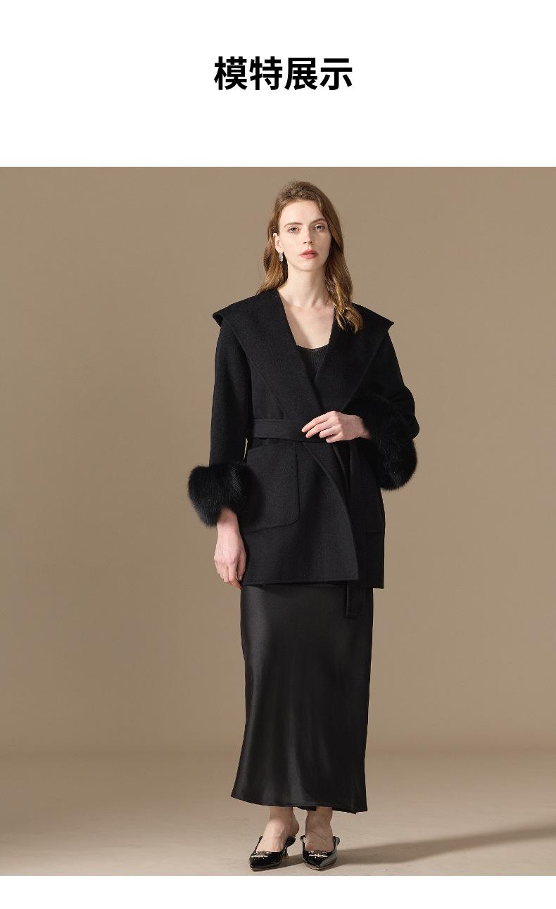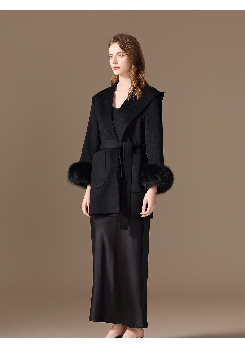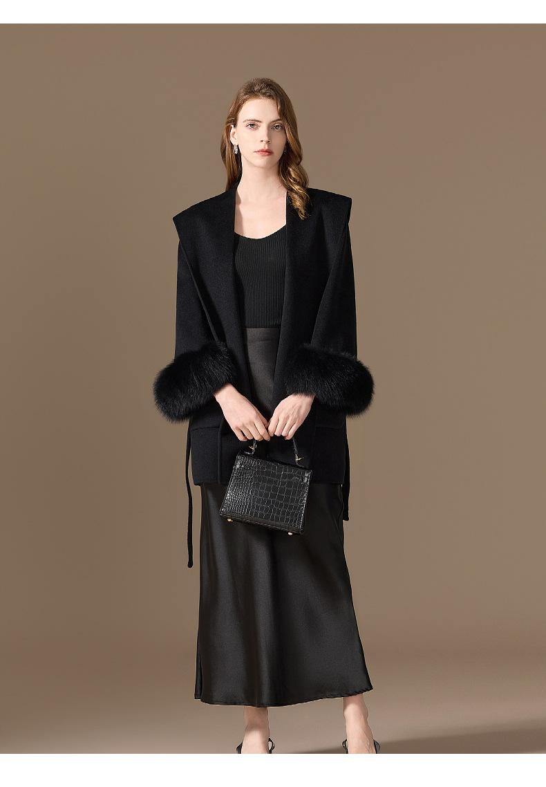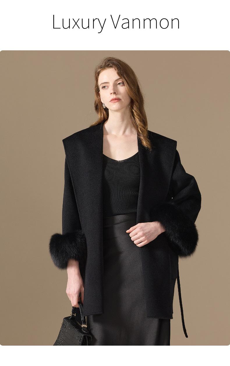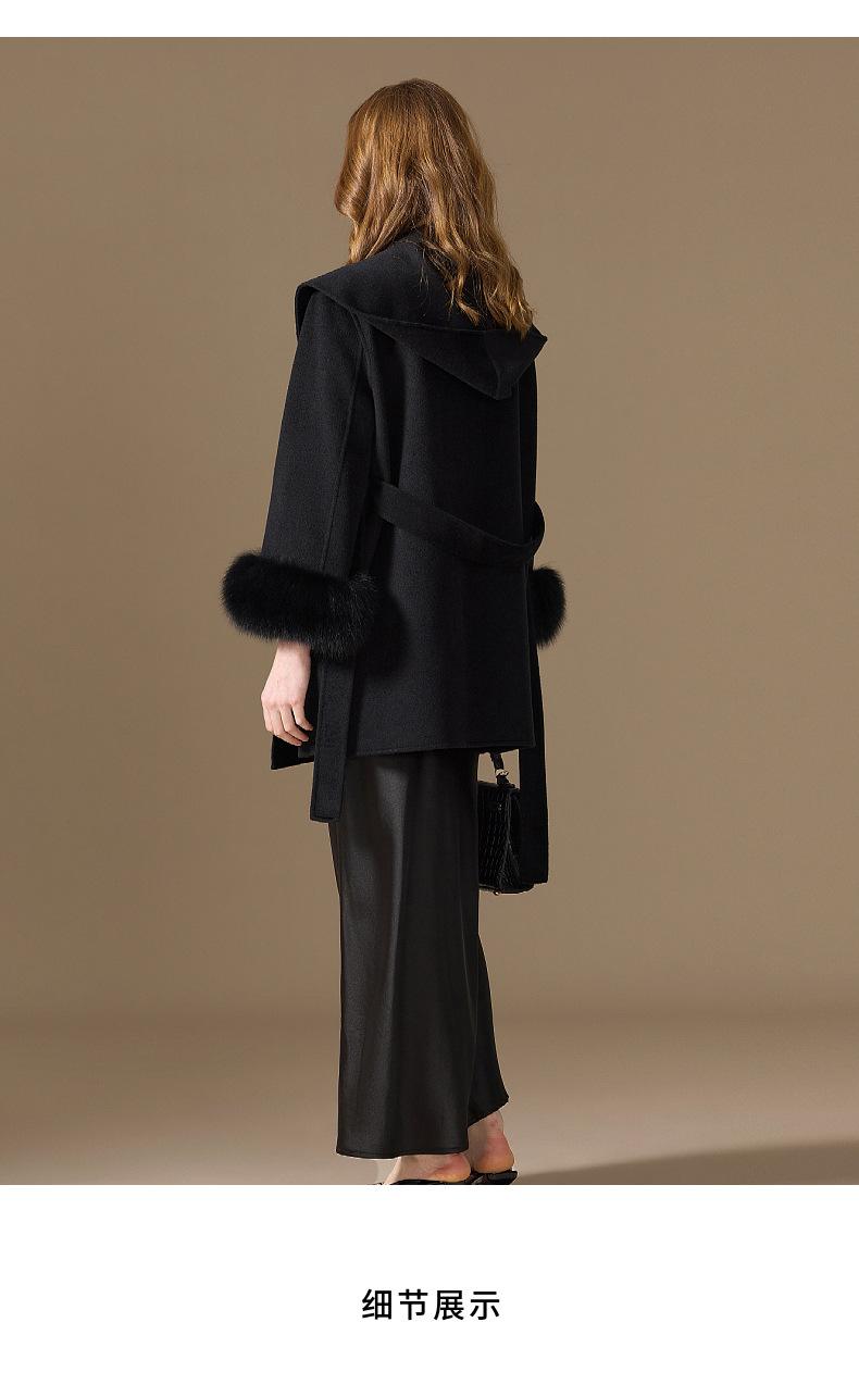 10 abrigos de cachemira para mujer, gorro corto, otoño e invierno, nuevos abrigos de lana holgados con capucha y puños de piel de zorro.