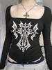 Suéter de punto con cuello redondo de moda europea y americana nuevo de otoño e invierno, suéter estampado con patrón gótico, top holgado de manga larga
