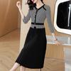 Vestido floral francés de manga larga japonés para mujer, primavera y otoño 2025, elegante camisa y falda de cintura ajustada de alta gama.