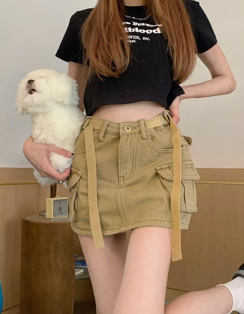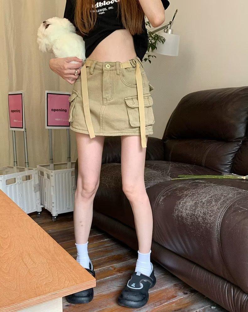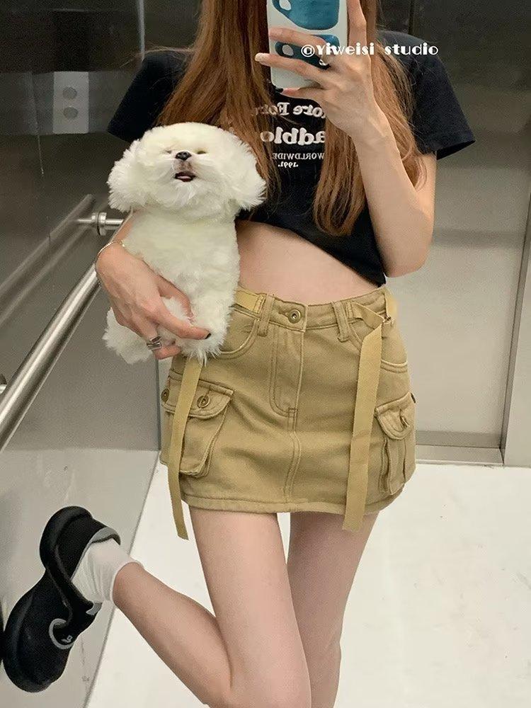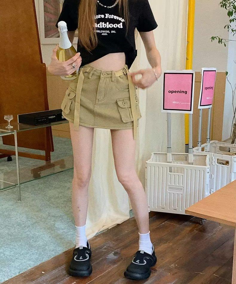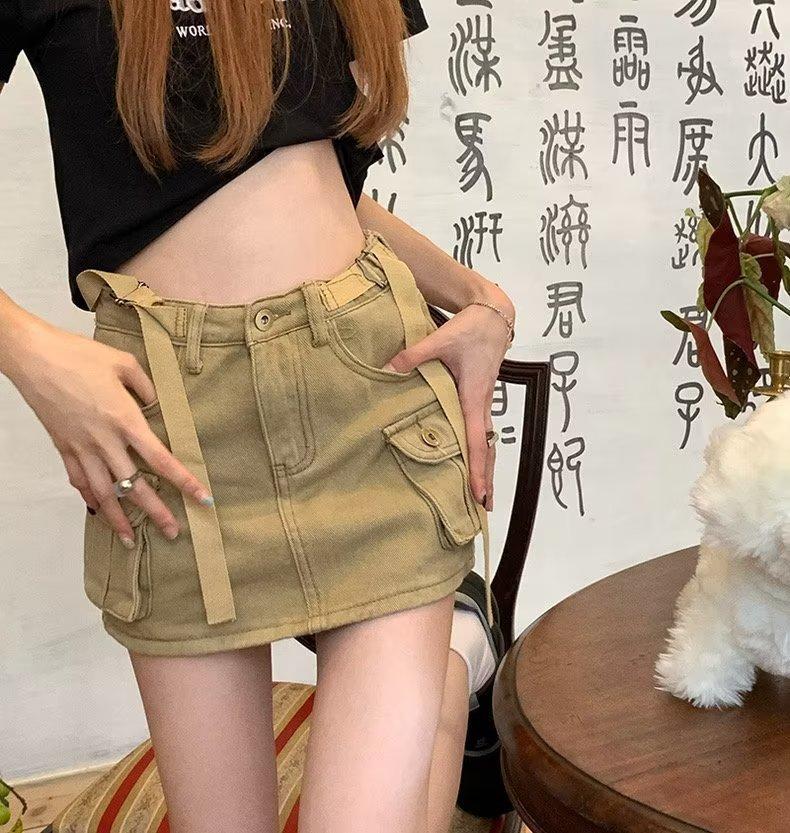 Falda Estilo Ropa de Trabajo Spice Girls Otoño 2024 Nueva Antirreflejo Cintura Alta Forma A Denim Falda de Cadera Estudiantes