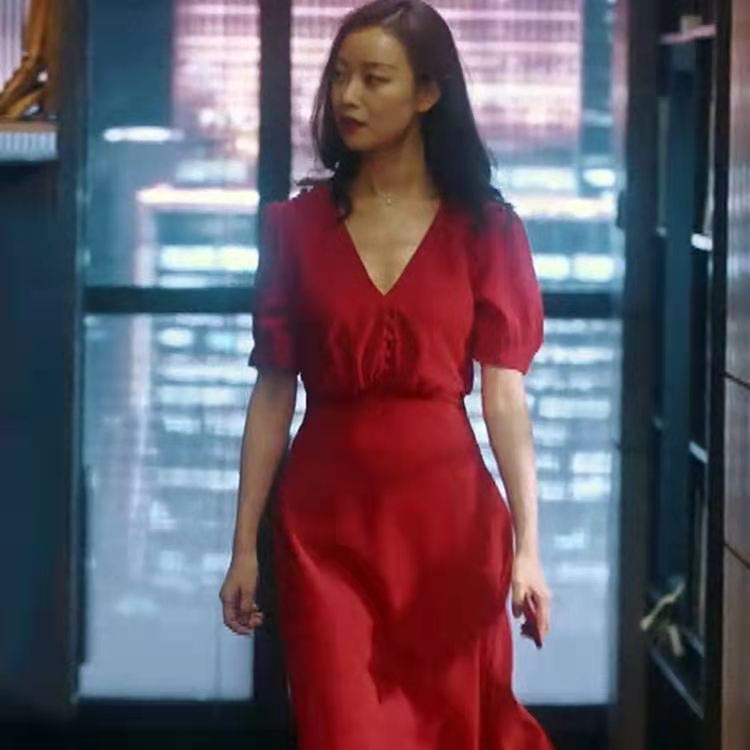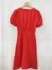 Vestido de verano de estilo celebridad, vestido de mujer rojo con escote en V, manga corta, cintura ajustada, adelgazante, vestido de mujer de alta gama.