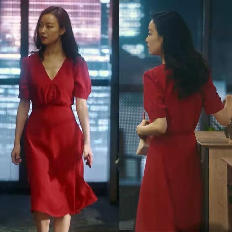 Compra Vestido de verano de estilo celebridad, vestido de mujer rojo con escote en V, manga corta, cintura ajustada, adelgazante, vestido de mujer de alta gama. al por mayor en Joom.pro