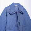 Chaqueta acolchada de algodón con rombos y encaje con solapa y volantes para mujer, estilo europeo y americano, otoño e invierno 2024