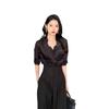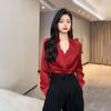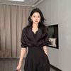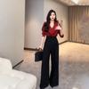 Two-piece set (burgundy shirt + black pants) spring and autumn style