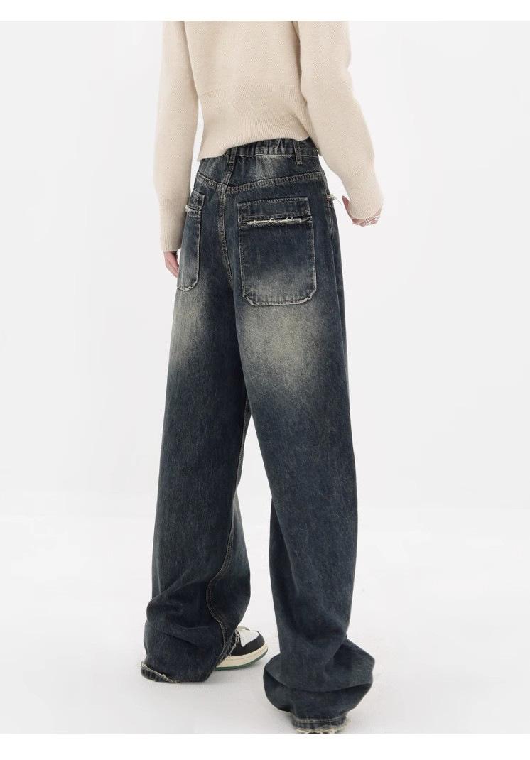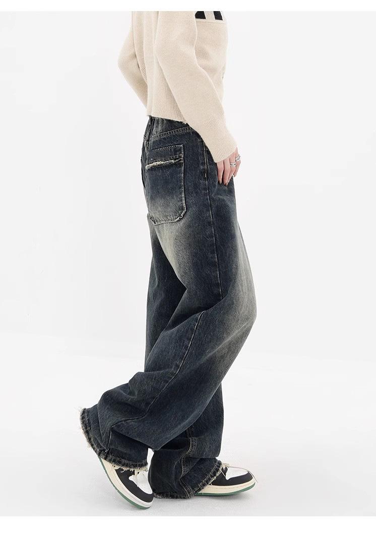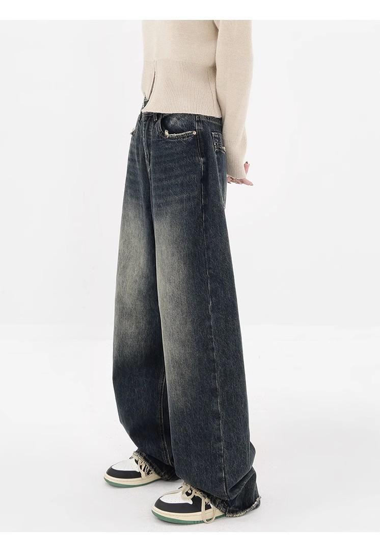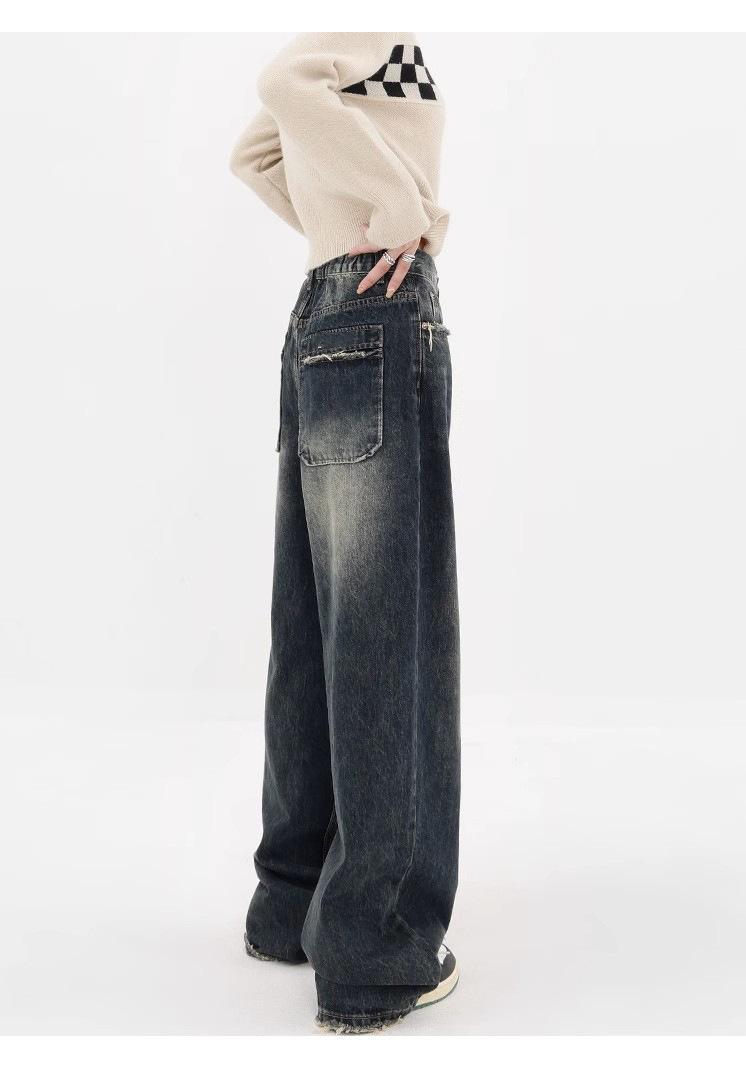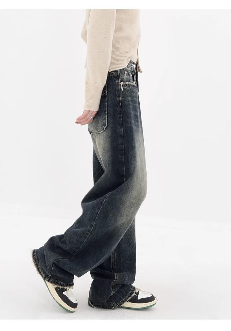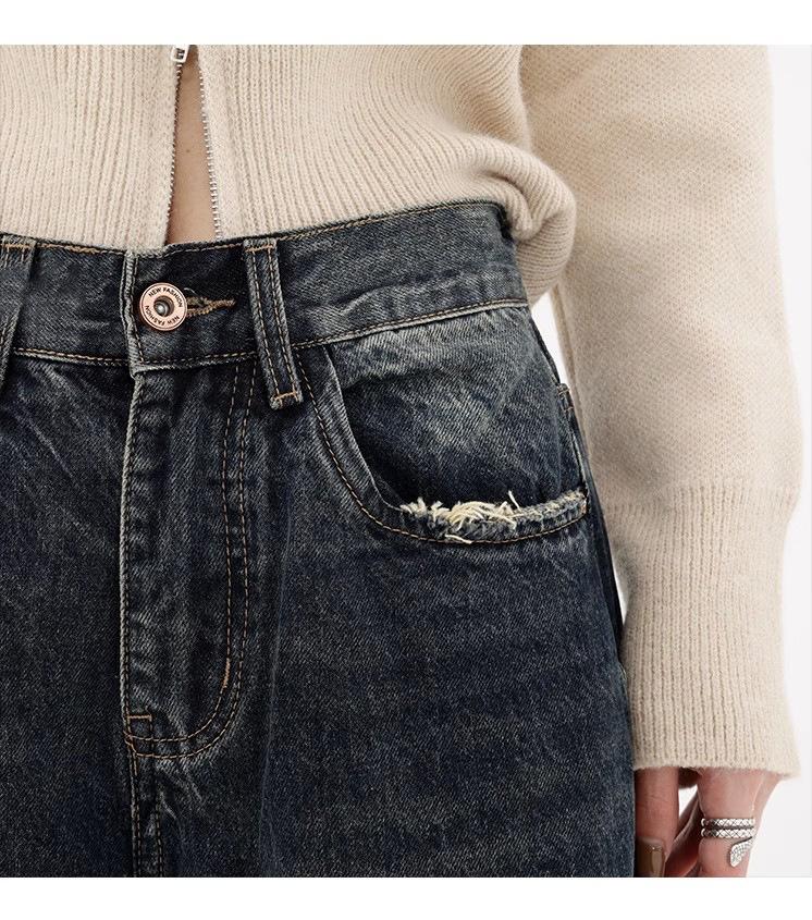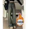 Pantalones vaqueros de pierna ancha con forro polar para mujer, otoño e invierno 2024, nuevos, de cintura alta, holgados, adelgazantes, de diseño recto, informales, para mujer