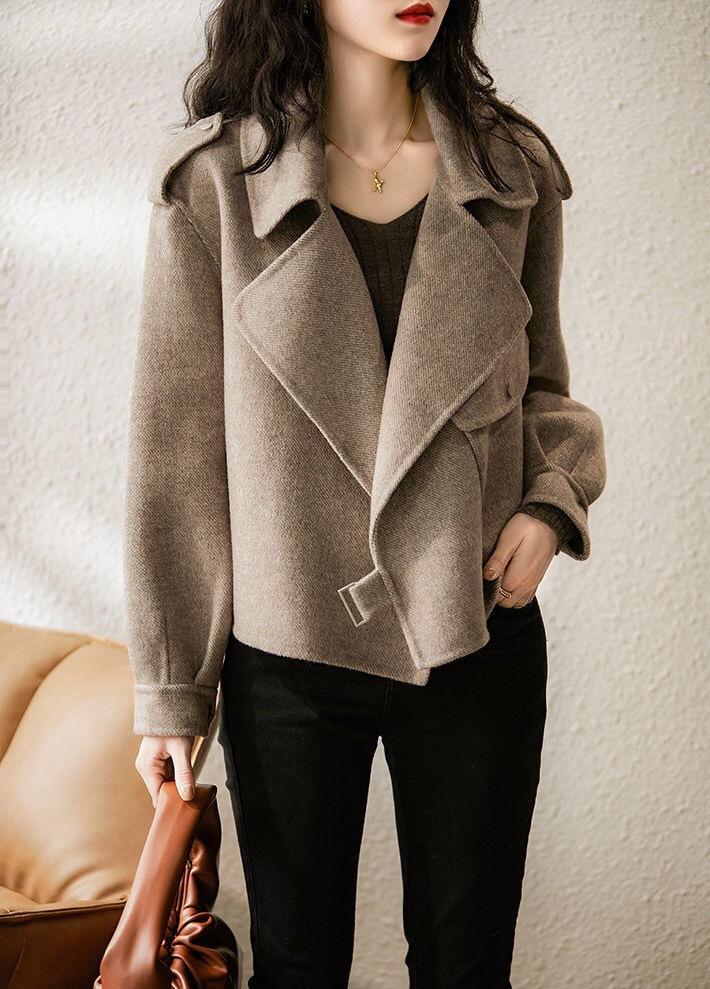 ¡2025 Nuevo Estilo Corto para Personas Pequeñas para Usar Proporción Áurea en Otoño e Invierno! Abrigo corto de lana delgado y alto