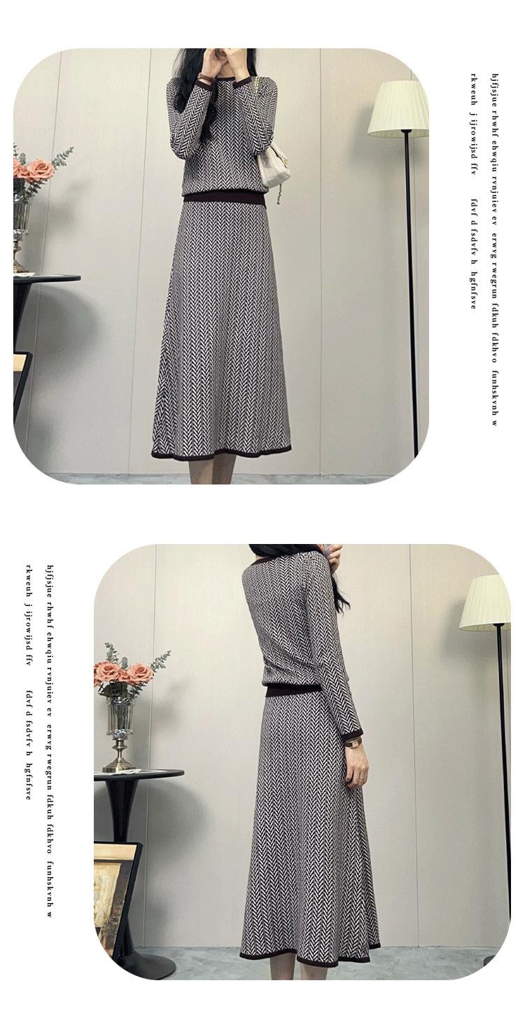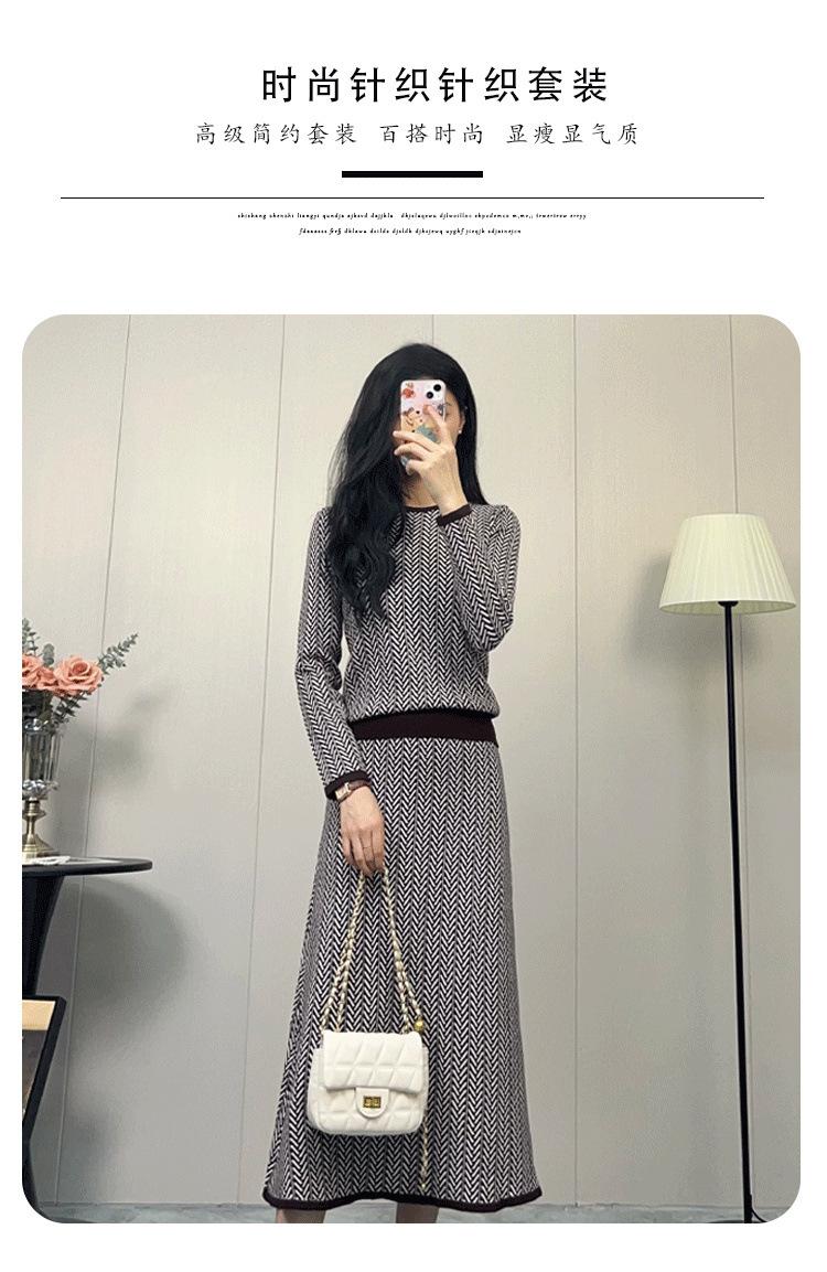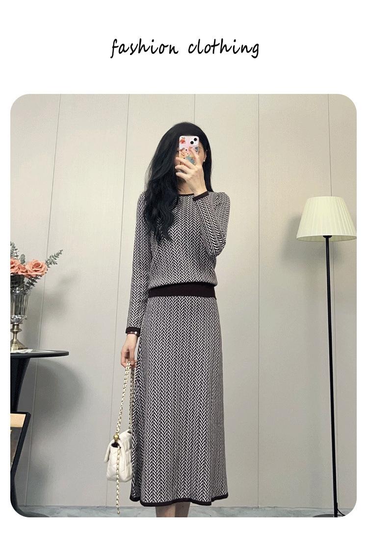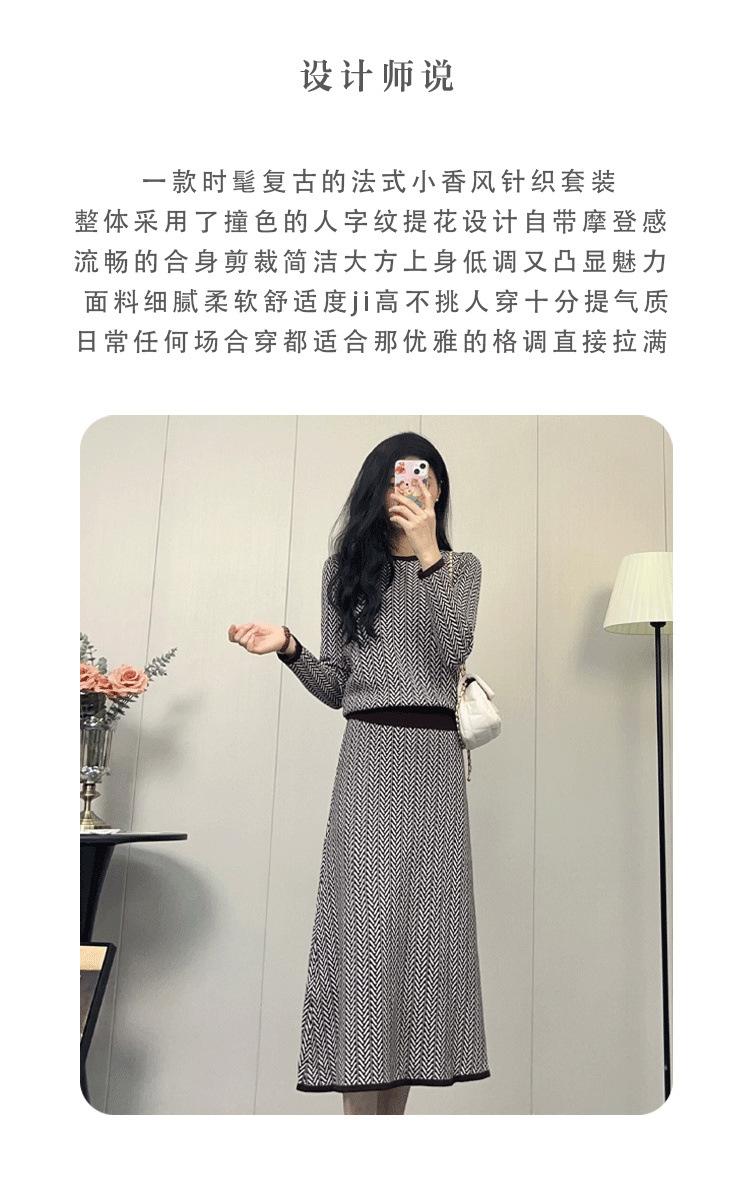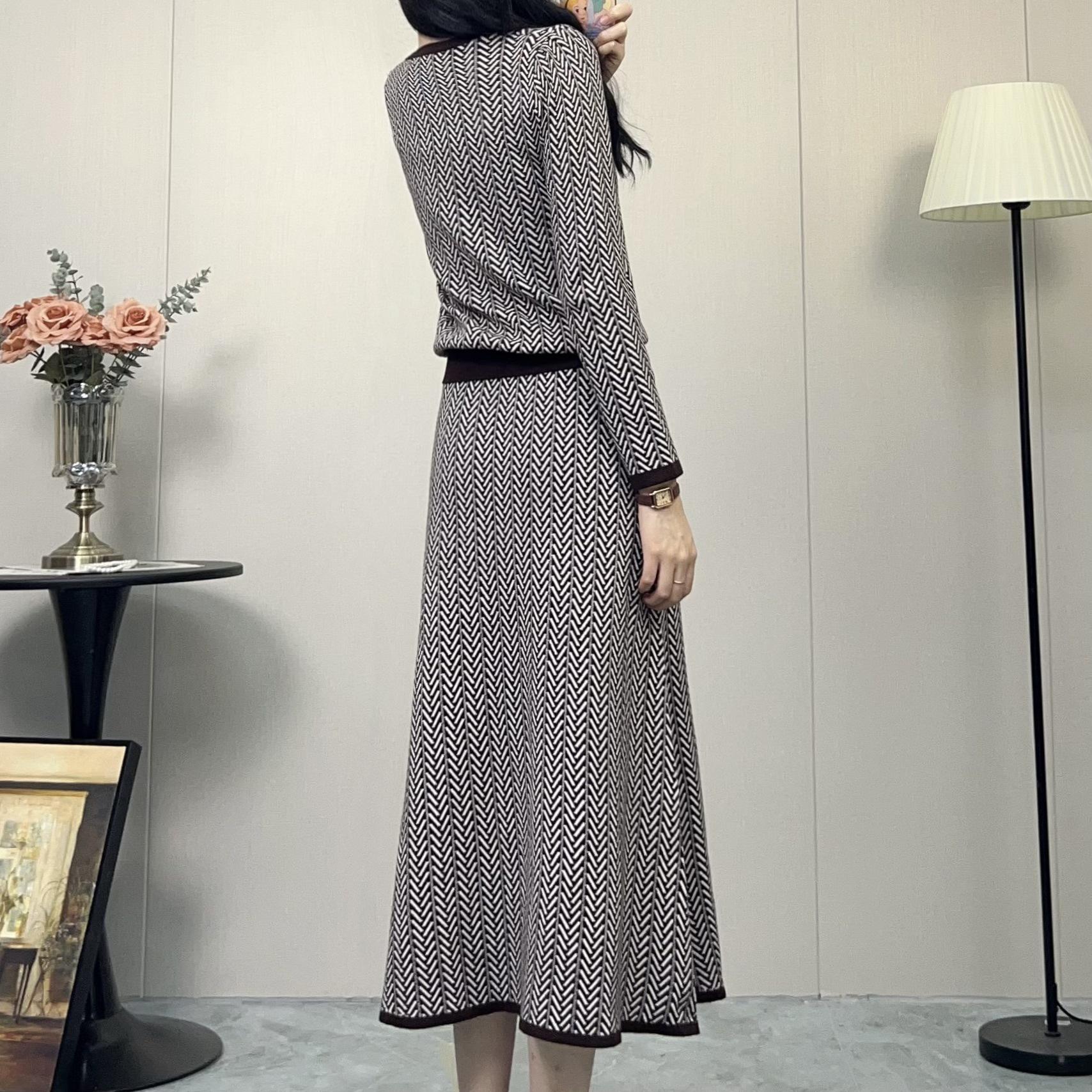 Traje de Punto Francés de Alta Gama Estilo Otoño e Invierno 2025, Elegante que Reduce la Edad, Conjunto de Dos Piezas de Punto de Cuello Redondo y Falda