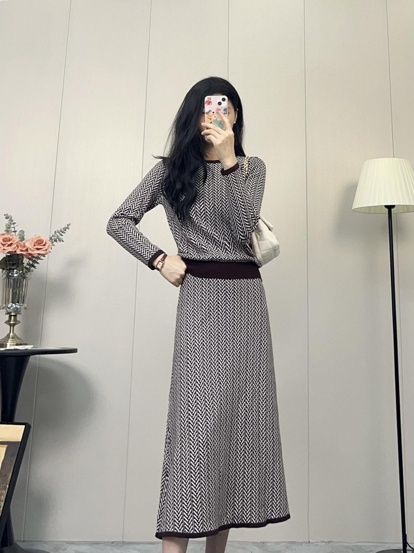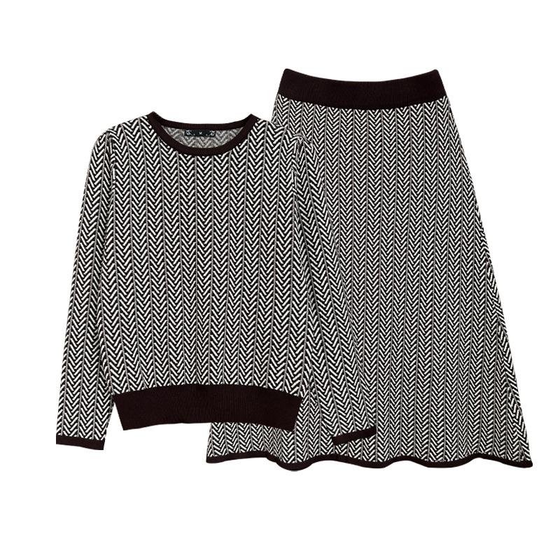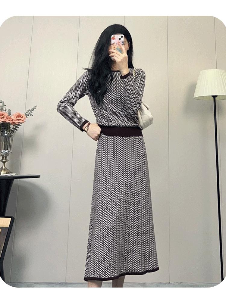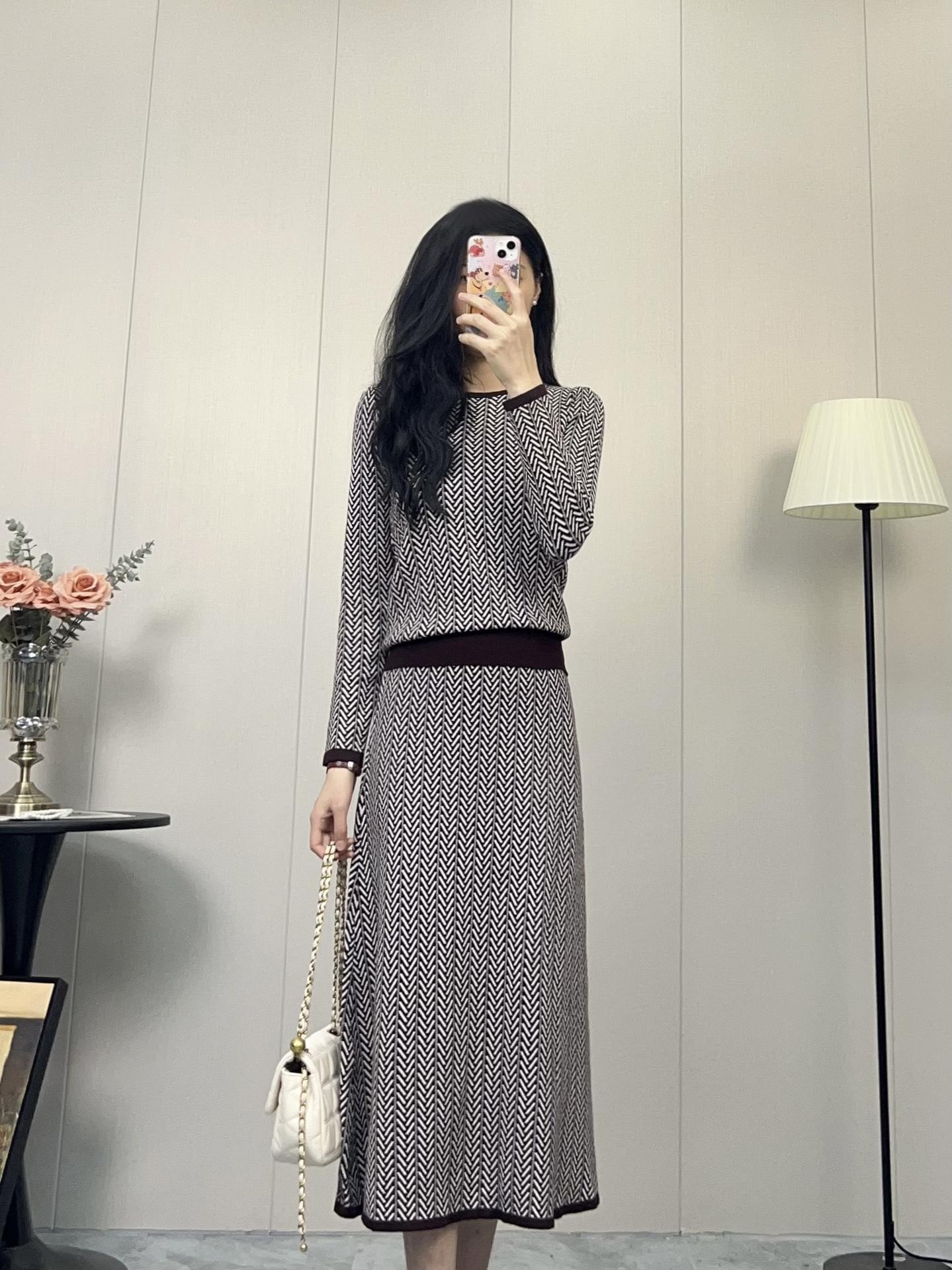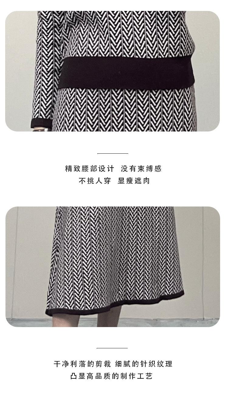 Traje de Punto Francés de Alta Gama Estilo Otoño e Invierno 2025, Elegante que Reduce la Edad, Conjunto de Dos Piezas de Punto de Cuello Redondo y Falda
