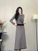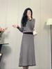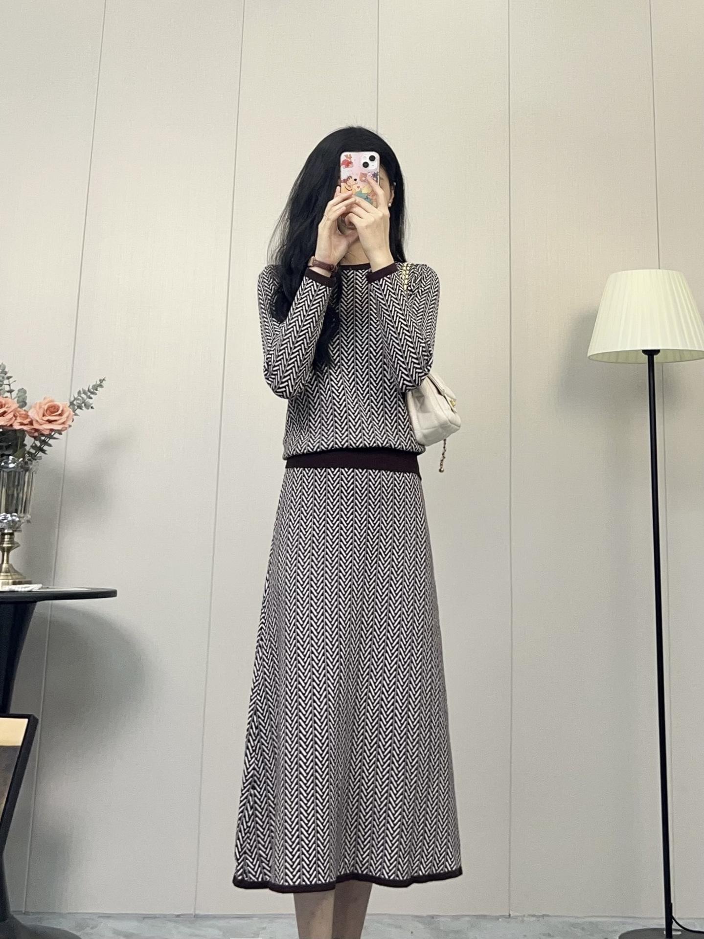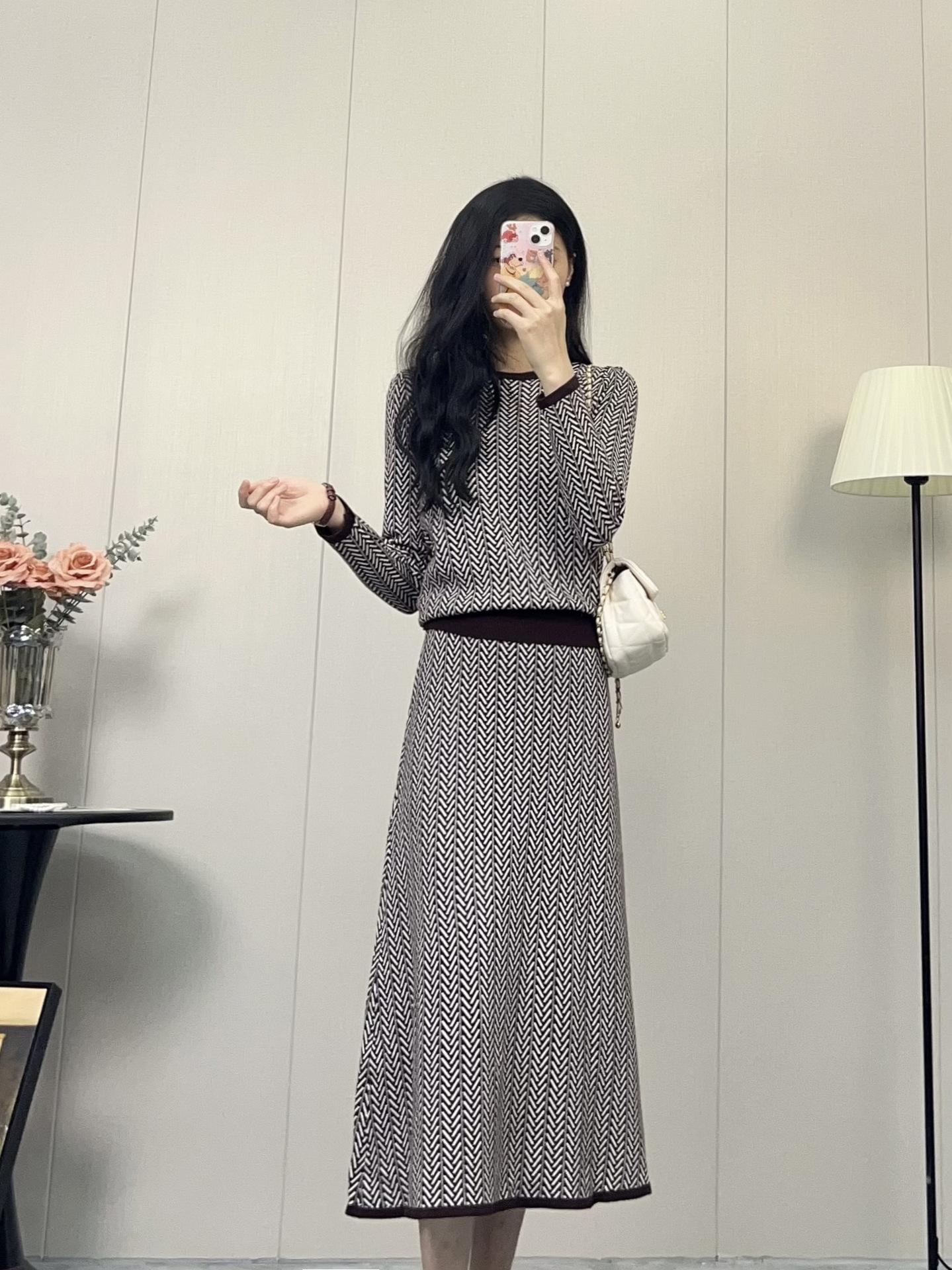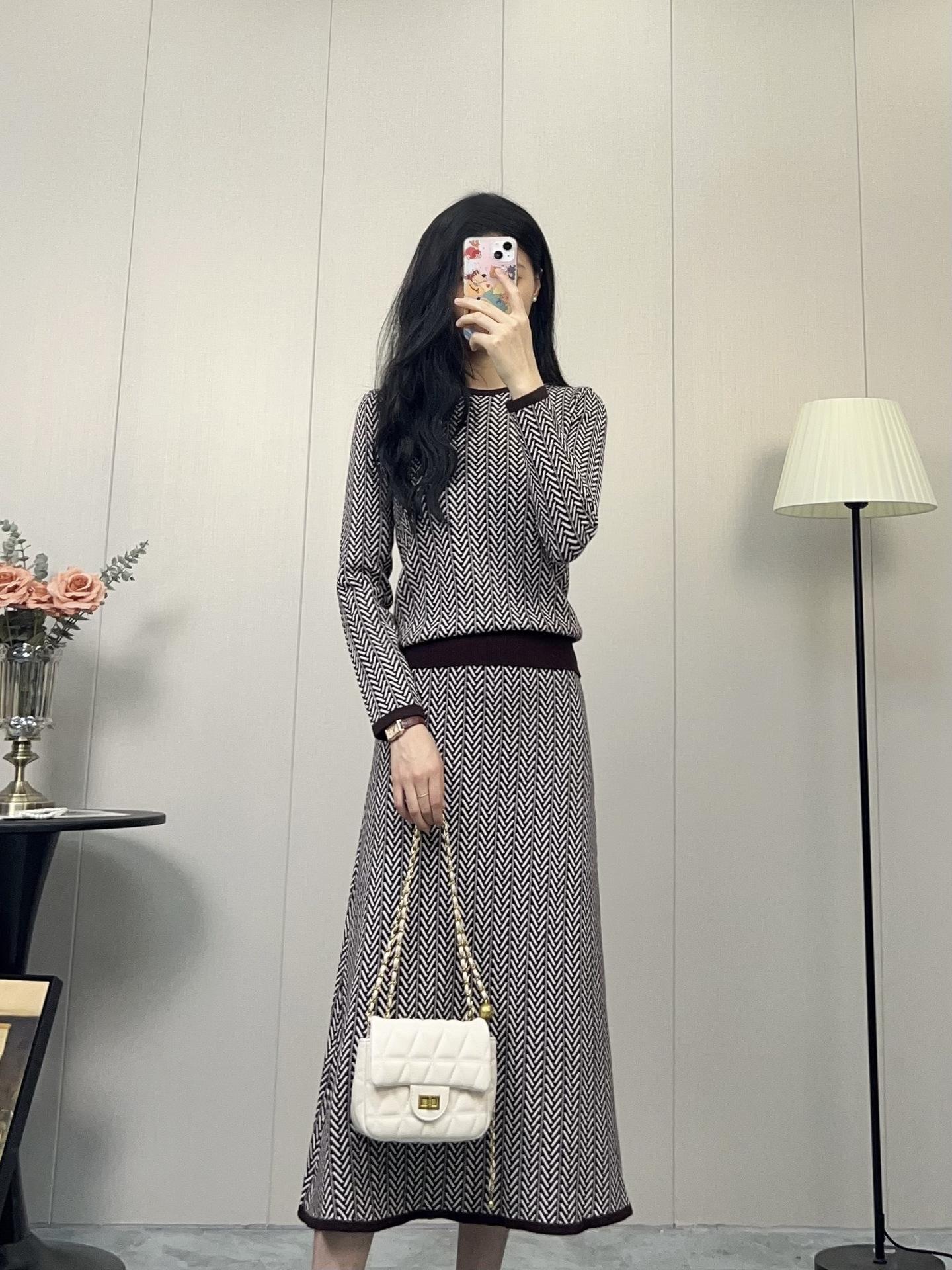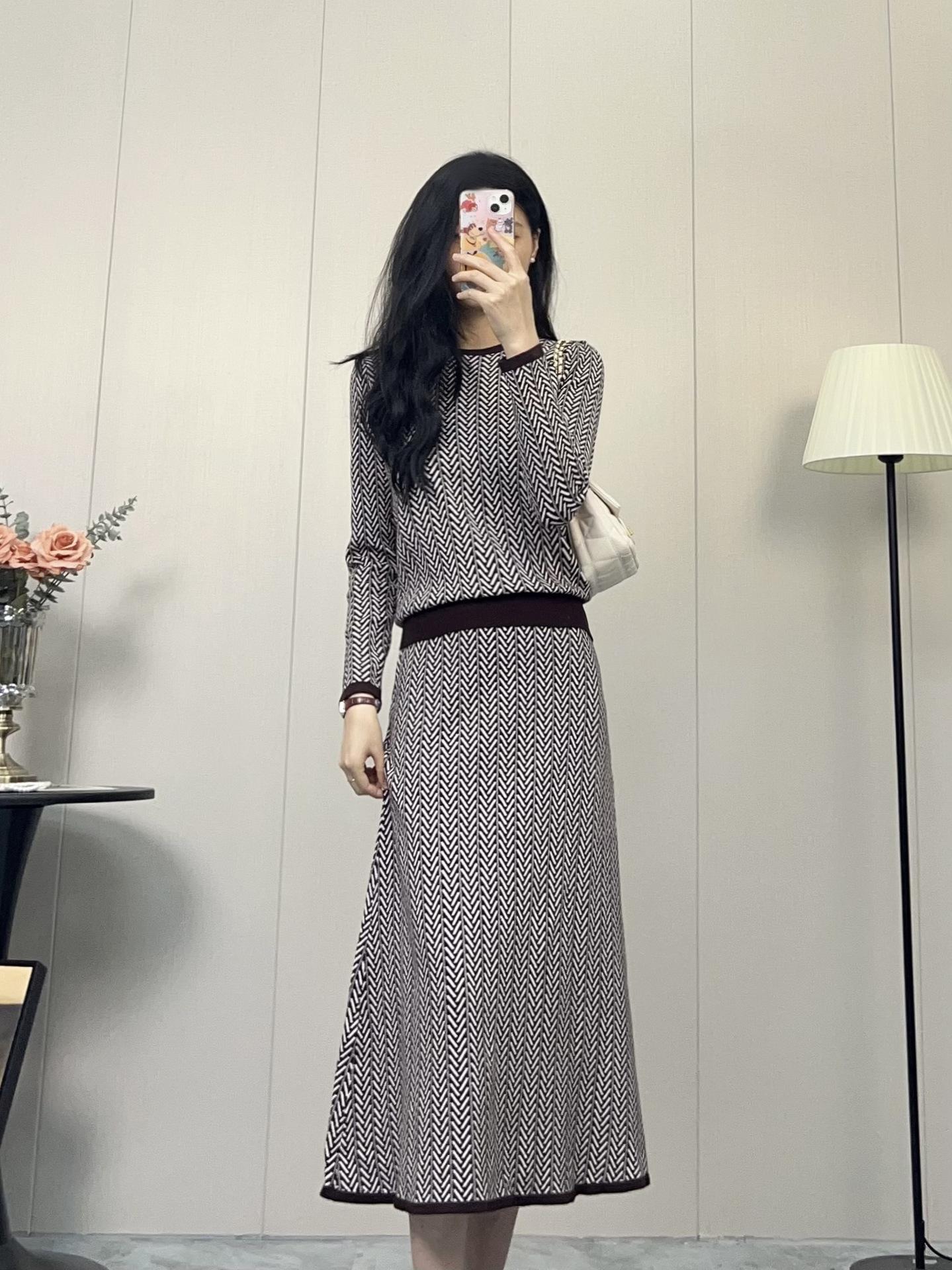 Traje de Punto Francés de Alta Gama Estilo Otoño e Invierno 2025, Elegante que Reduce la Edad, Conjunto de Dos Piezas de Punto de Cuello Redondo y Falda