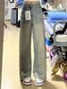 Pantalones vaqueros rectos desgastados estilo retro americano para mujer, pantalones finos de cintura alta y pierna ancha, novedad de verano de 2024.