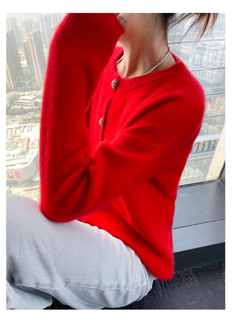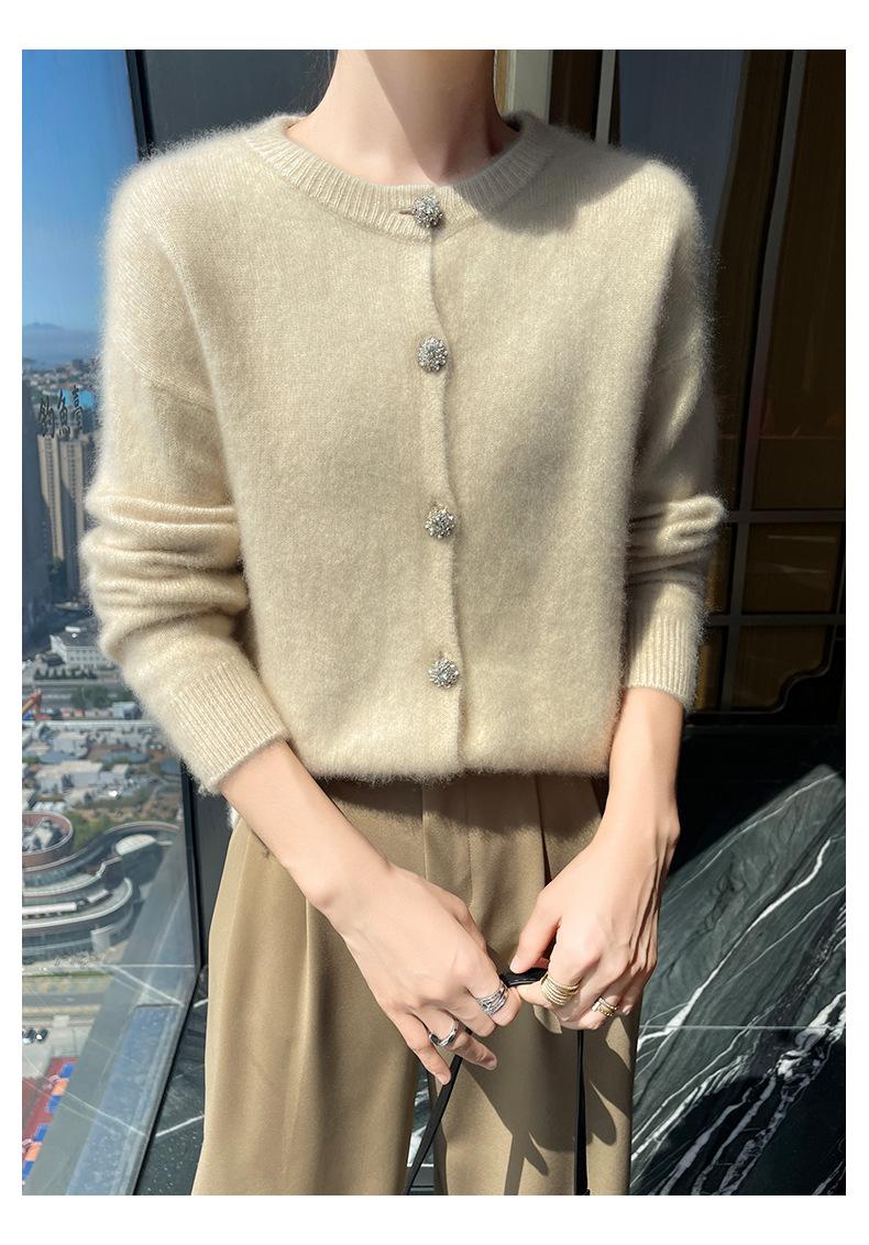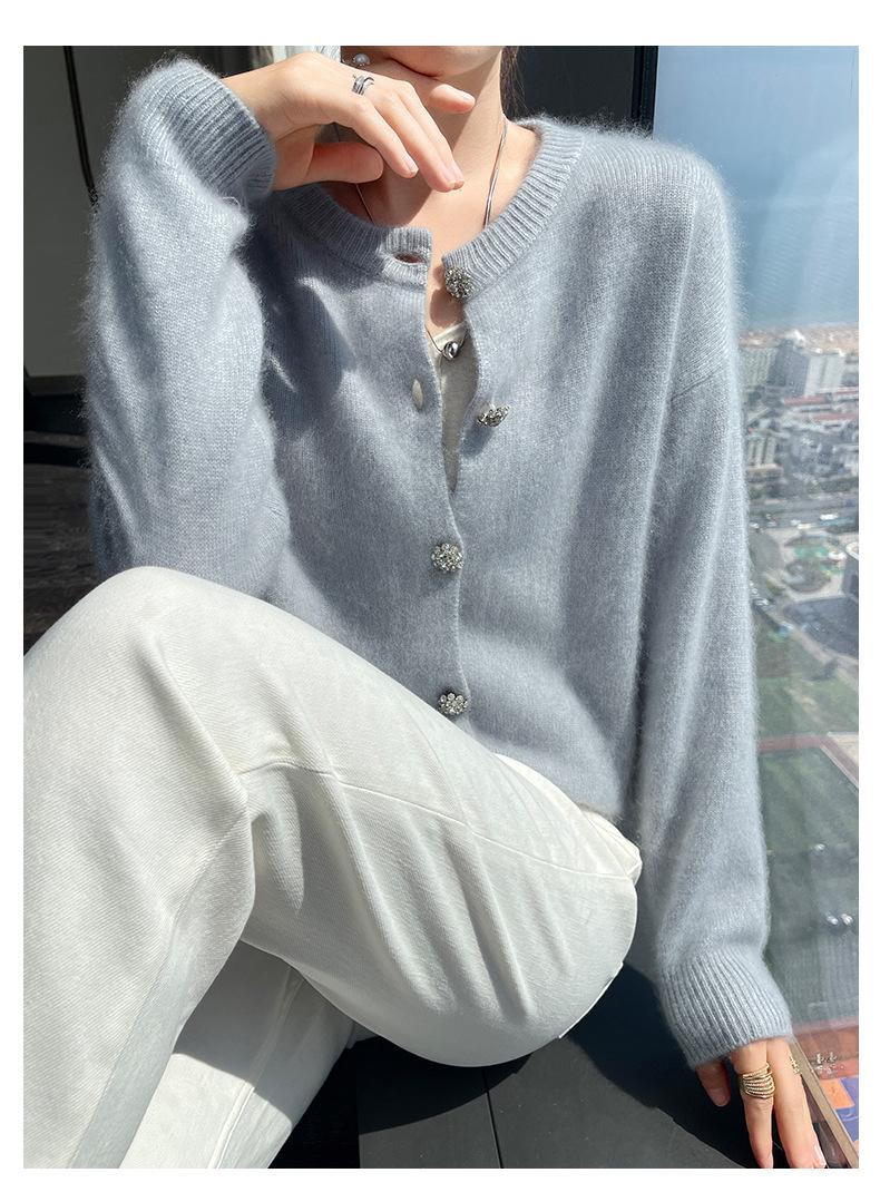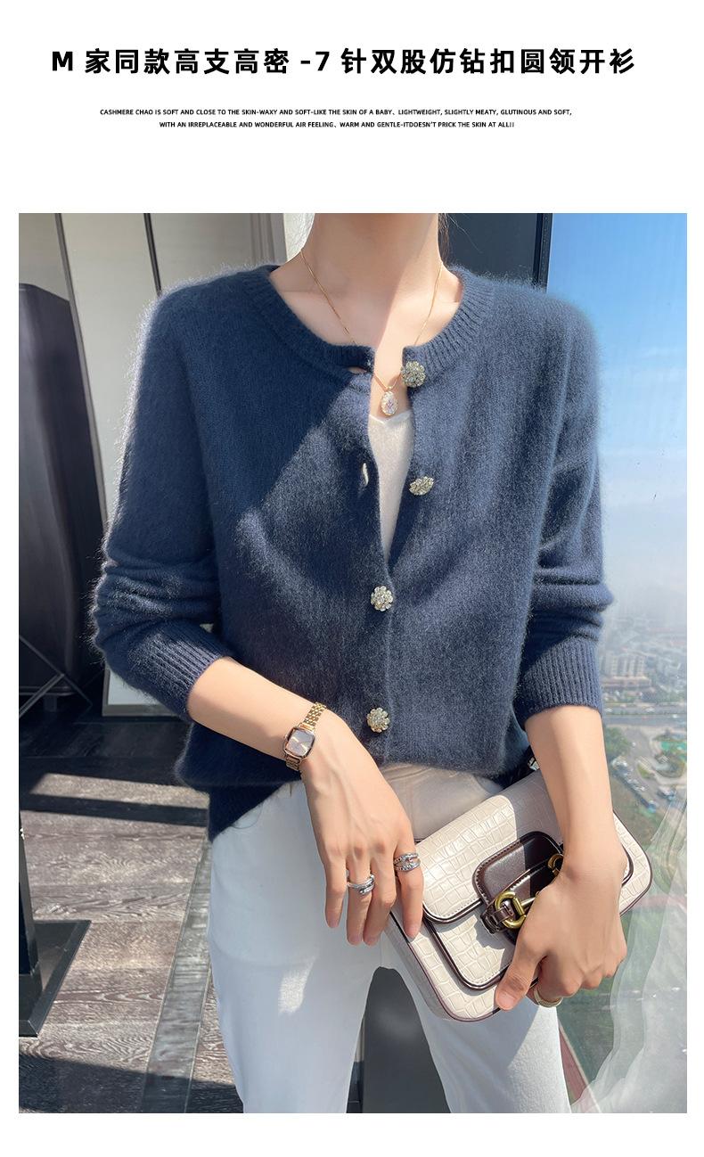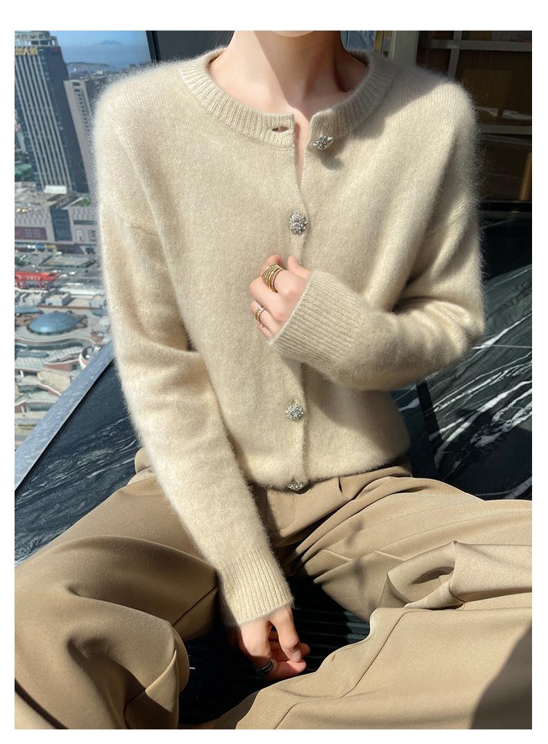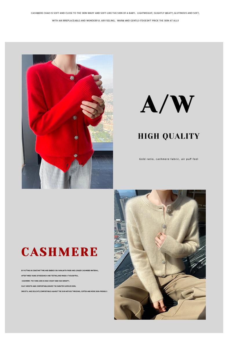 Cárdigan de punto de cachemira para mujer, otoño e invierno 2024, cuello redondo, hombros descubiertos, suelto, grueso, sencillo, de lana