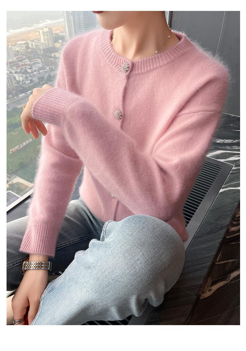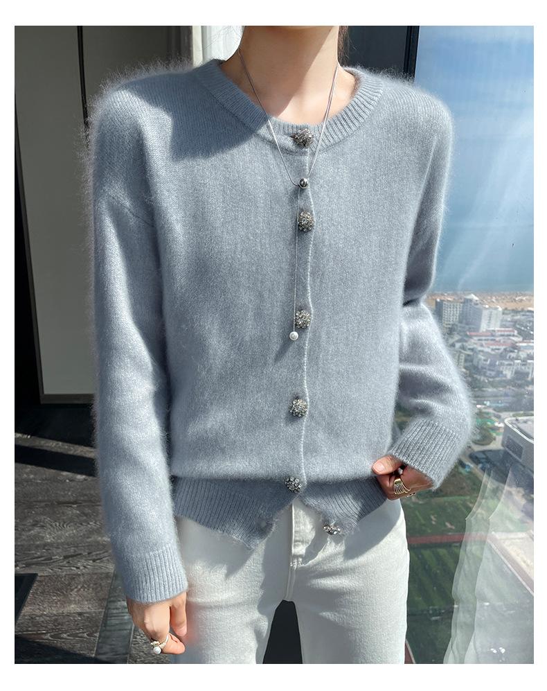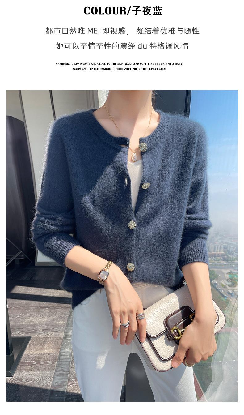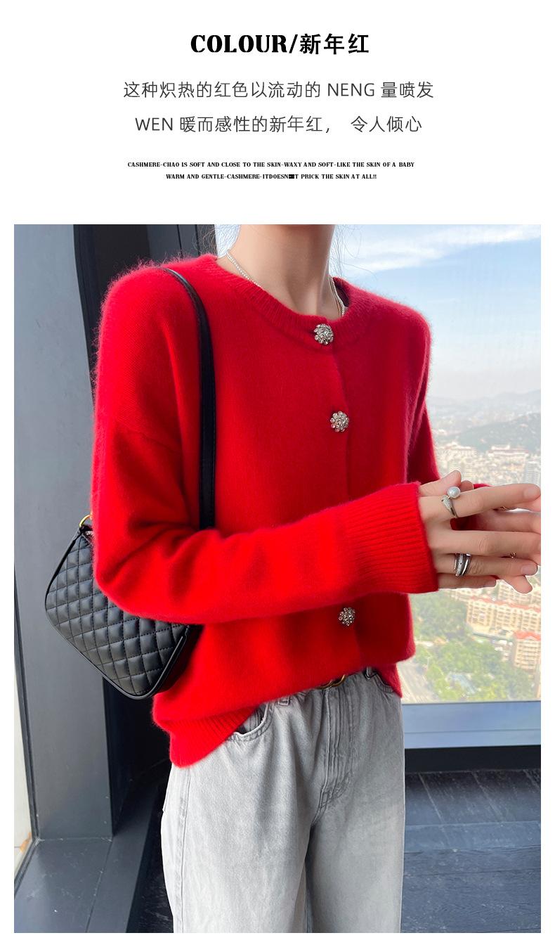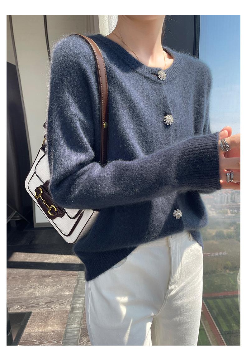 Cárdigan de punto de cachemira para mujer, otoño e invierno 2024, cuello redondo, hombros descubiertos, suelto, grueso, sencillo, de lana