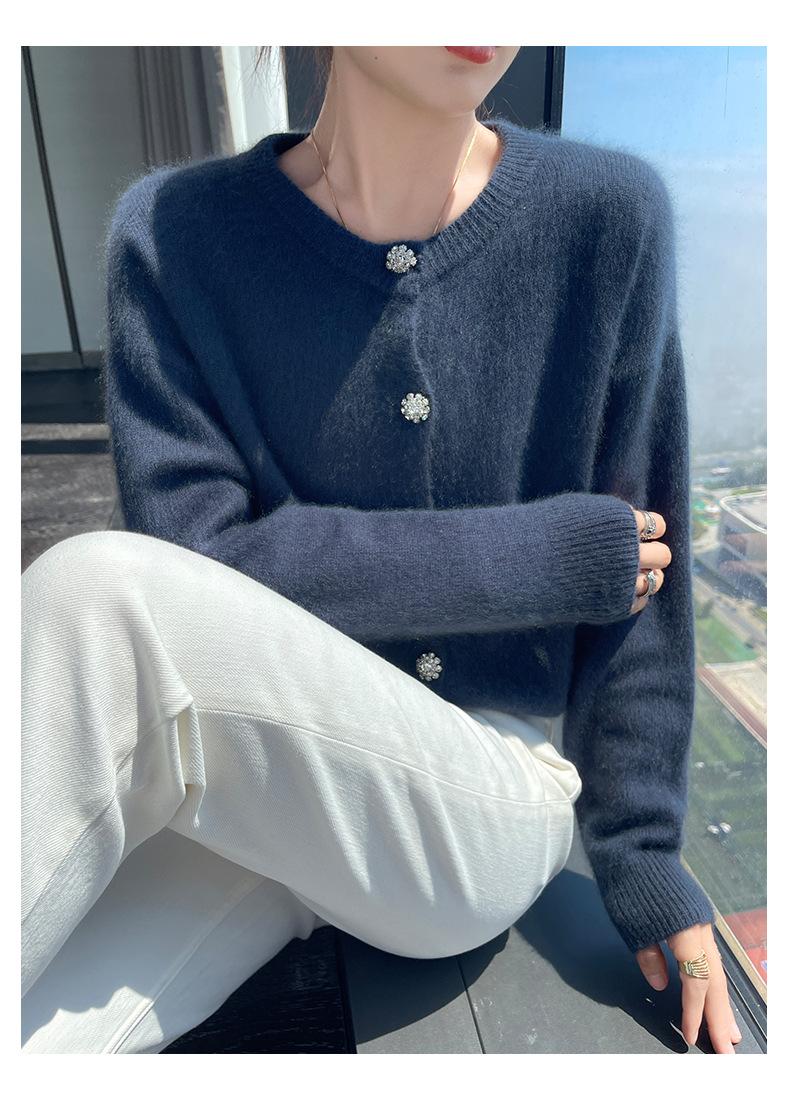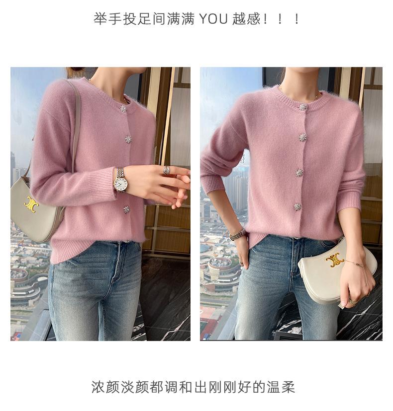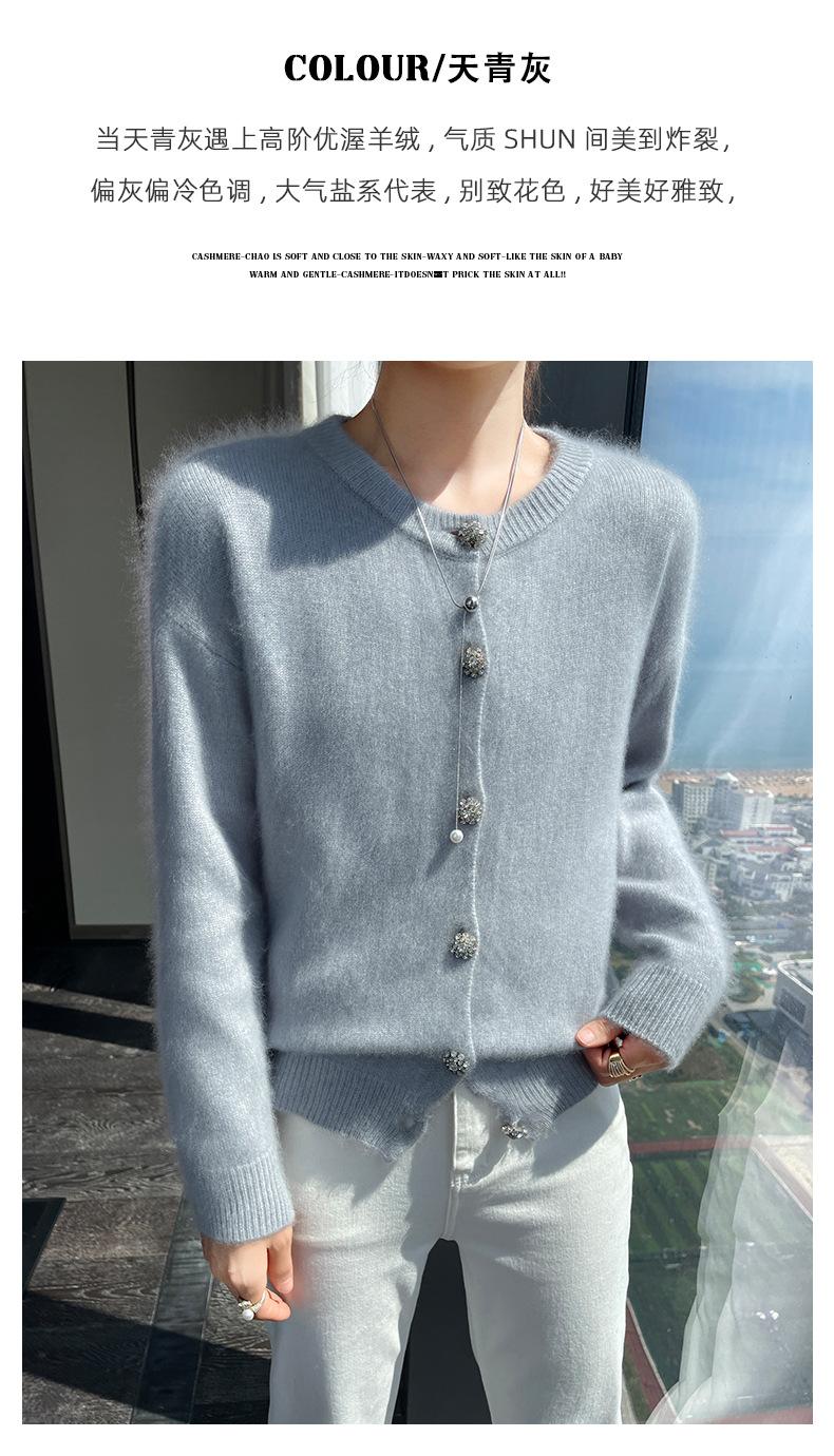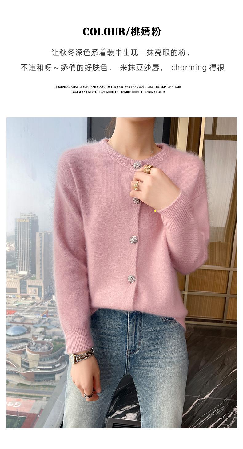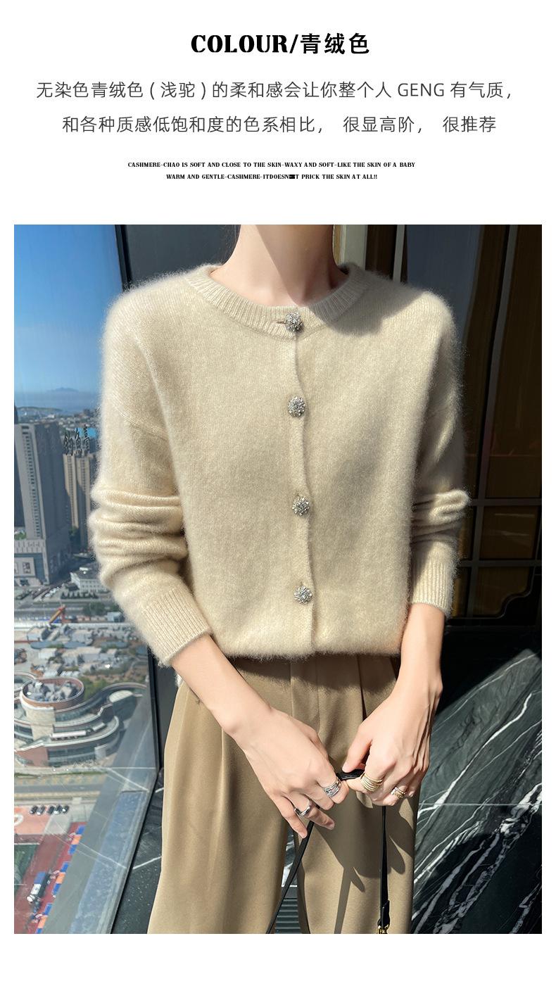 Cárdigan de punto de cachemira para mujer, otoño e invierno 2024, cuello redondo, hombros descubiertos, suelto, grueso, sencillo, de lana