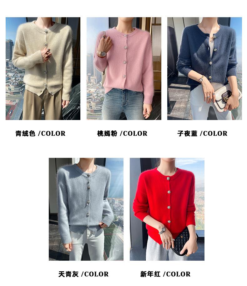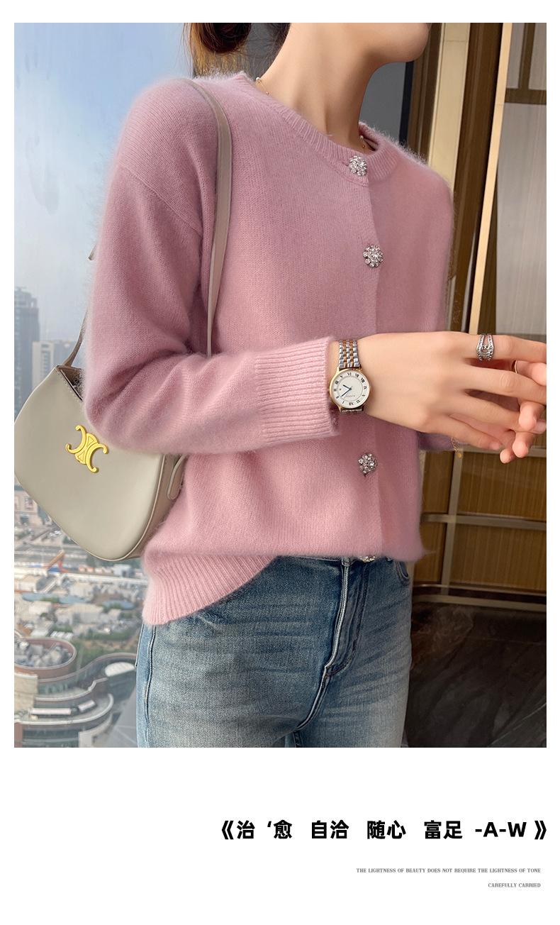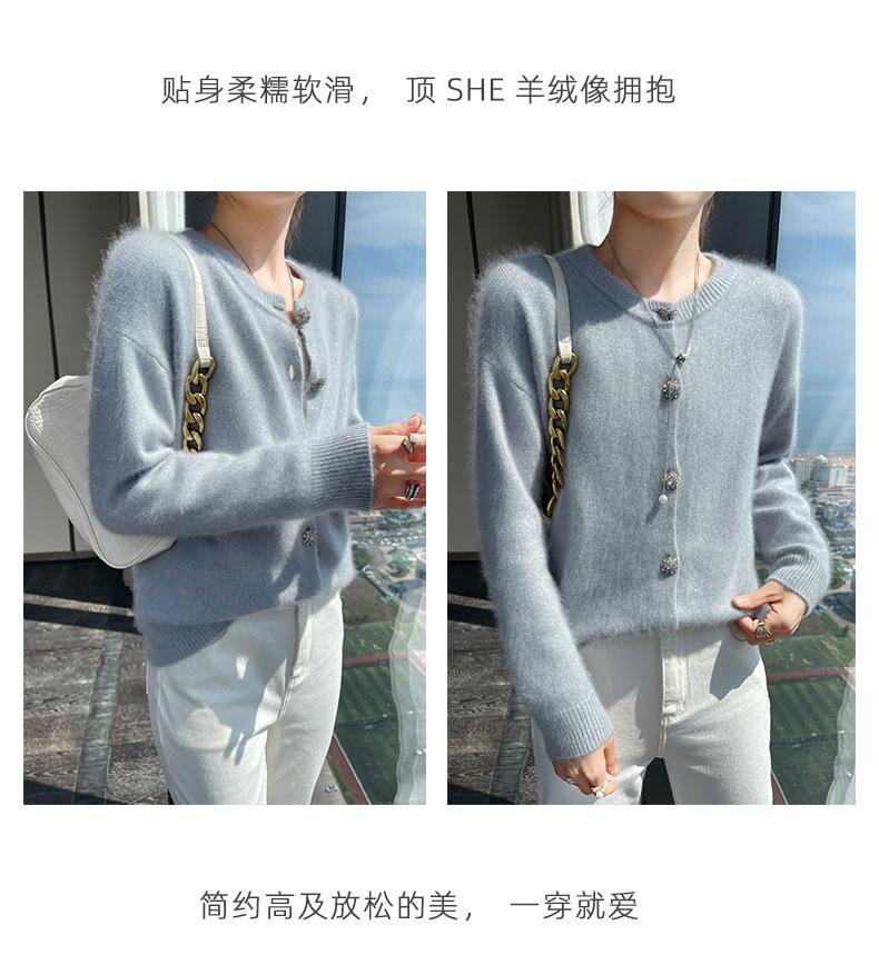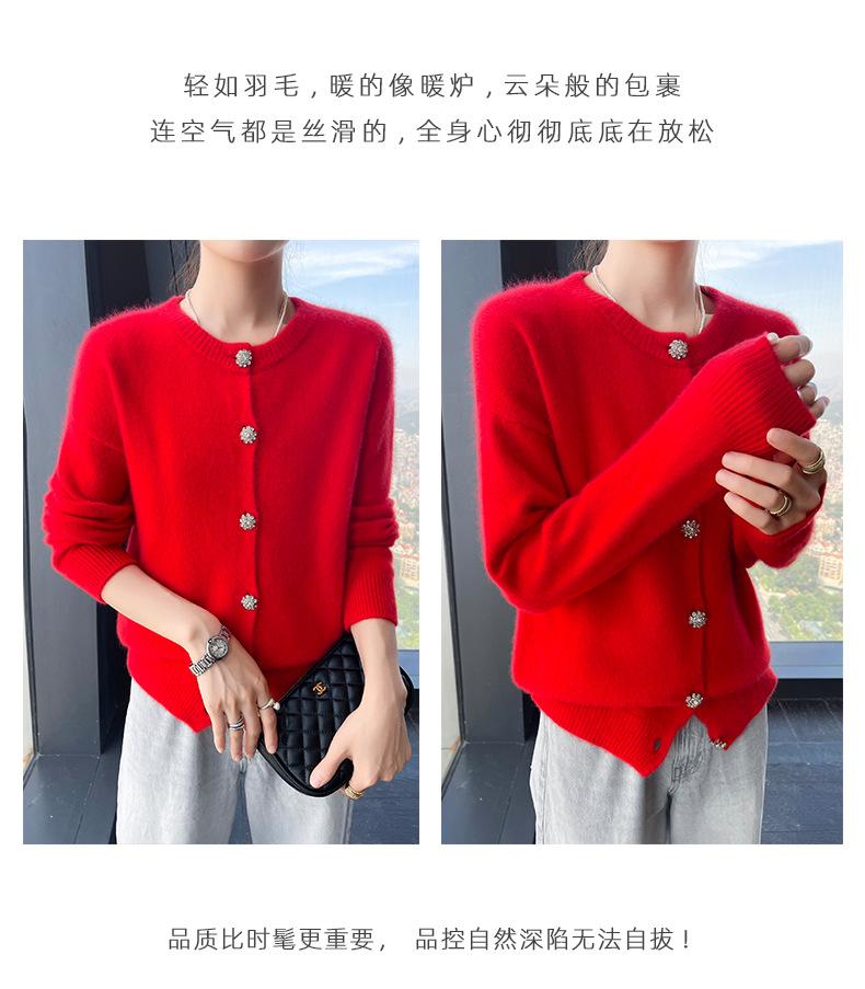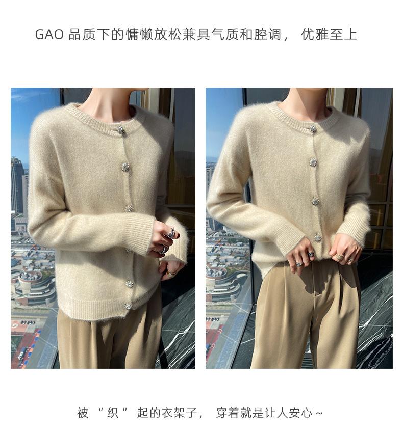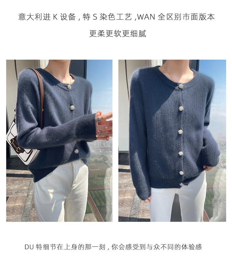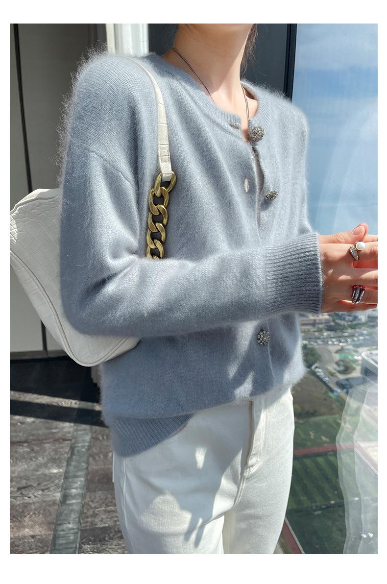 Cárdigan de punto de cachemira para mujer, otoño e invierno 2024, cuello redondo, hombros descubiertos, suelto, grueso, sencillo, de lana