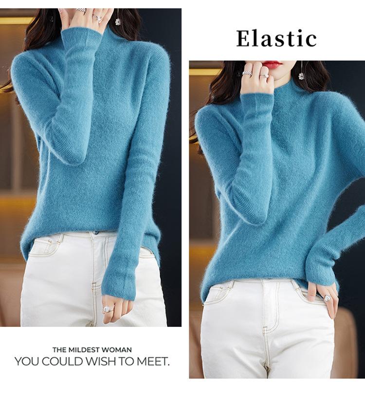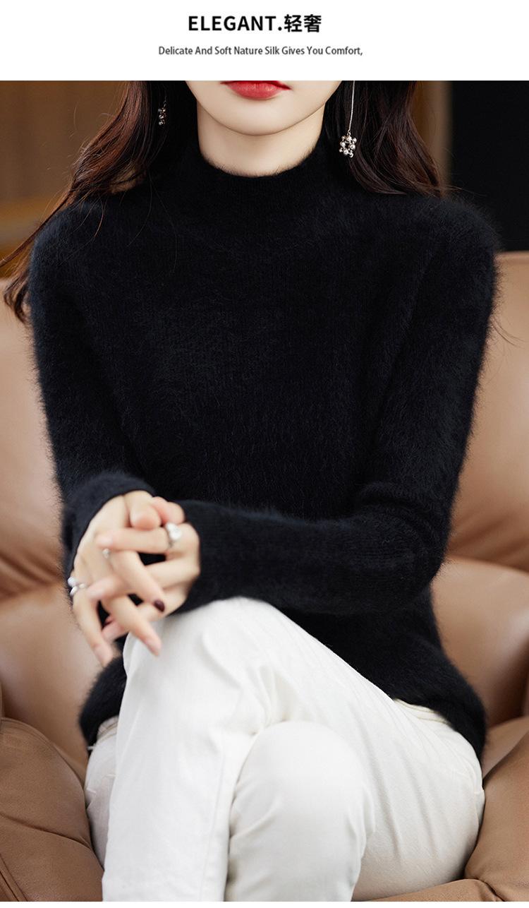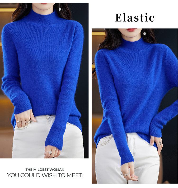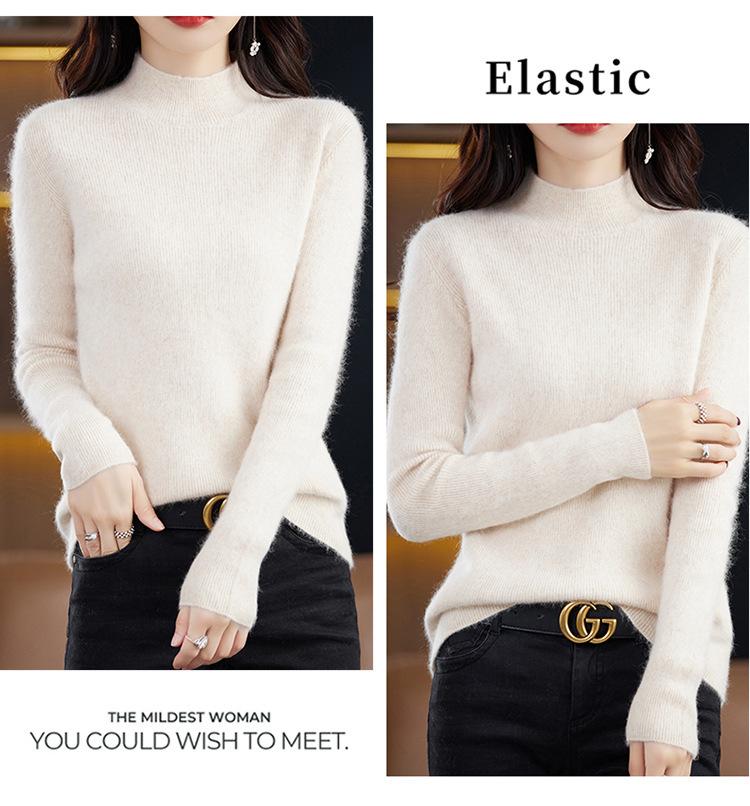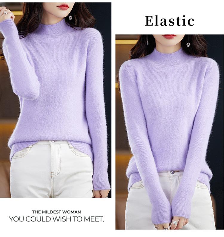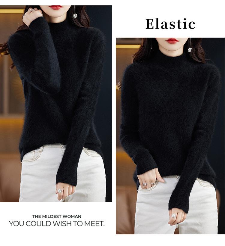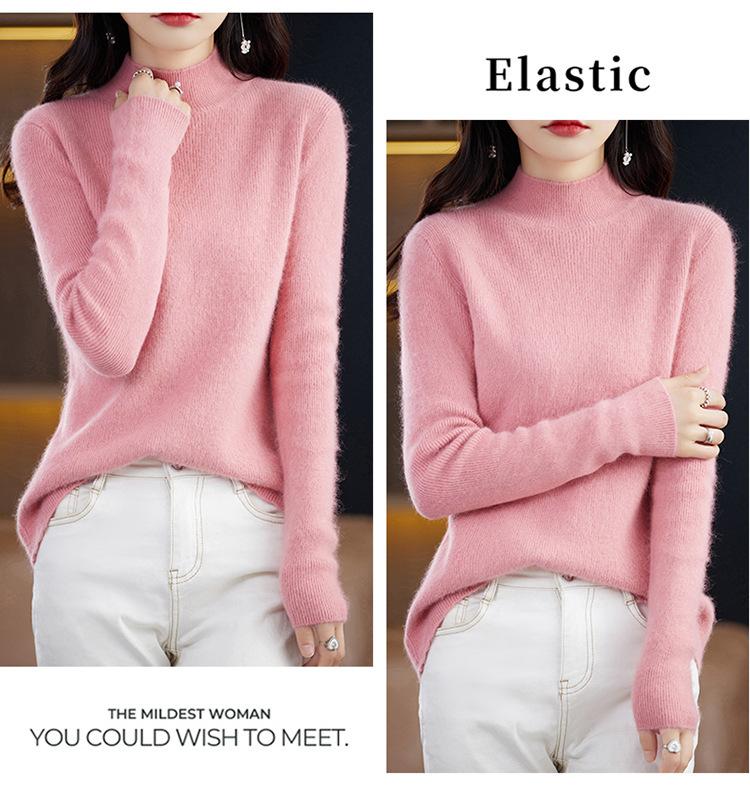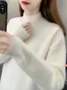 Suéter de visón para mujer, suéter de cuello alto medio, ajustado, corto, de cachemira de color sólido, con base interior, suéter de punto, novedad de otoño e invierno.