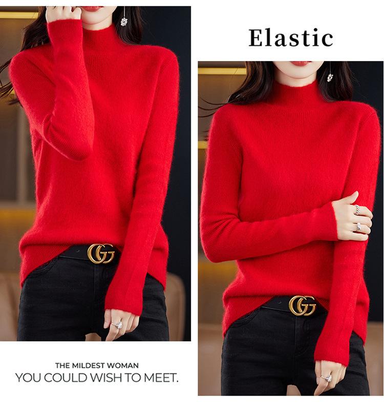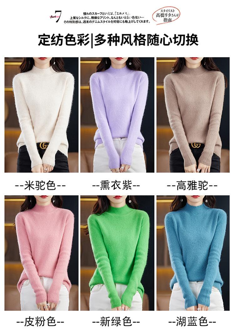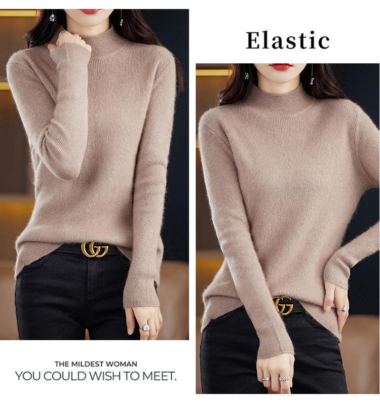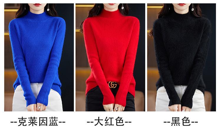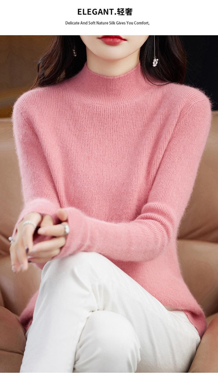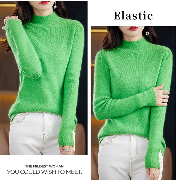Suéter de visón para mujer, suéter de cuello alto medio, ajustado, corto, de cachemira de color sólido, con base interior, suéter de punto, novedad de otoño e invierno.