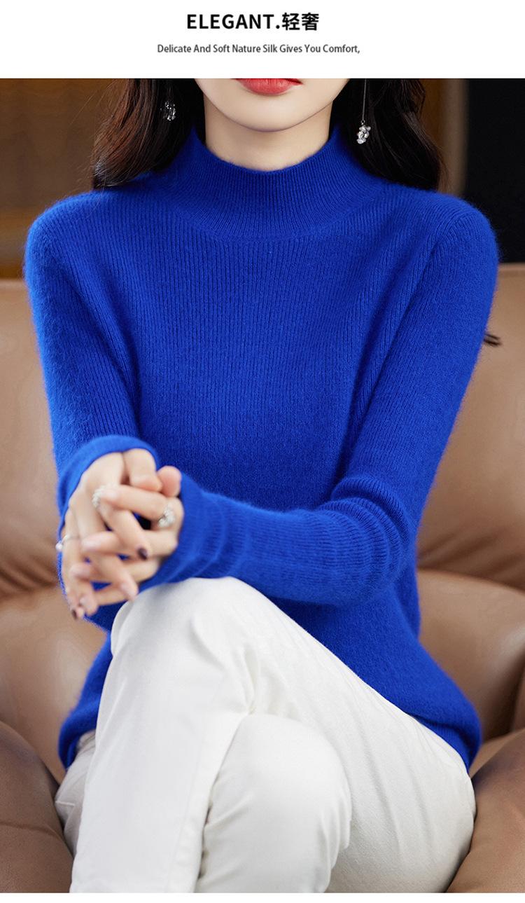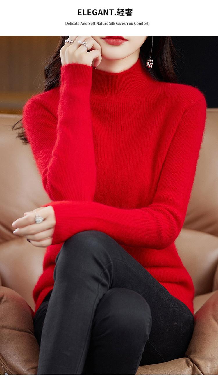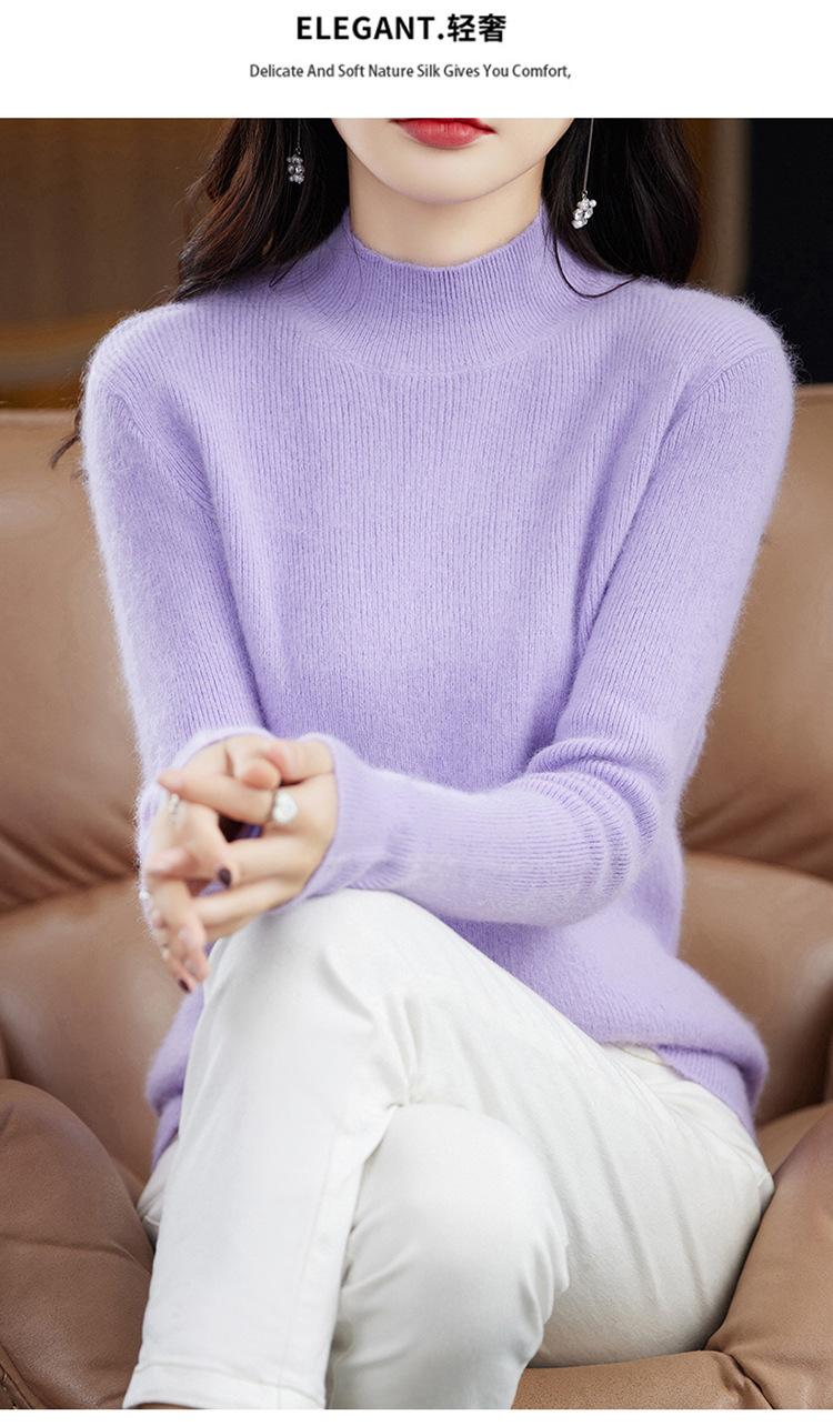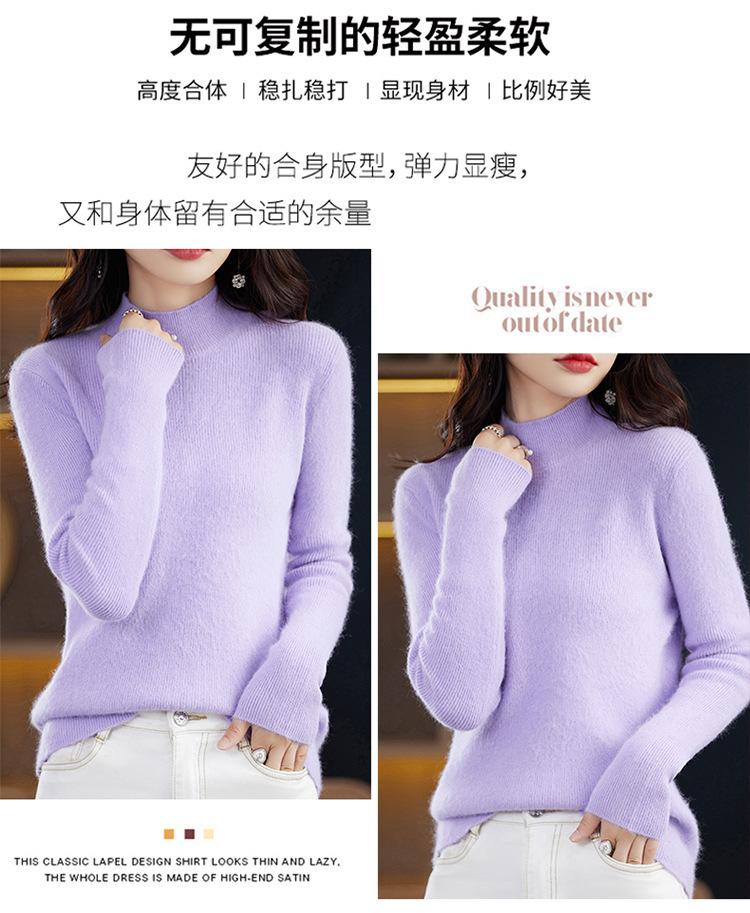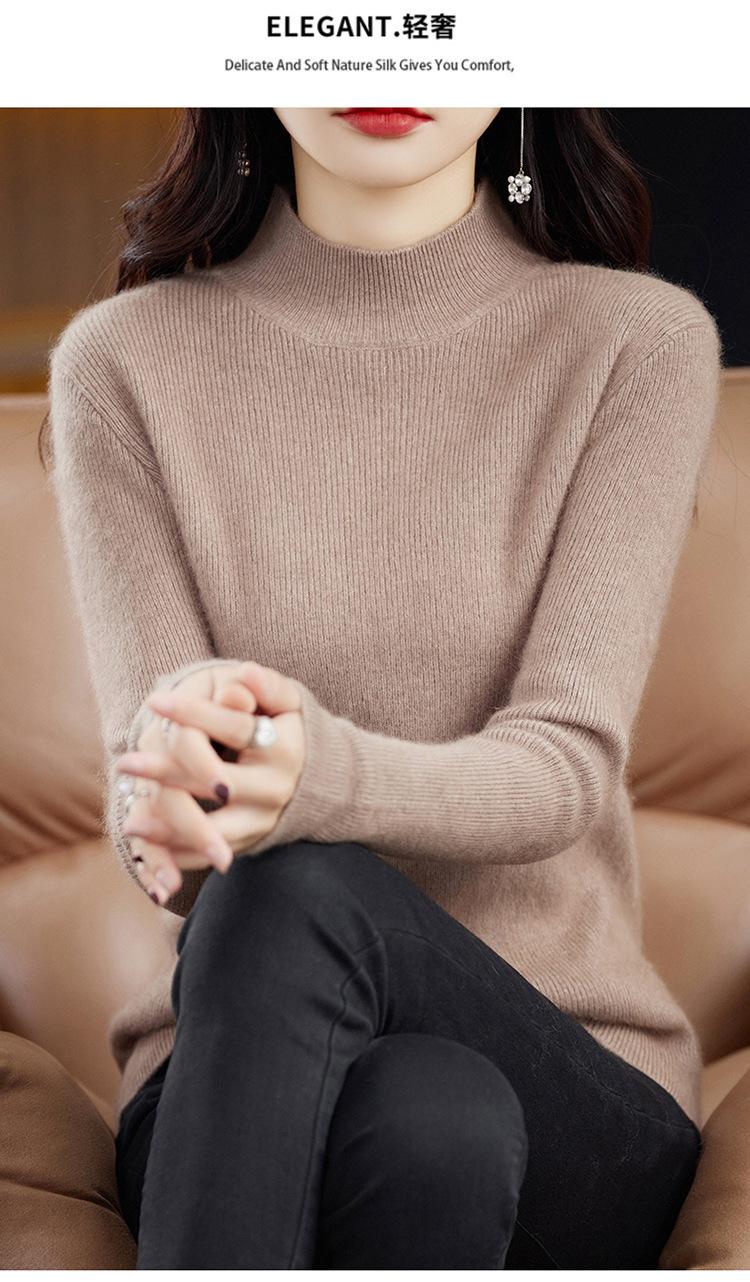 Suéter de visón para mujer, suéter de cuello alto medio, ajustado, corto, de cachemira de color sólido, con base interior, suéter de punto, novedad de otoño e invierno.