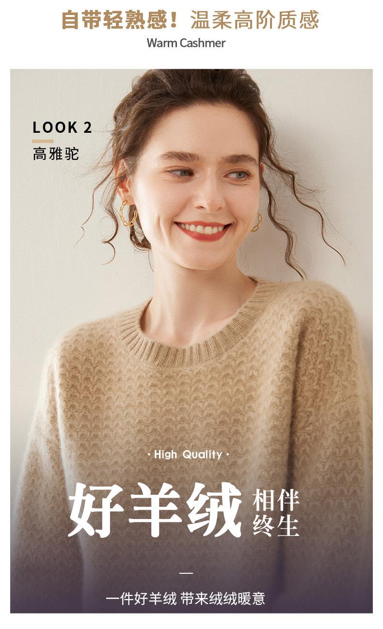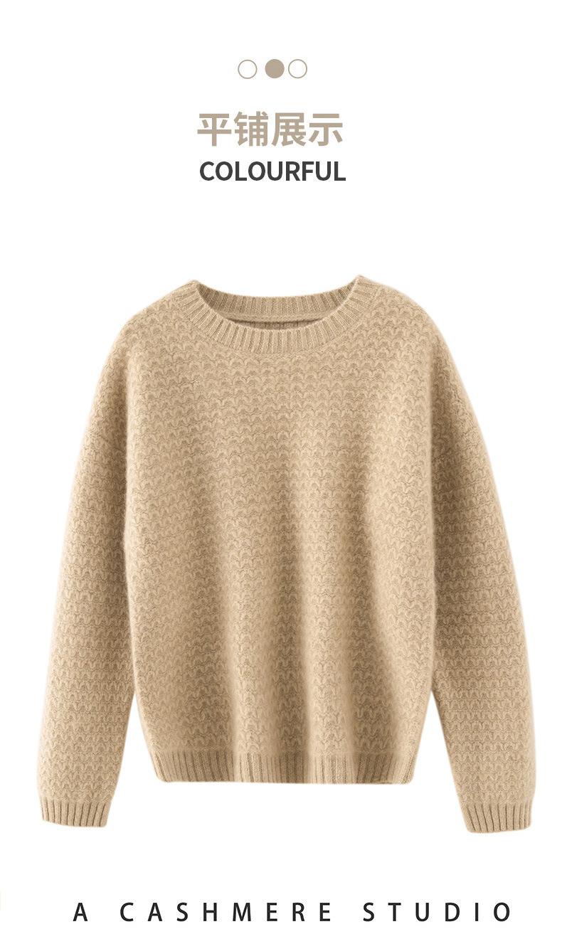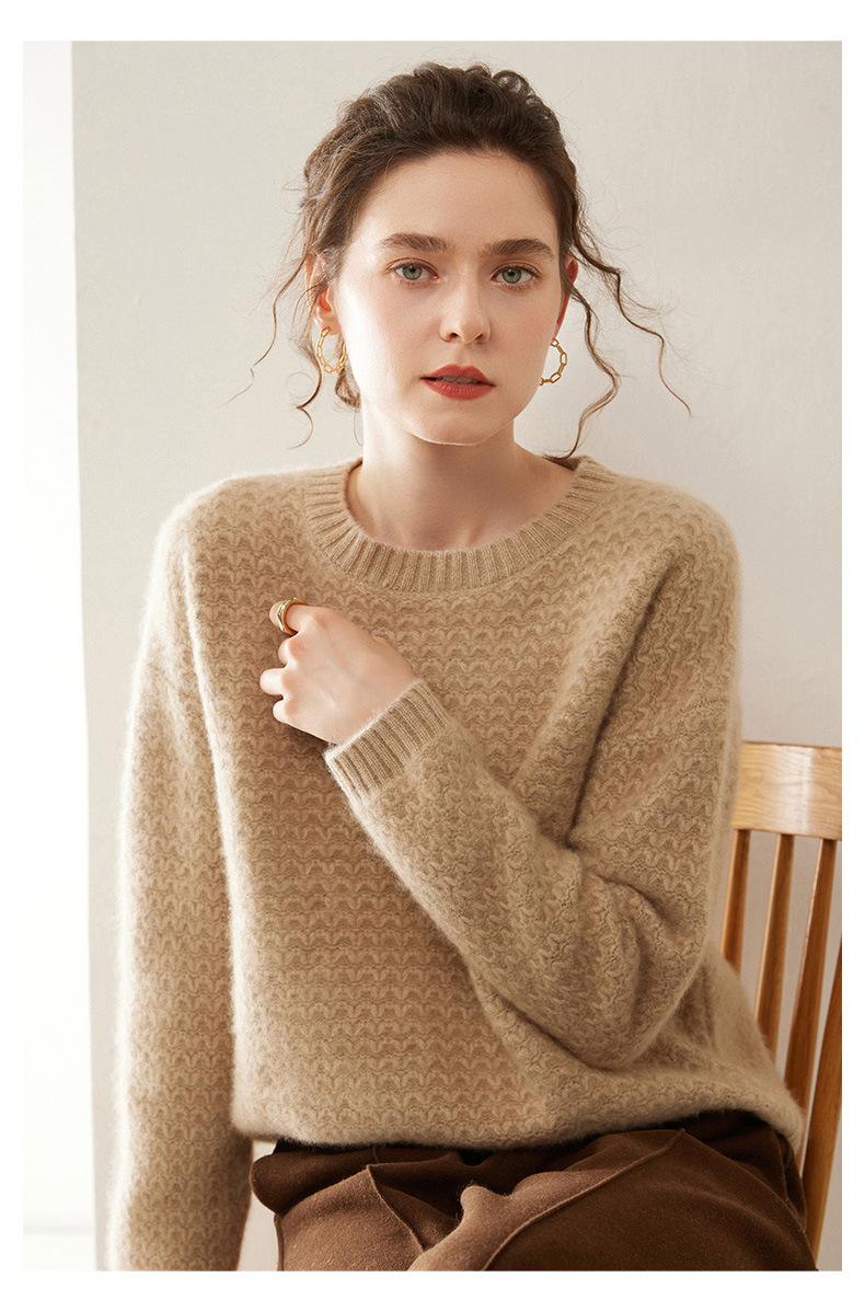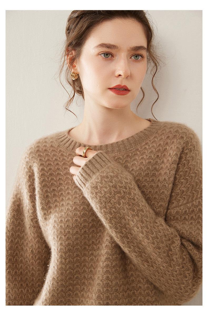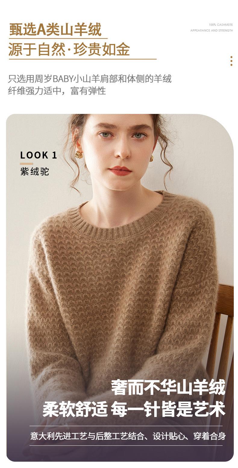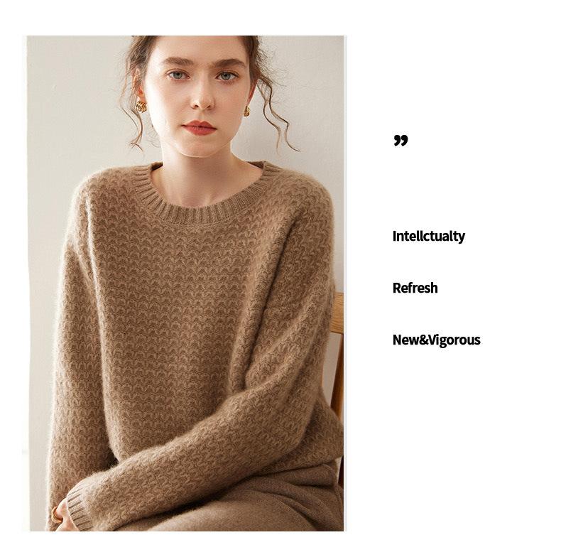 24 Otoño e Invierno Nuevo Suéter de Cachemira de Montaña para Mujer Cuello Redondo Holgado Combinable Color Sólido Estilo Relajado Simple Suéter Jersey Grueso