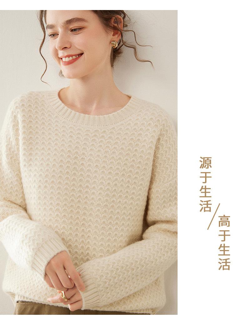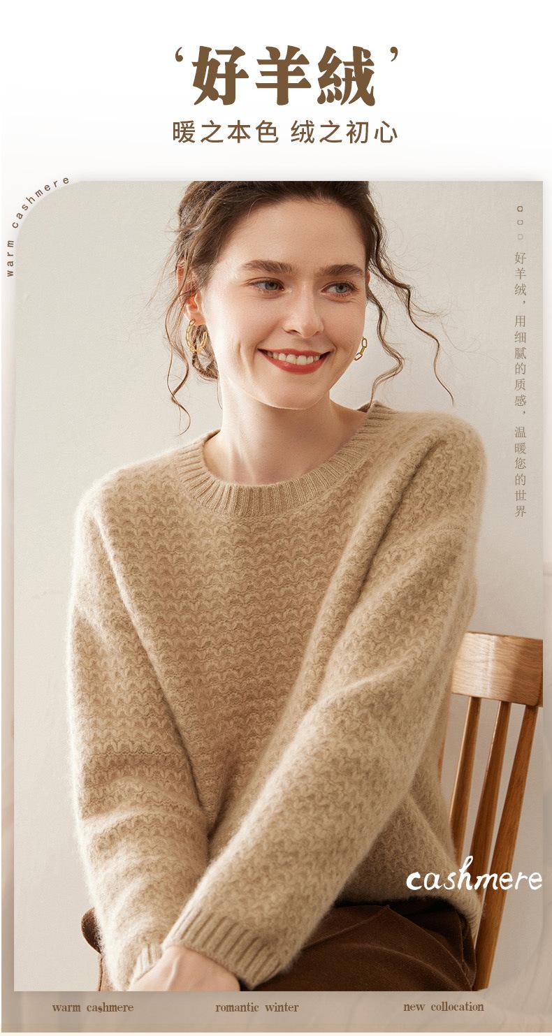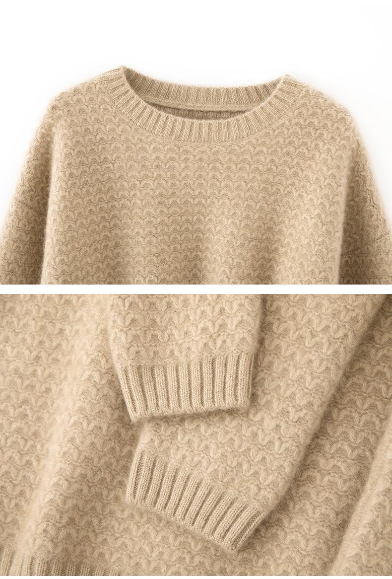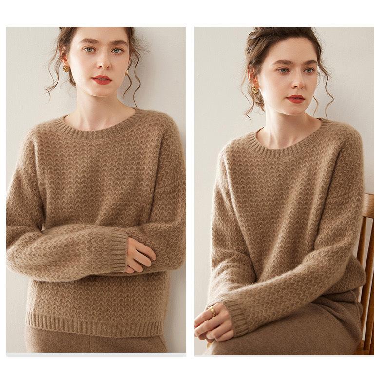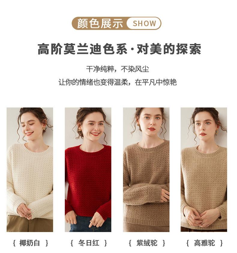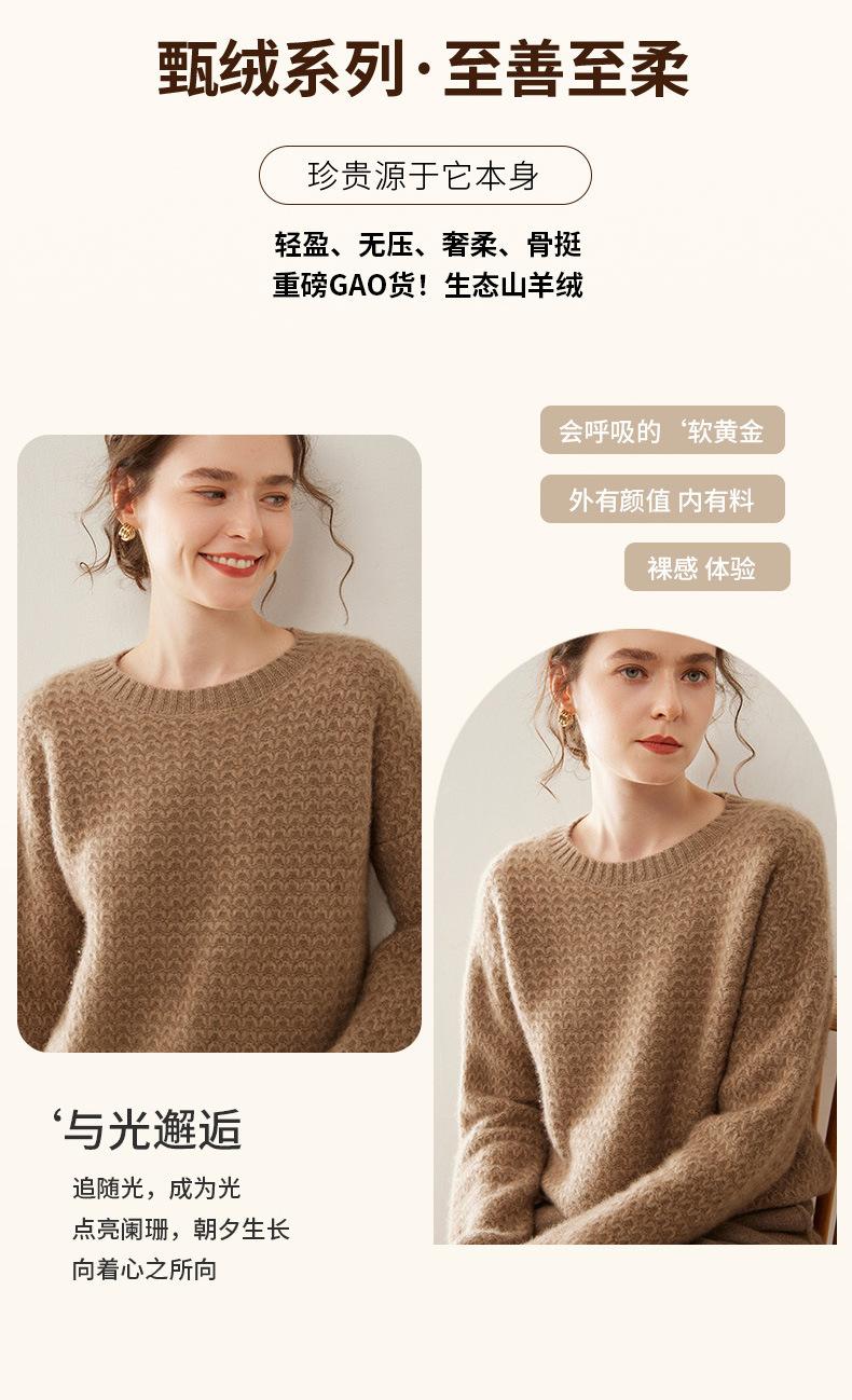 24 Otoño e Invierno Nuevo Suéter de Cachemira de Montaña para Mujer Cuello Redondo Holgado Combinable Color Sólido Estilo Relajado Simple Suéter Jersey Grueso