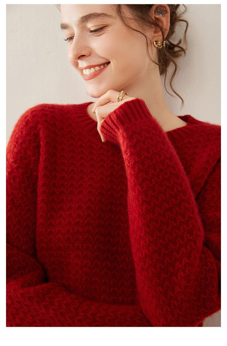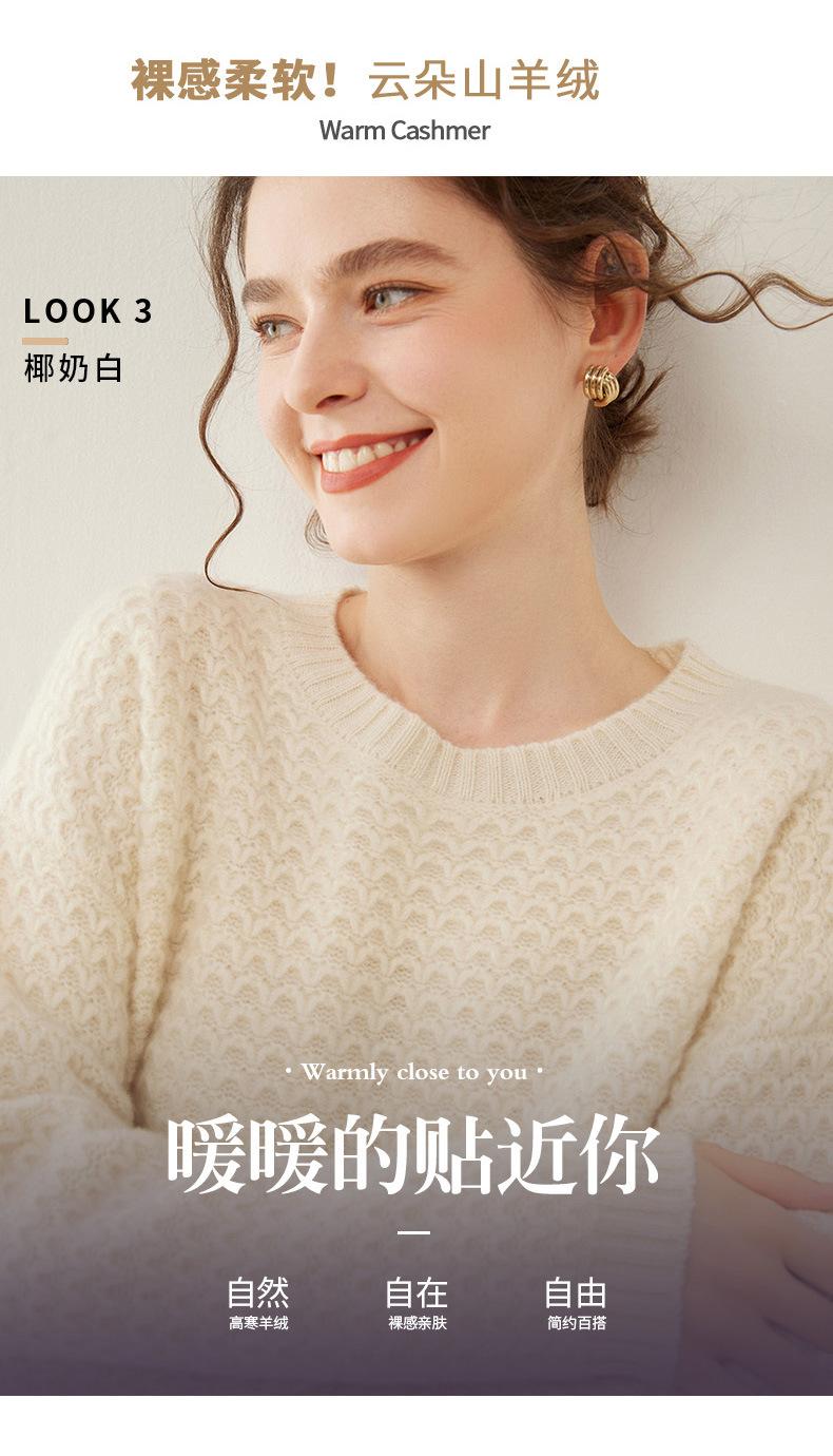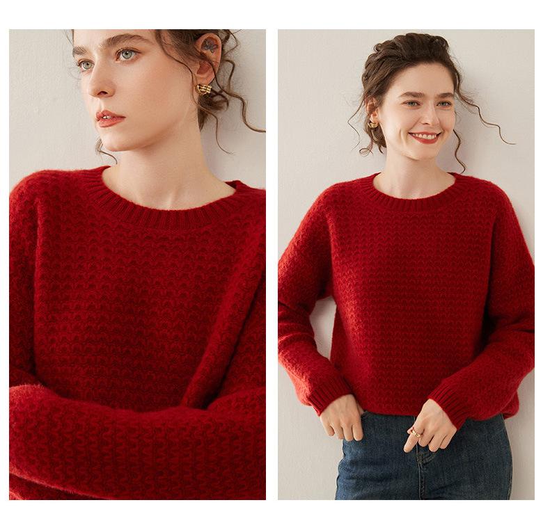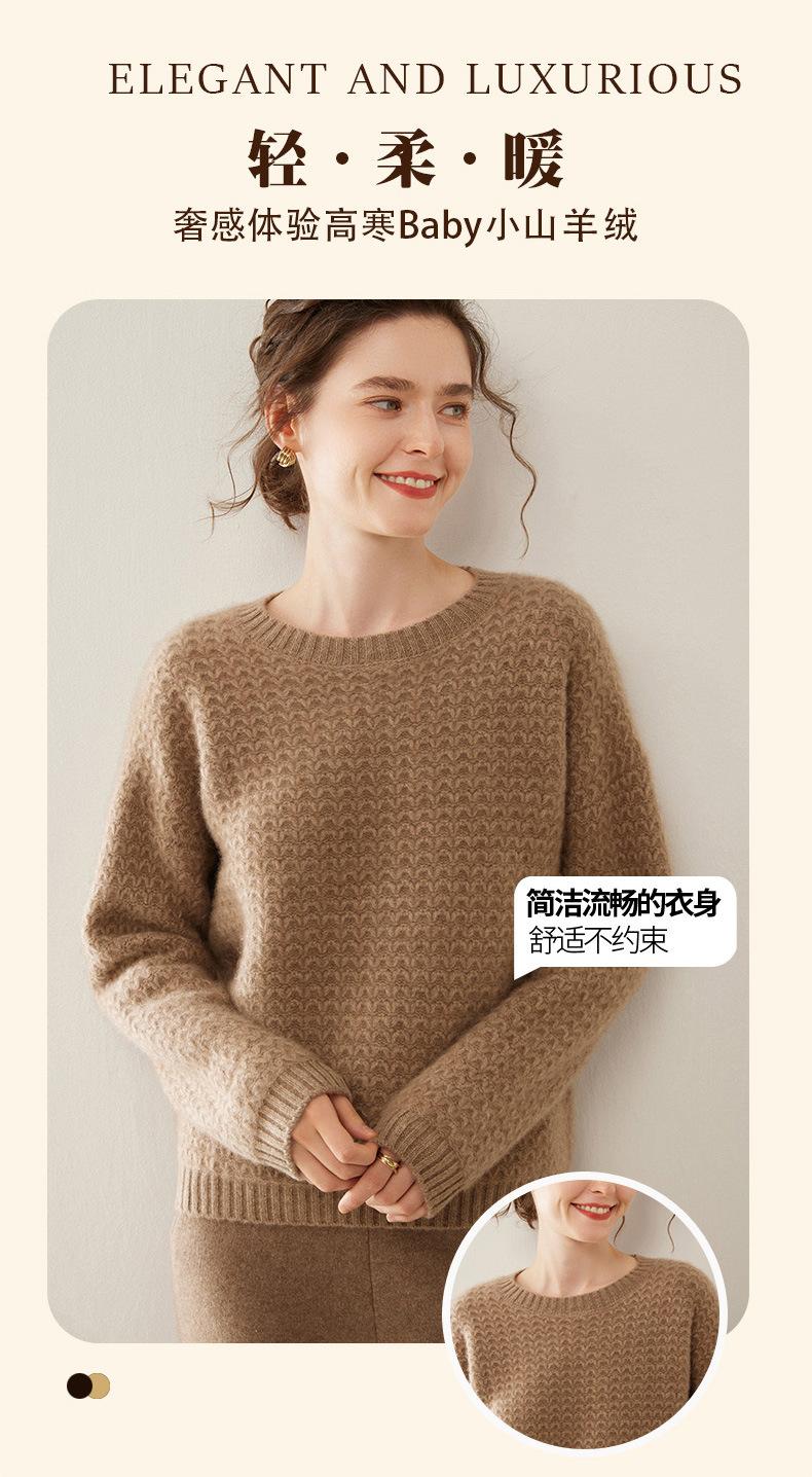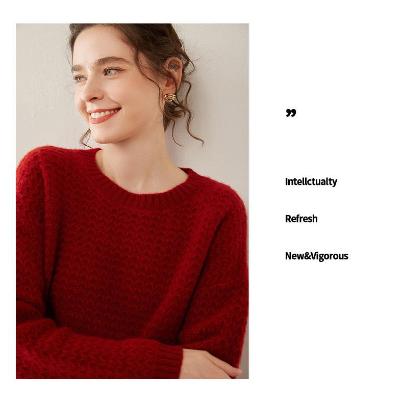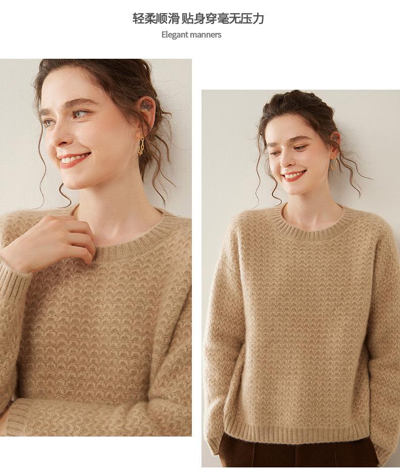 24 Otoño e Invierno Nuevo Suéter de Cachemira de Montaña para Mujer Cuello Redondo Holgado Combinable Color Sólido Estilo Relajado Simple Suéter Jersey Grueso