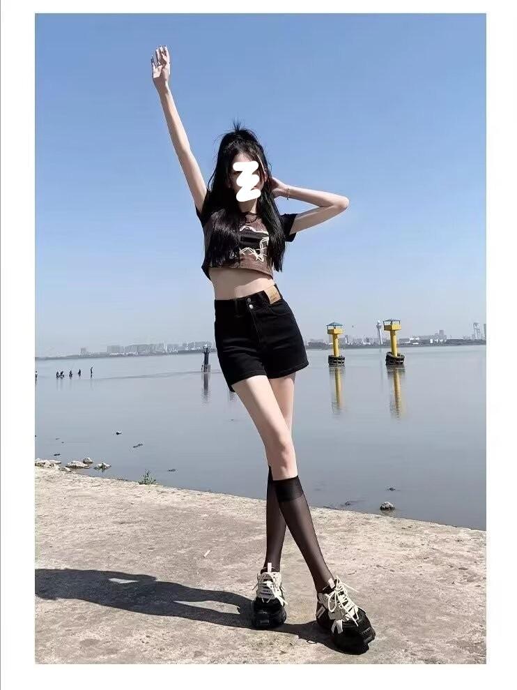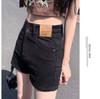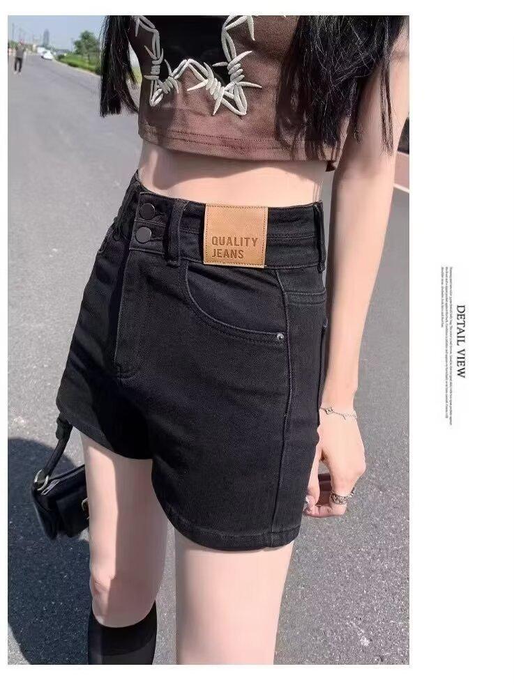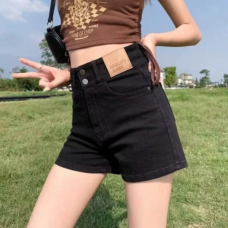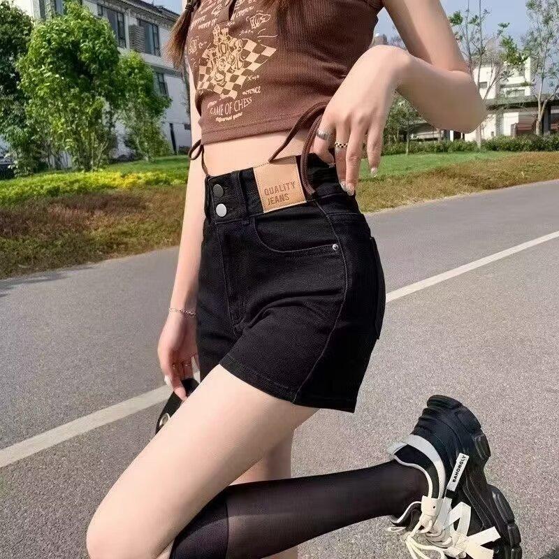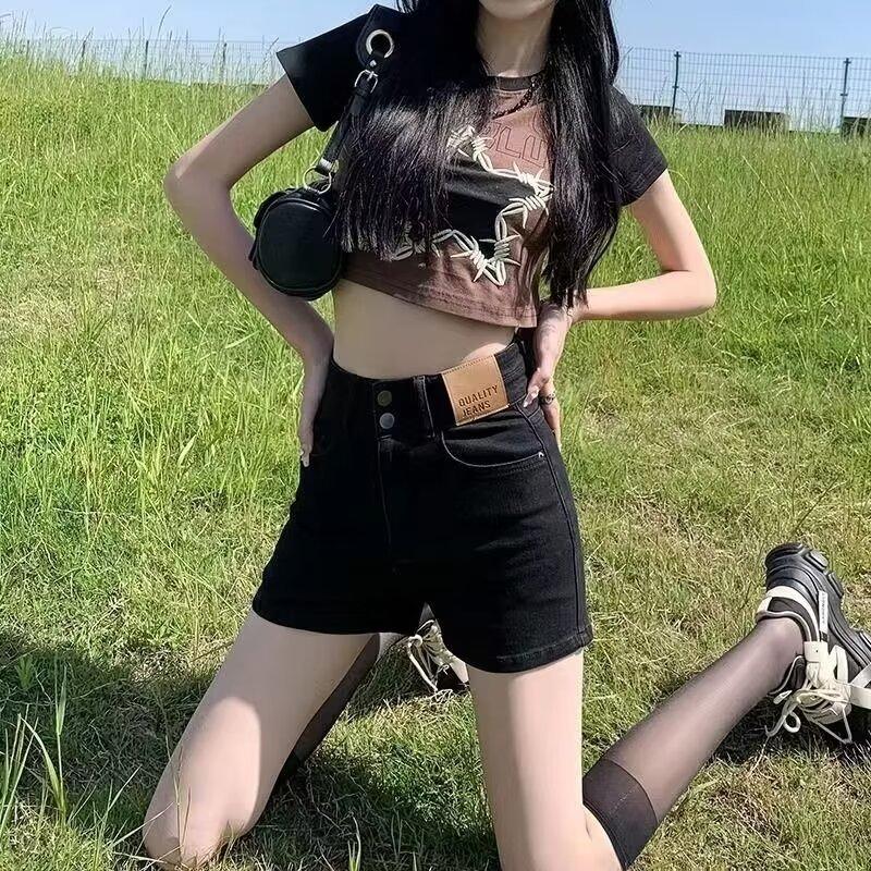 Pantalones cortos vaqueros estilo americano para mujer, novedad de verano 2024, cintura alta, corte A, ajustados, adelgazantes, elásticos, súper cortos.