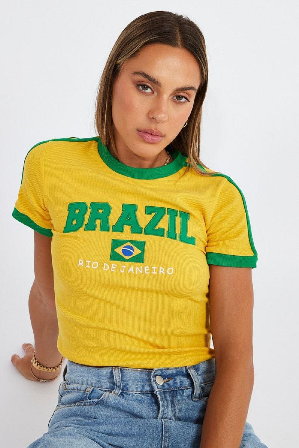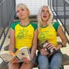 Camiseta de moda Y2K, nueva, sexy, ajustada, con letras distintivas bordadas, estilo retro urbano