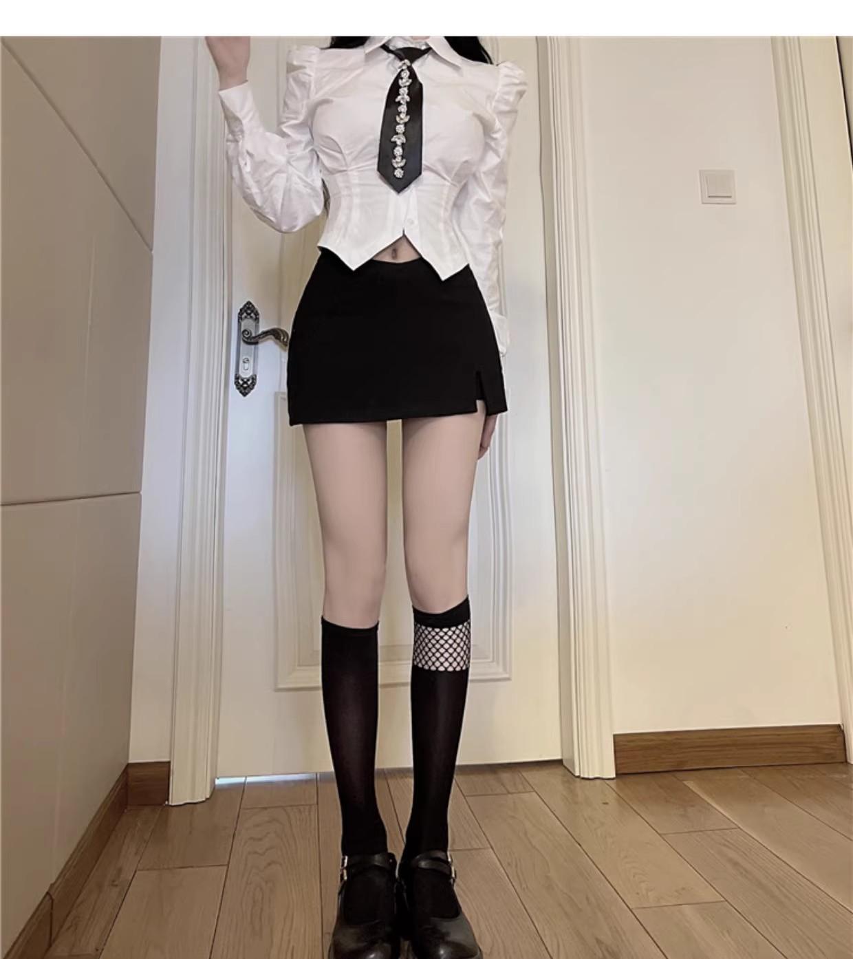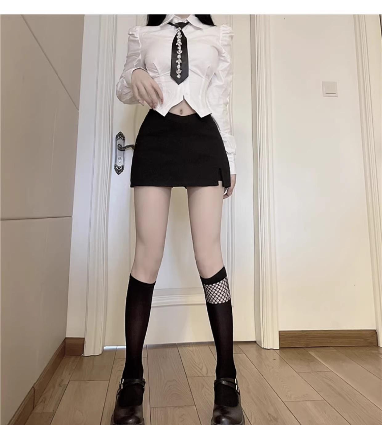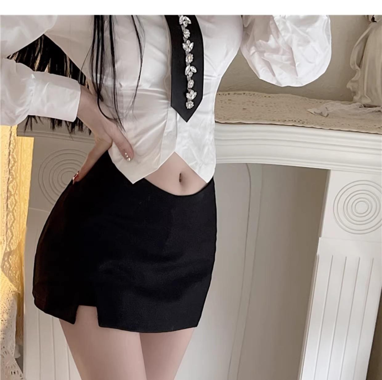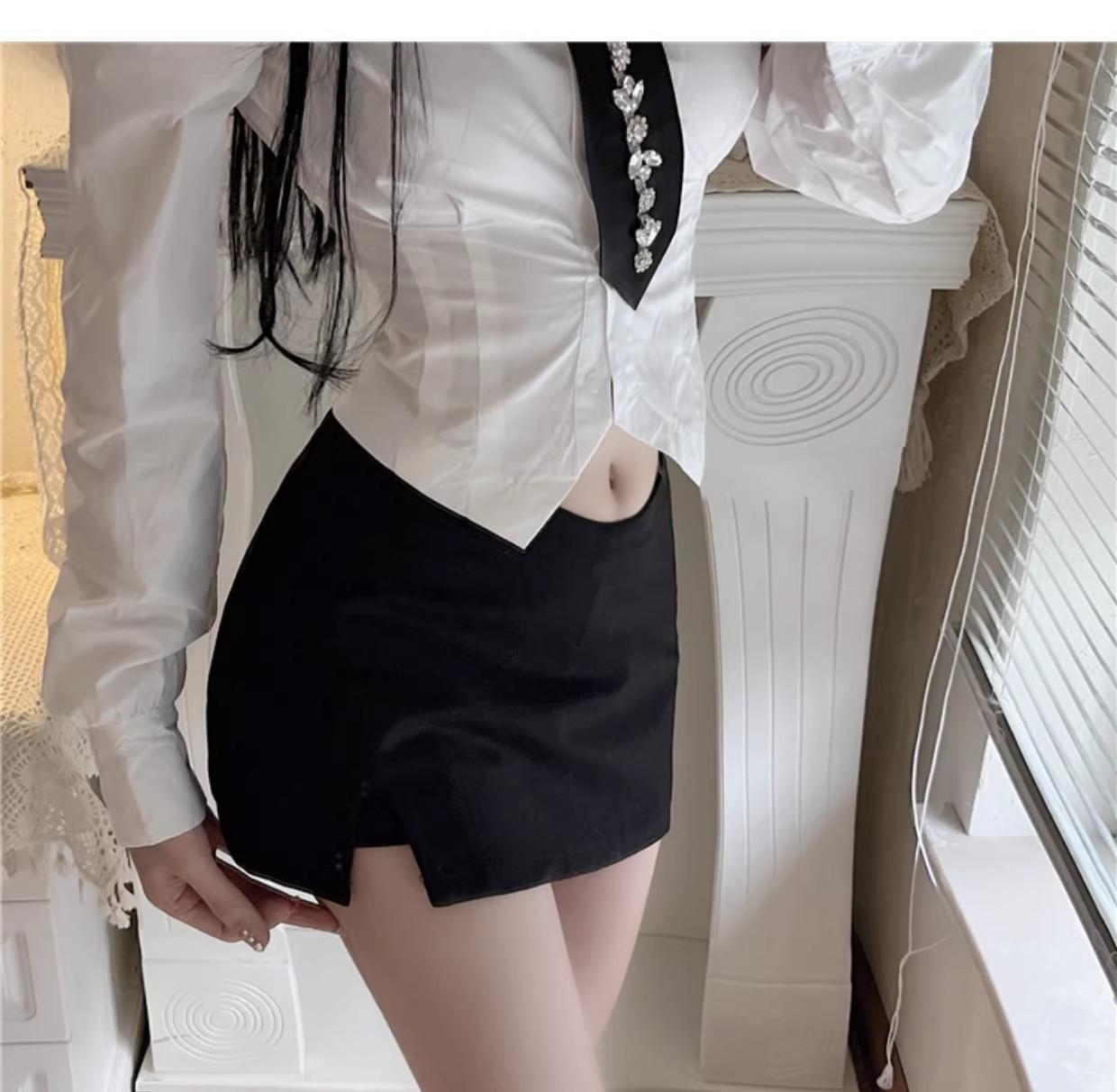 Culottes Negros de Media Longitud para Mujer 2023 Primavera y Otoño Nuevo Diseño en Forma de V Estilo Puro Lujoso Look Adelgazante Falda Corta Línea A