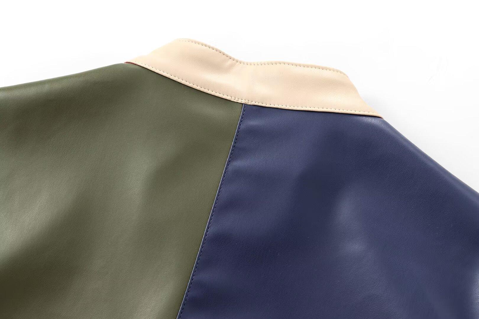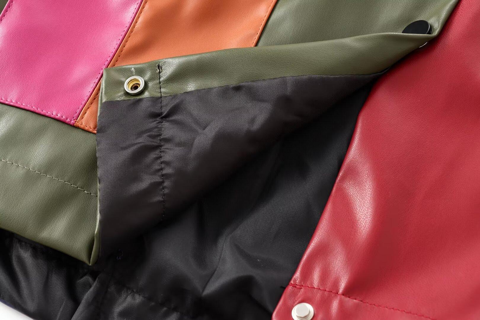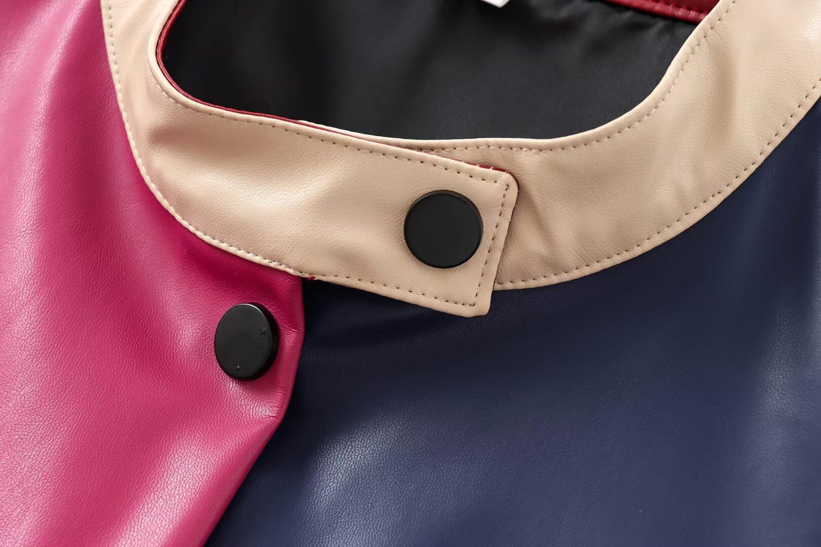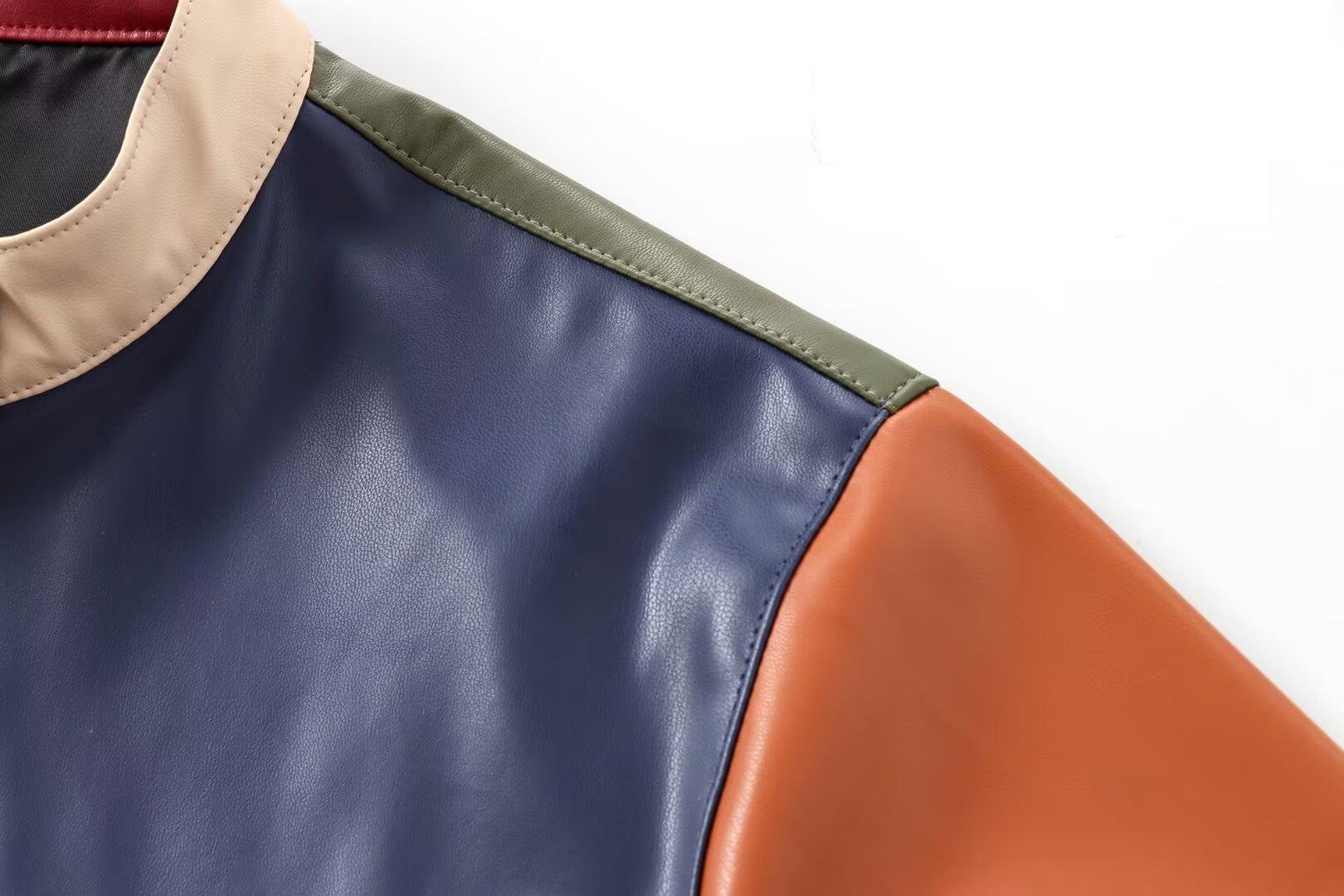 Moda transfronteriza europea y americana cuello alto combinación de colores manga larga chaqueta de cuero abrigo 2024 invierno nuevo L4Y20517