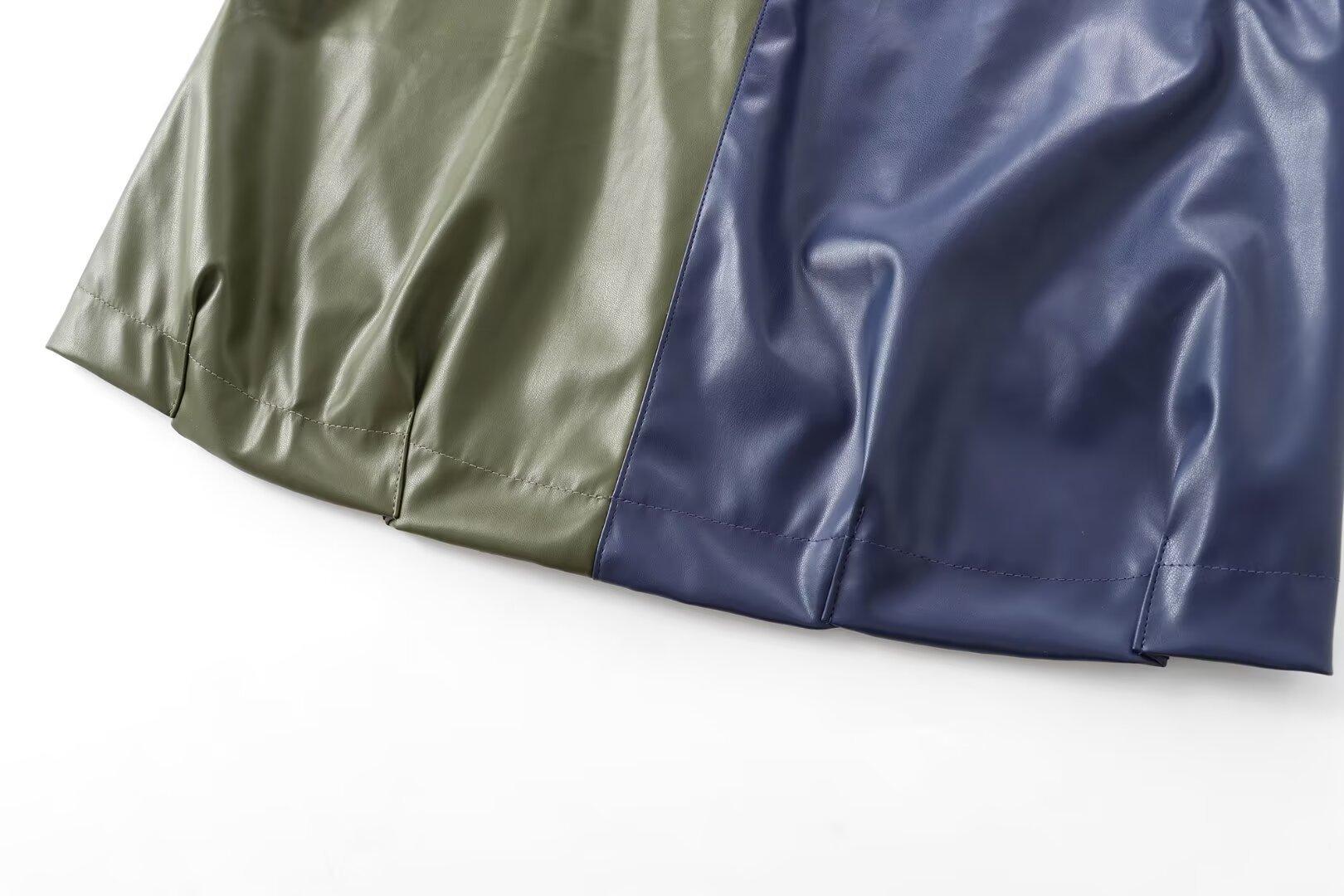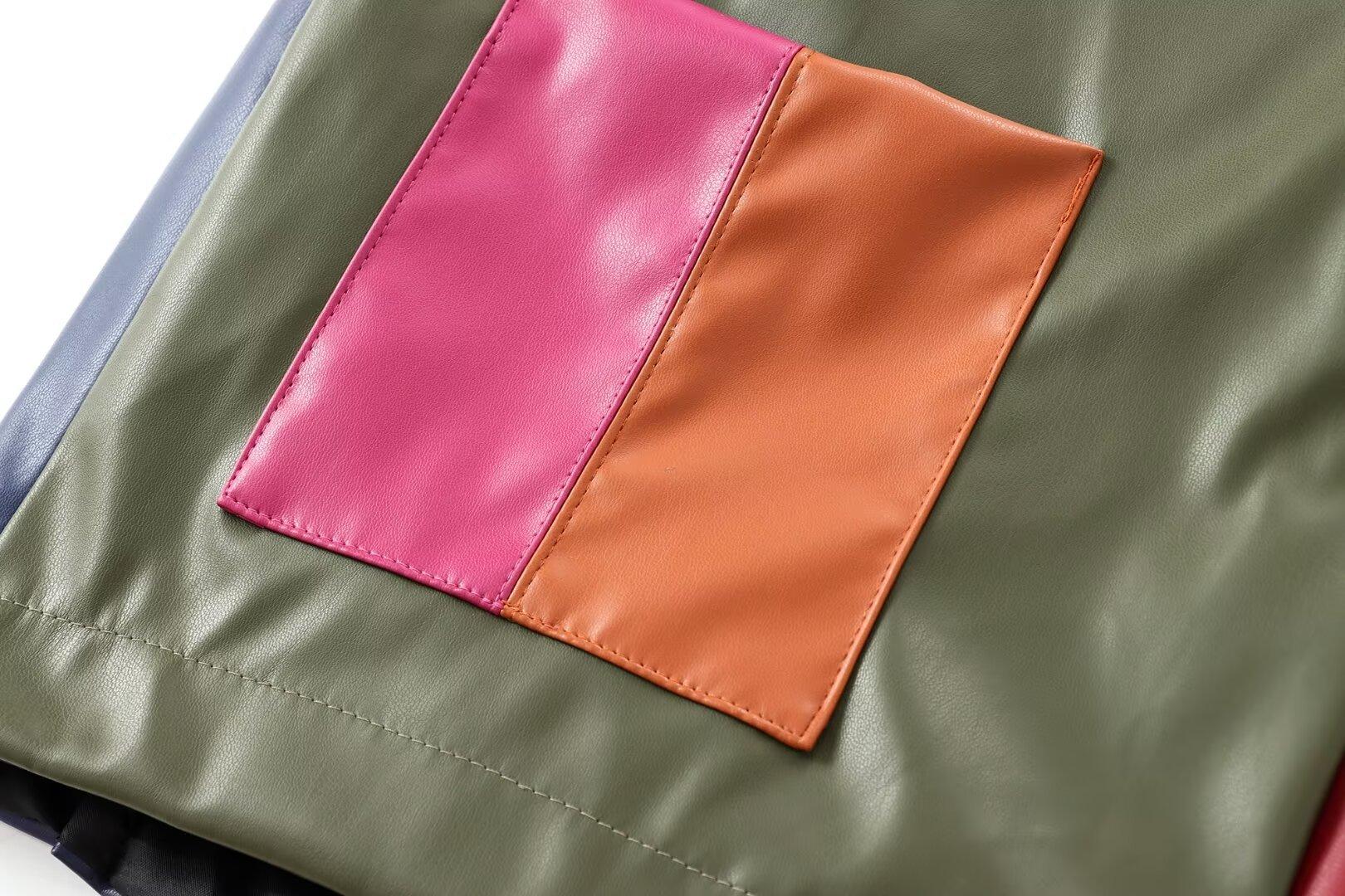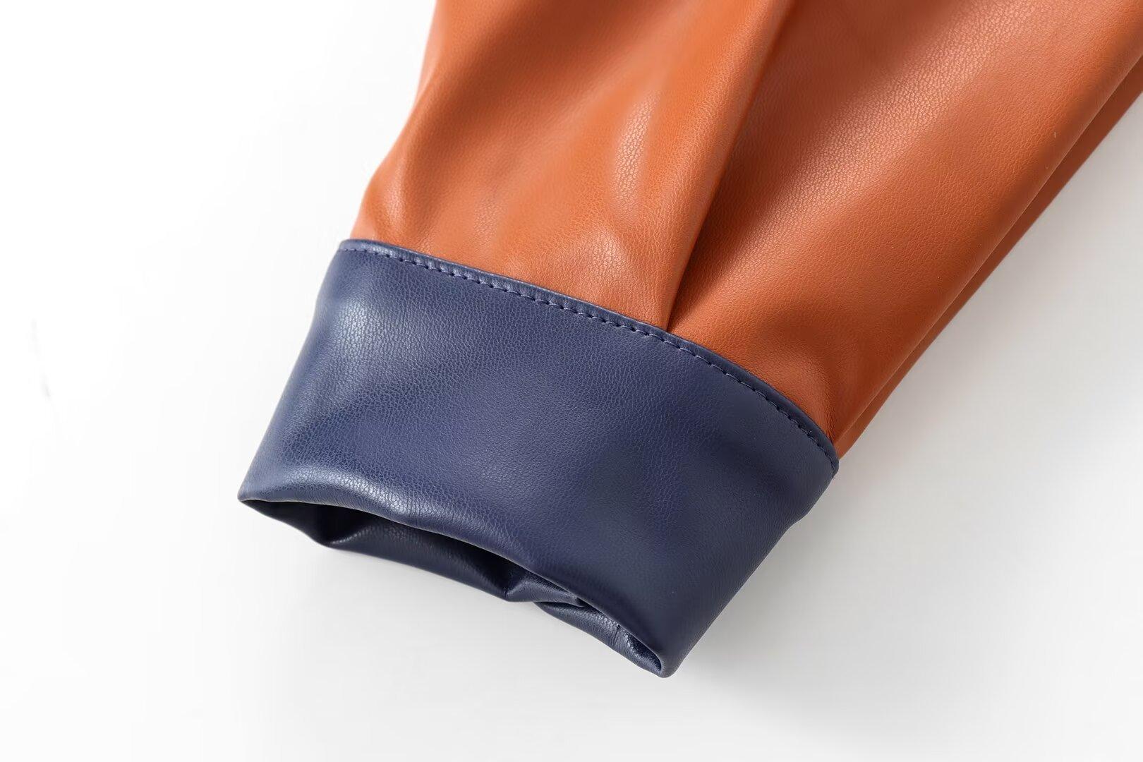 Moda transfronteriza europea y americana cuello alto combinación de colores manga larga chaqueta de cuero abrigo 2024 invierno nuevo L4Y20517