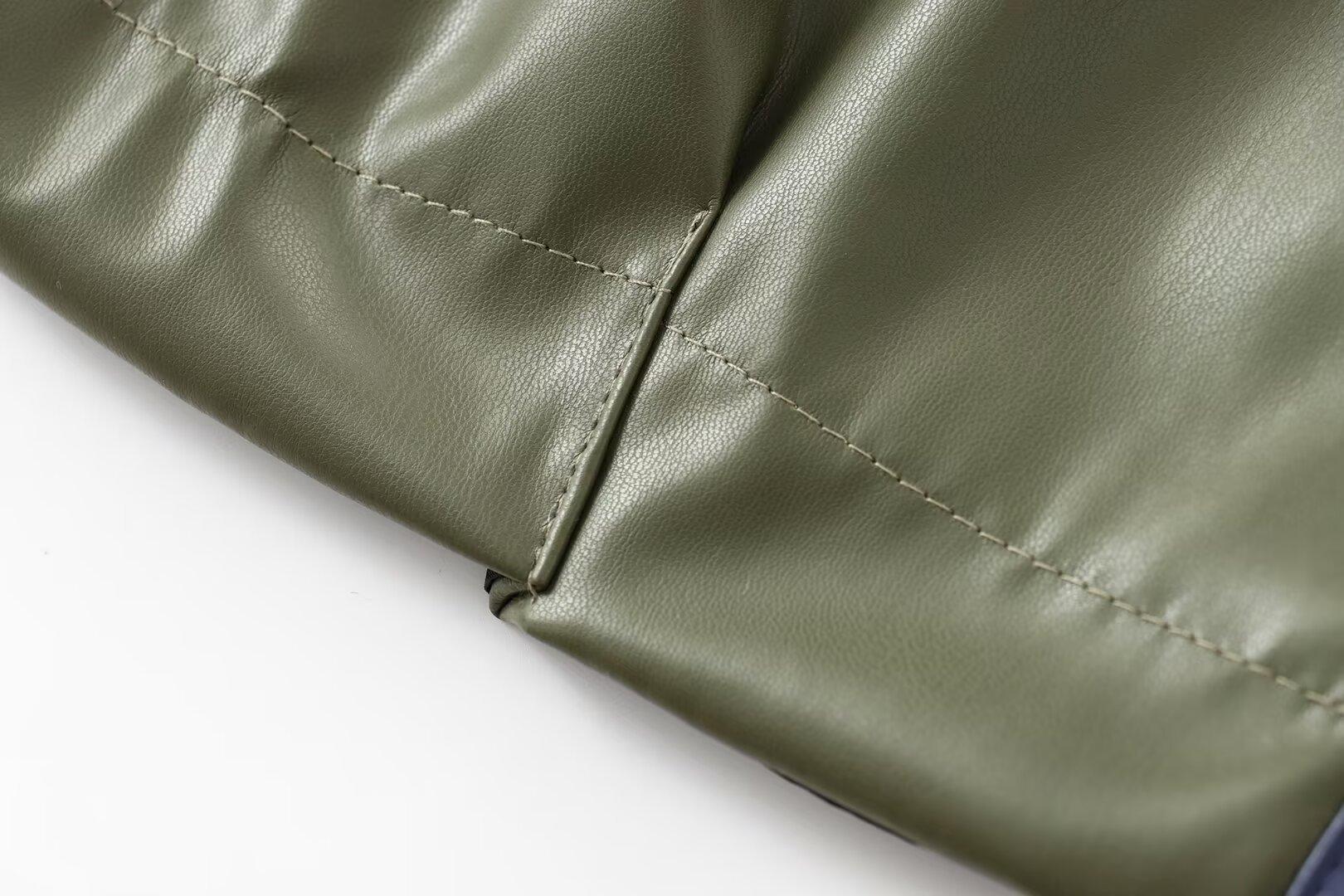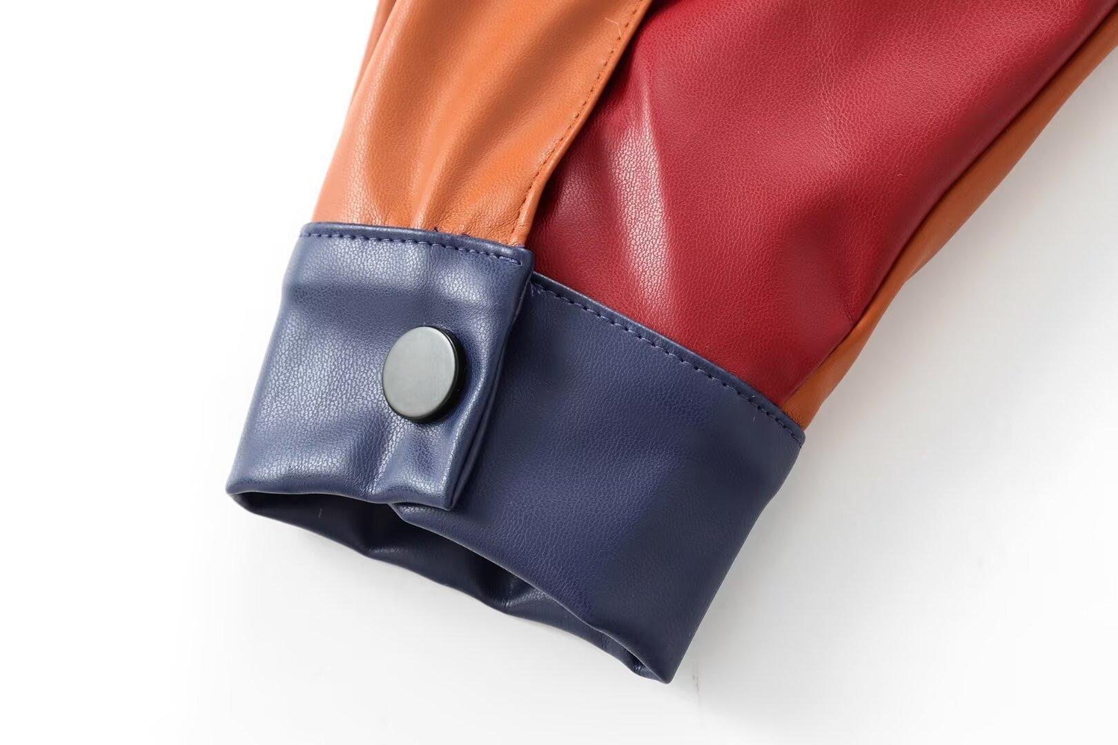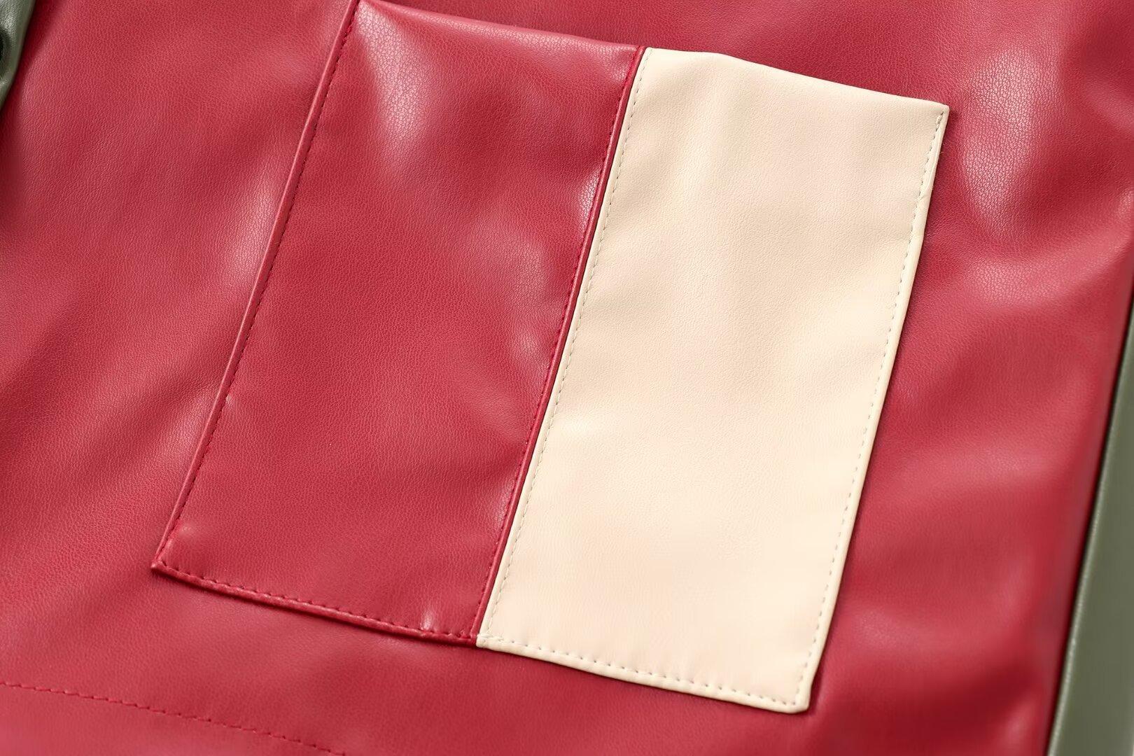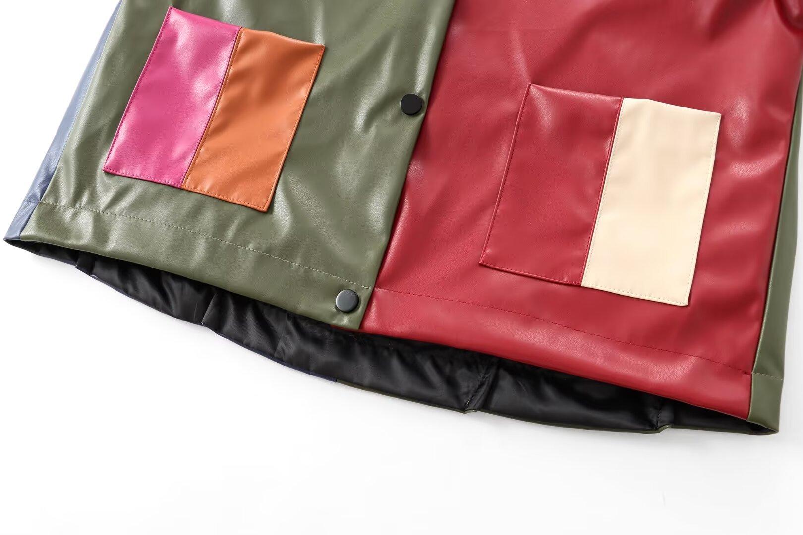 Moda transfronteriza europea y americana cuello alto combinación de colores manga larga chaqueta de cuero abrigo 2024 invierno nuevo L4Y20517