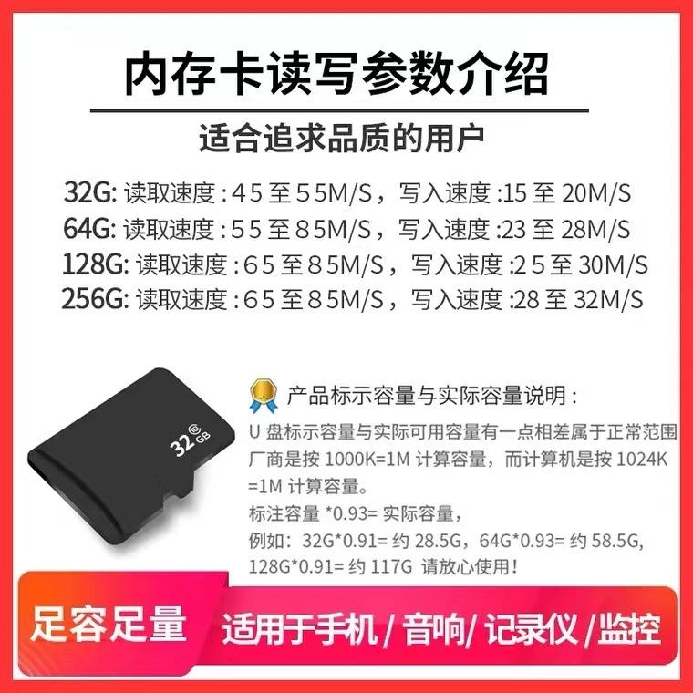 Tarjeta de memoria de 32 g, tarjeta de memoria de 8 G, tarjeta TF de alta velocidad de 16 g, grabadora de conducción de 64 G, tarjeta de almacenamiento de teléfono móvil de monitoreo de 128 GB