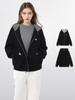 Abrigo Suéter con Capucha Negro para Mujer Otoño e Invierno Primavera y Otoño Sentido del Diseño Pequeñas Costuras Sudadera con Capucha Cárdigan Manga Larga Top