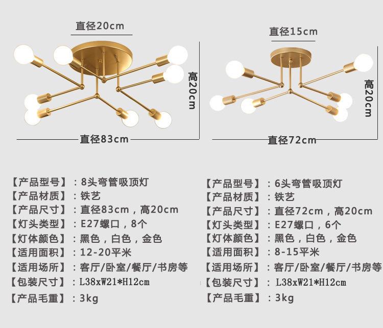 Nueva lámpara de techo creativa transfronteriza, lámpara de hierro, lámpara de techo led nórdica, iluminación de dormitorio, iluminación del hogar