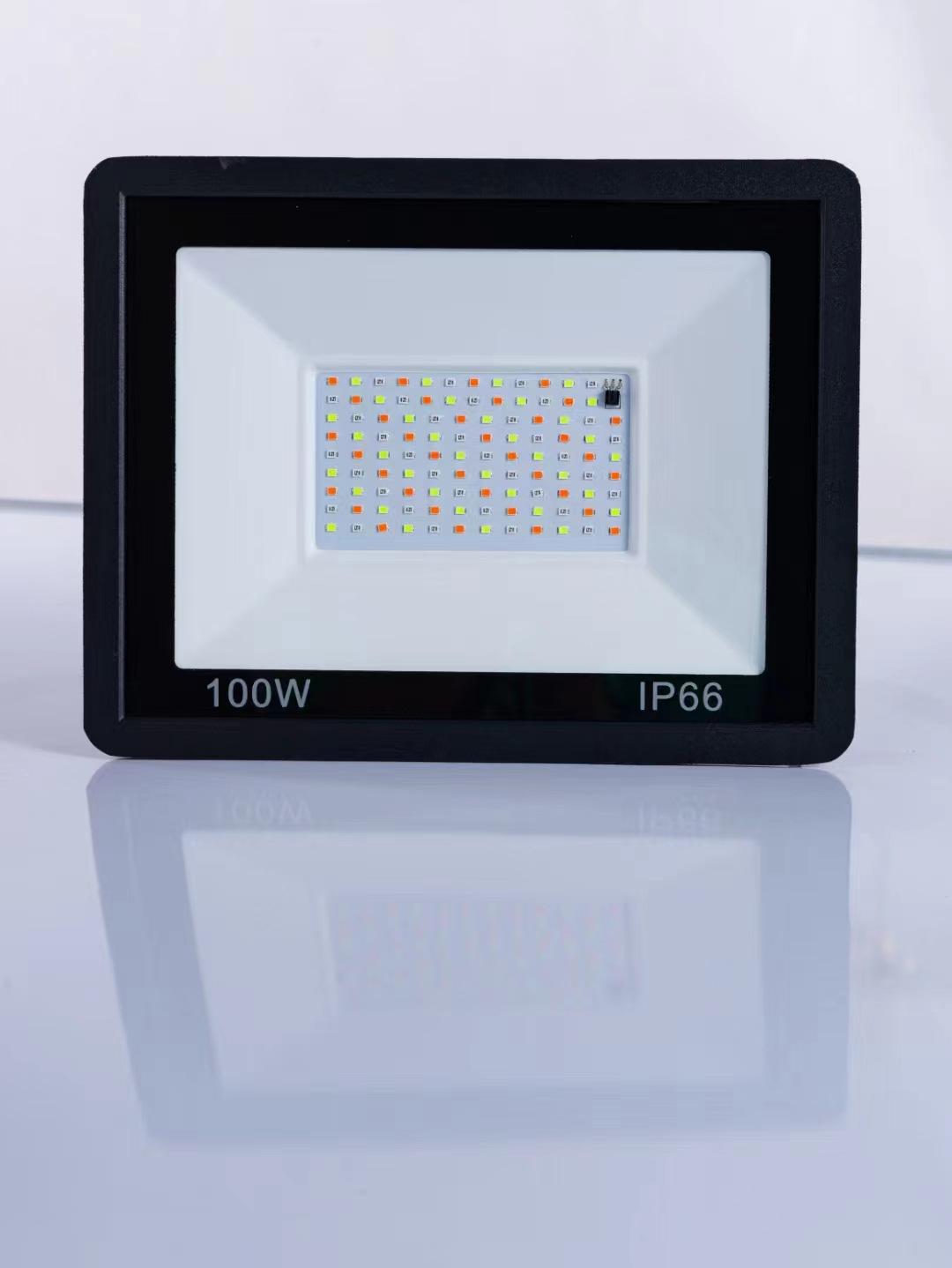 Reflector LED RGB de 100 W con control remoto, luz de inundación colorida de Apple para exteriores, jardín, paisaje, impermeable, con cambio de color