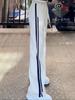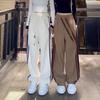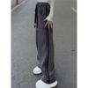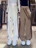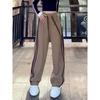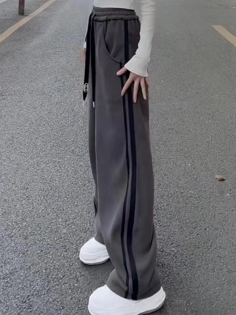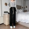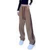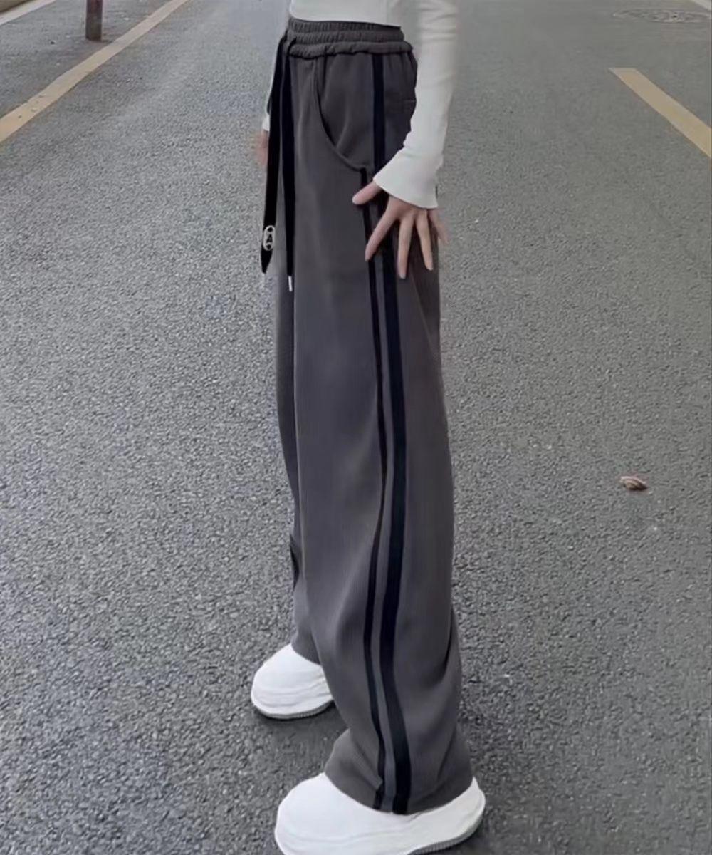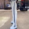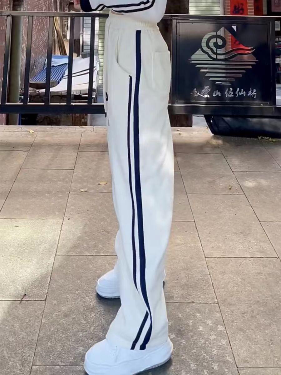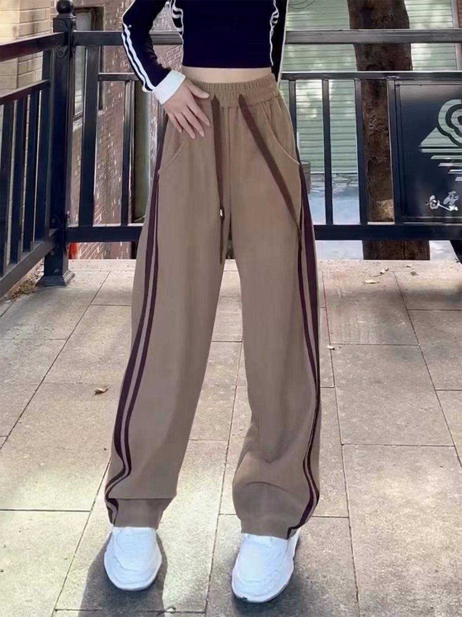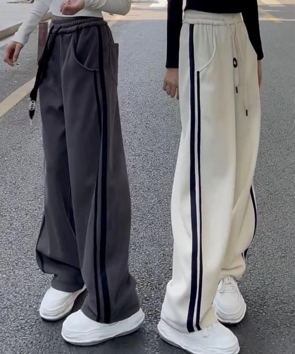 Pantalones casuales de otoño e invierno para mujer, pantalones deportivos ajustados de cintura alta de talla grande, pantalones de pierna ancha y alta con forro polar a rayas de estilo coreano