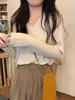 Suéter de punto blanco de manga larga con cuello en V suave para otoño e invierno de 2024, suéter blanco de primavera para mujer