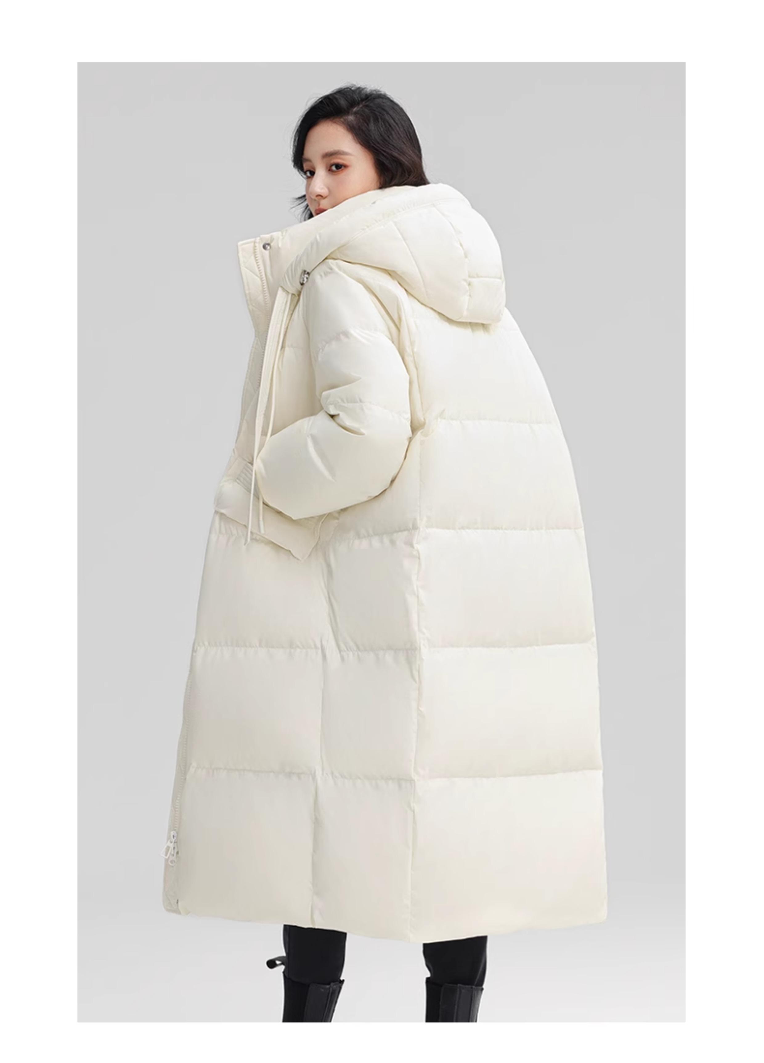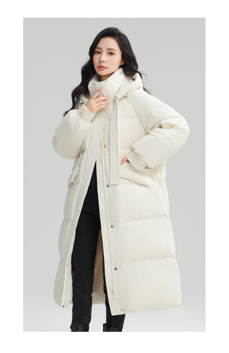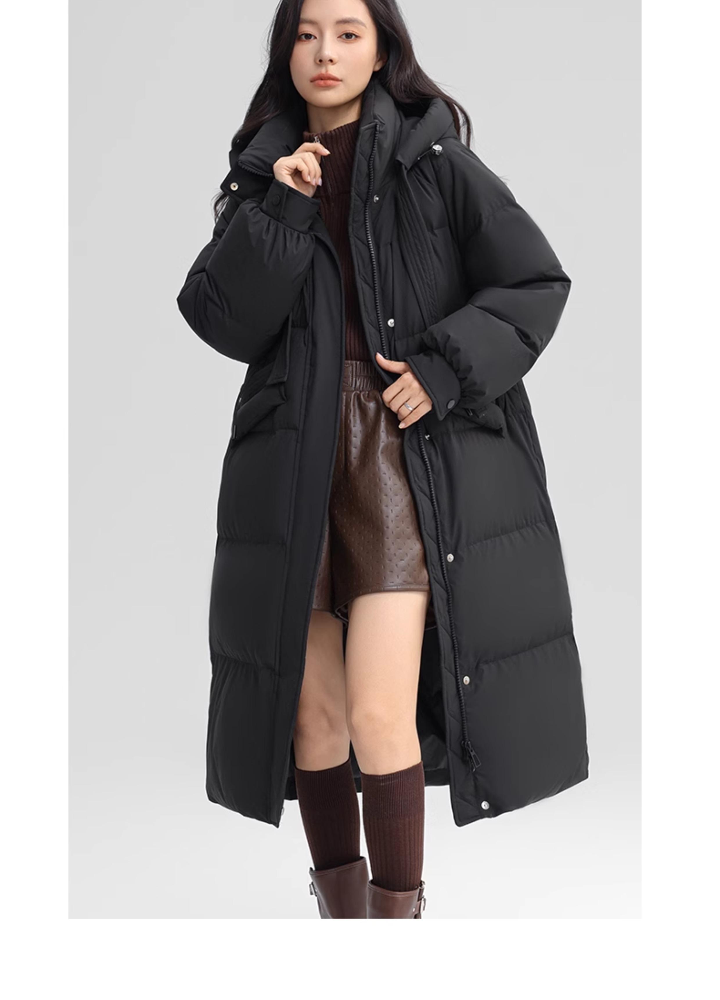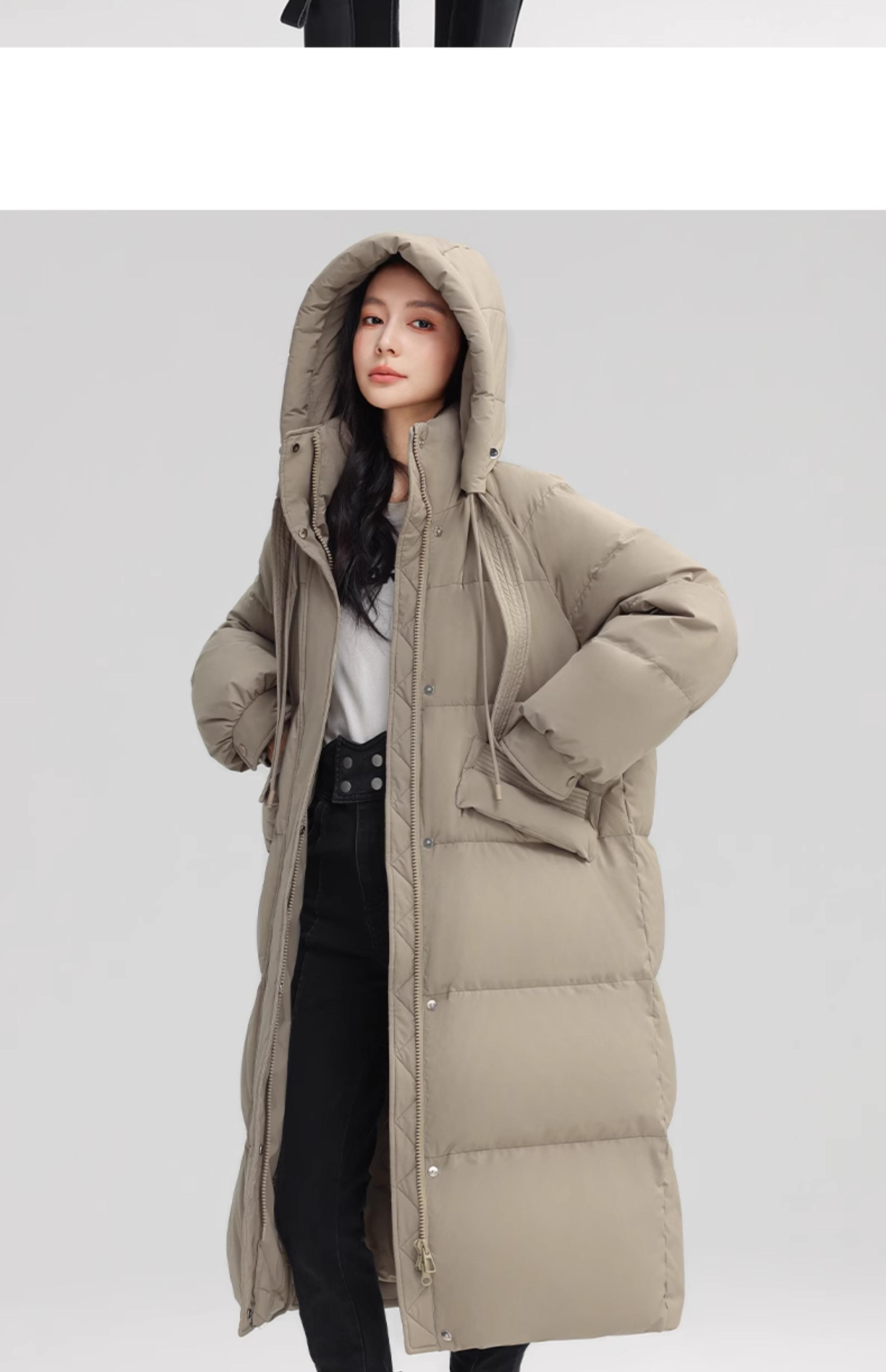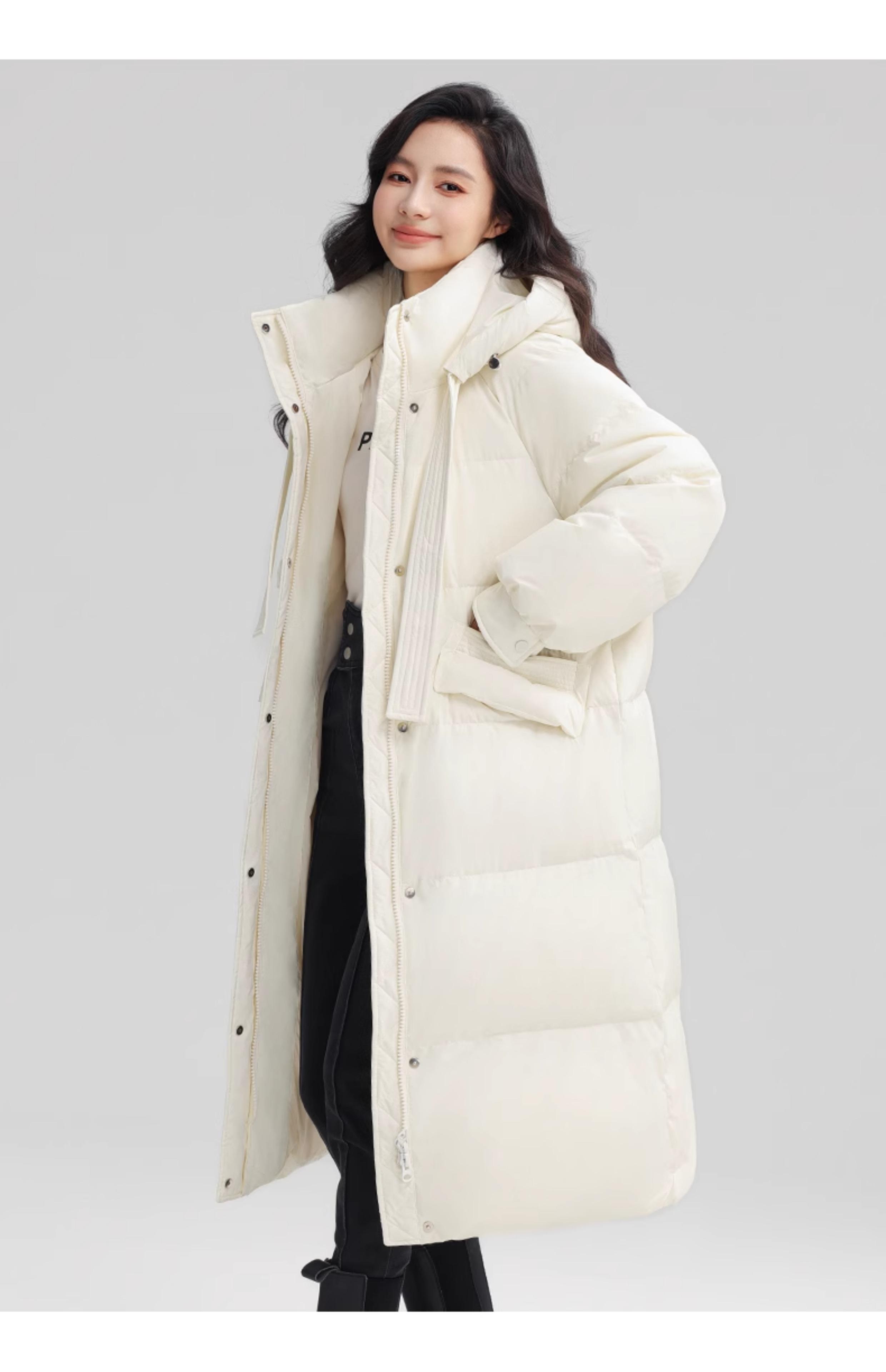 Chamarra de Plumón de Pato para Mujer Invierno Nuevo Largo con Capucha Engrosado Cuello Vertical Suelto Recto Plumón de Pato Cálida Chaqueta S