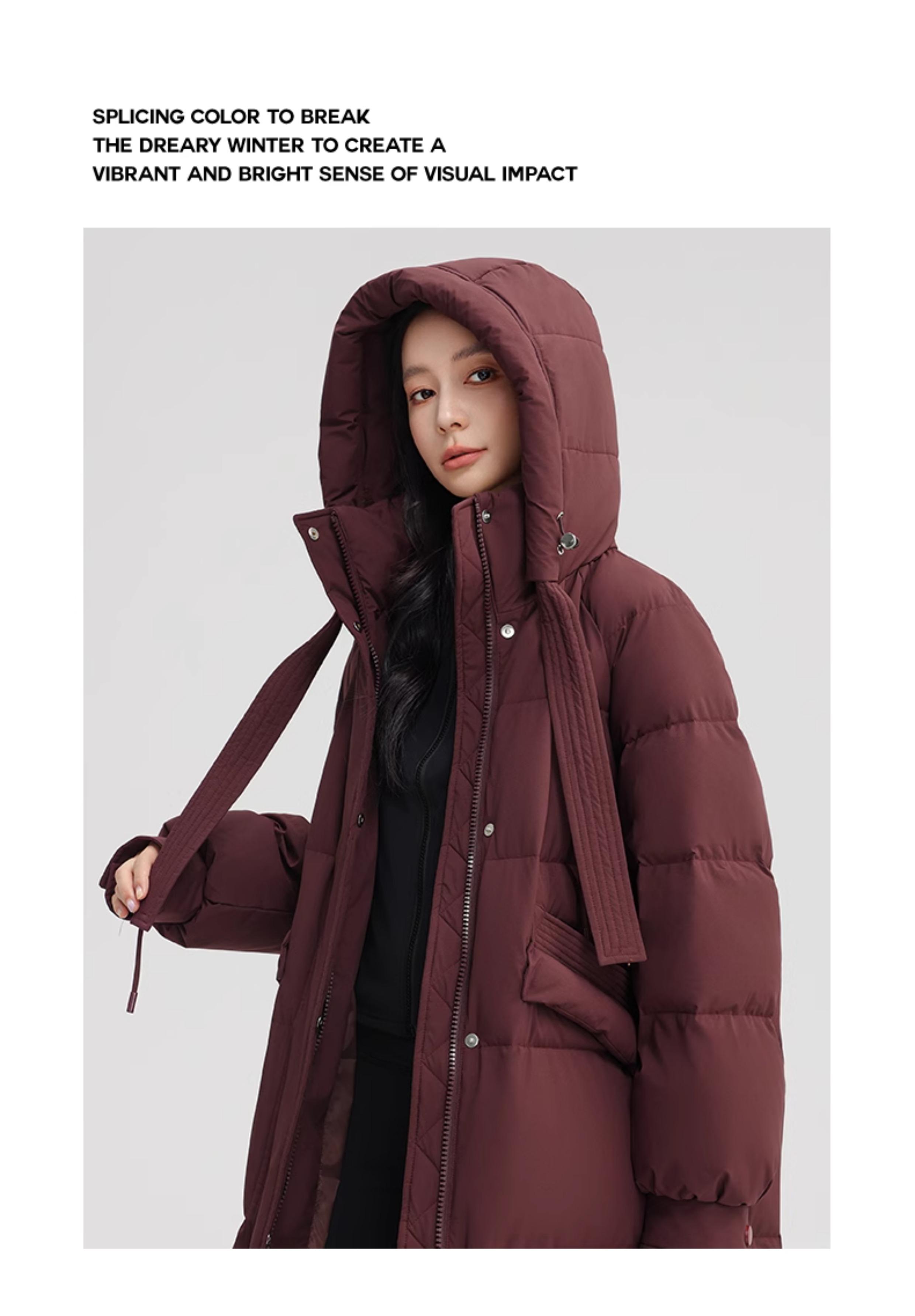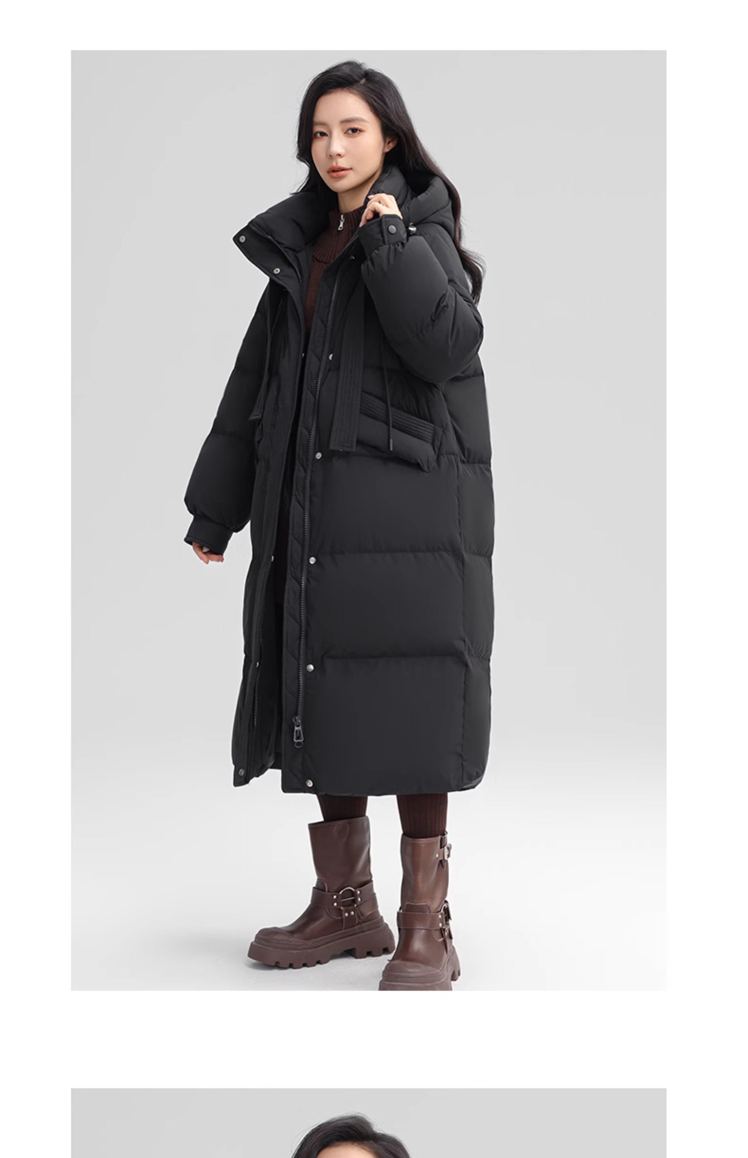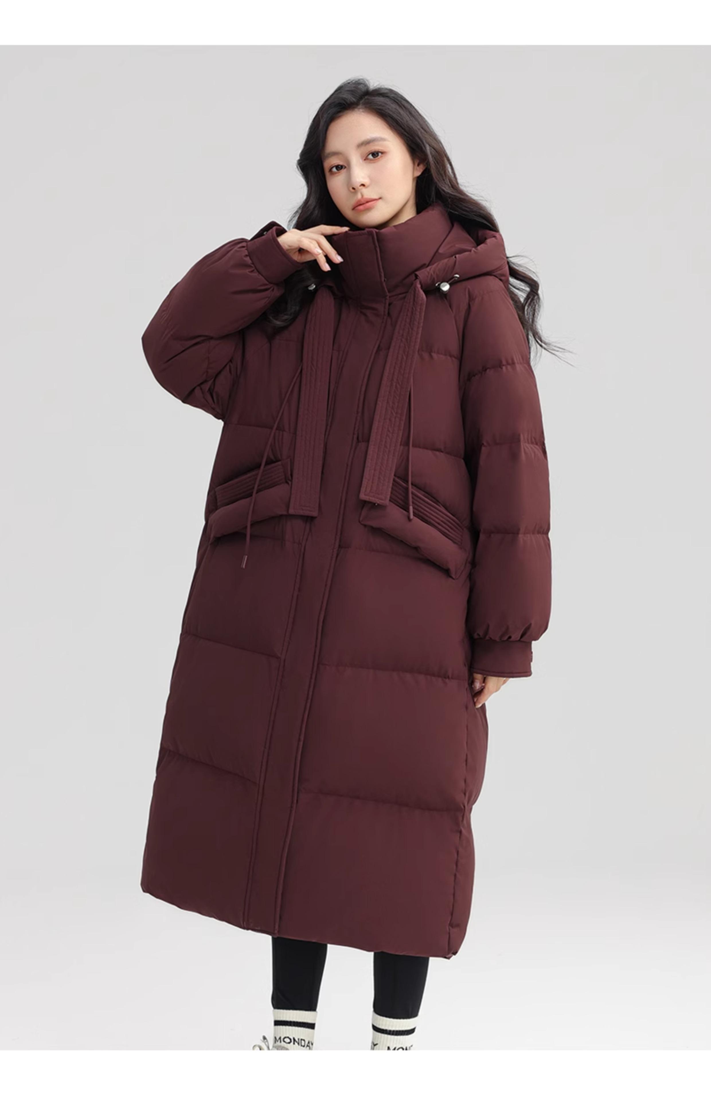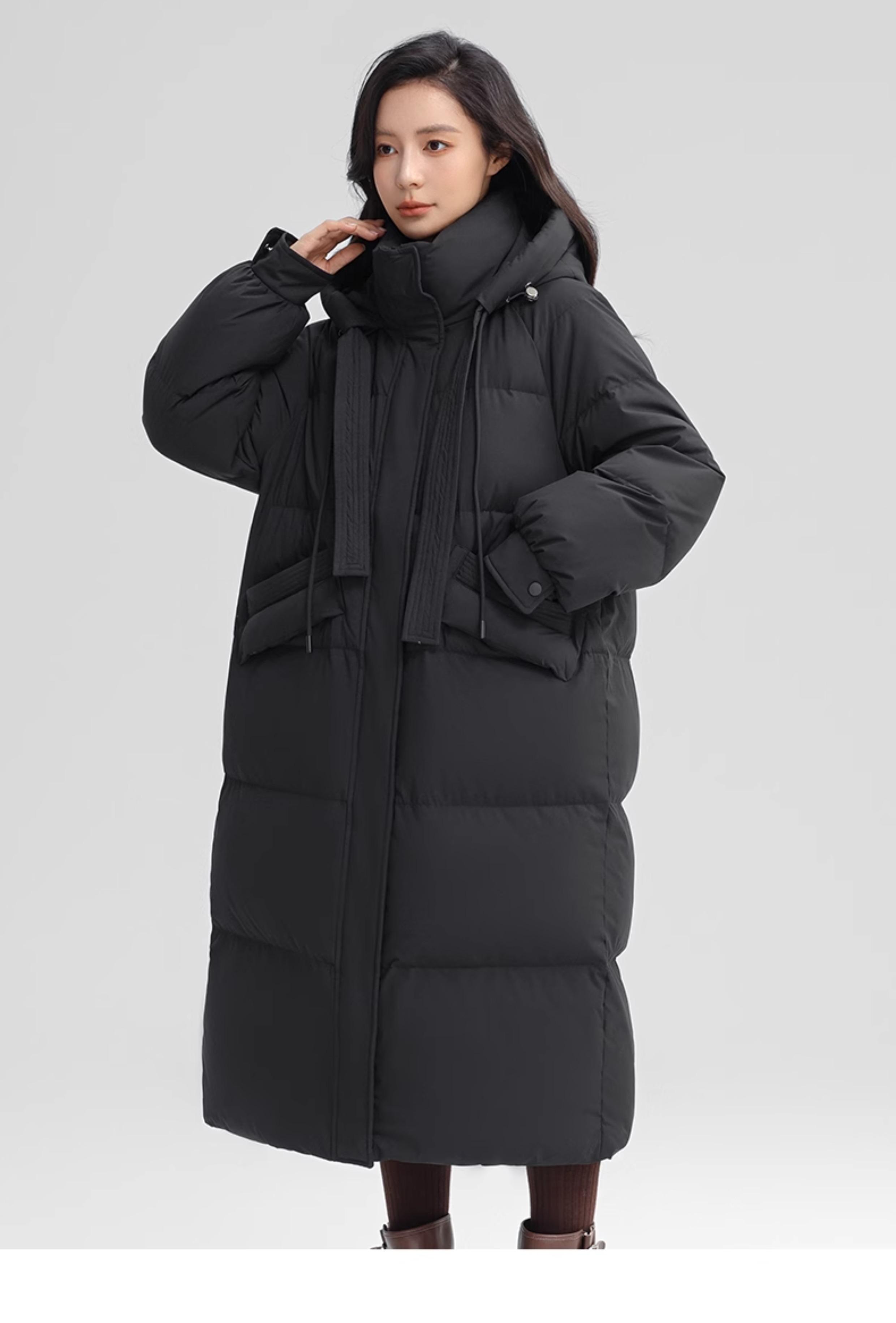 Chamarra de Plumón de Pato para Mujer Invierno Nuevo Largo con Capucha Engrosado Cuello Vertical Suelto Recto Plumón de Pato Cálida Chaqueta S