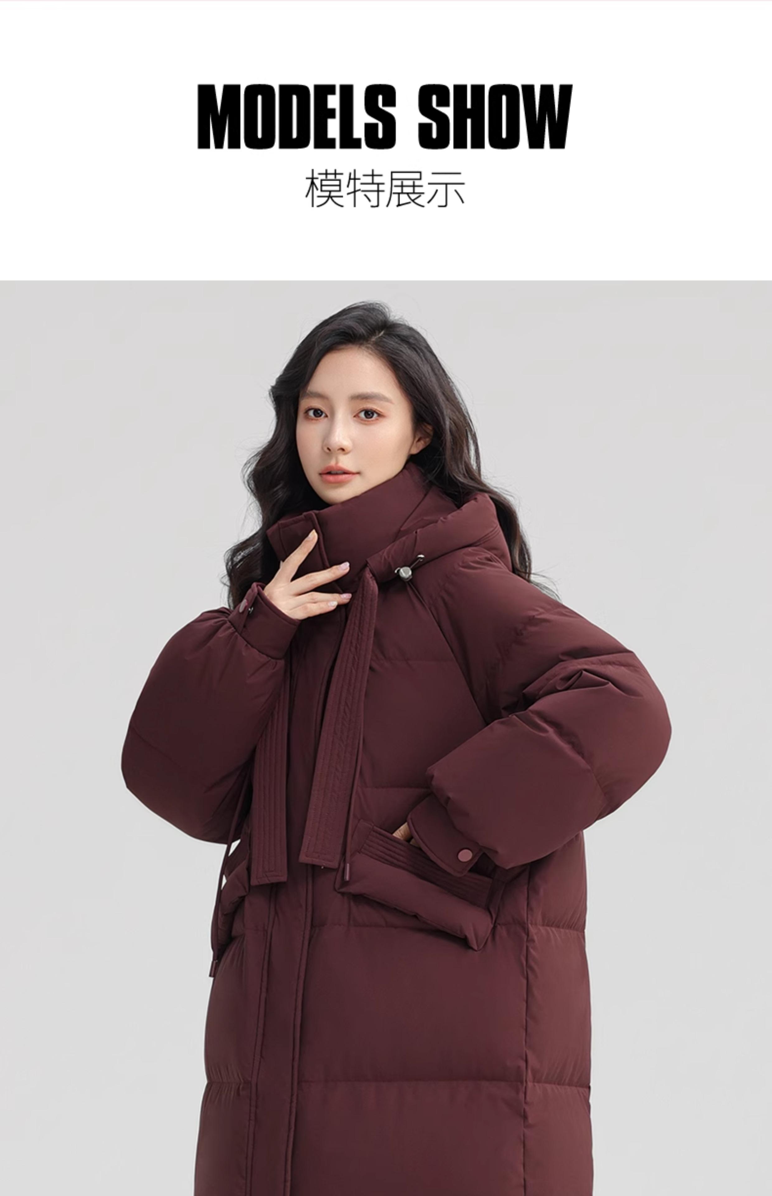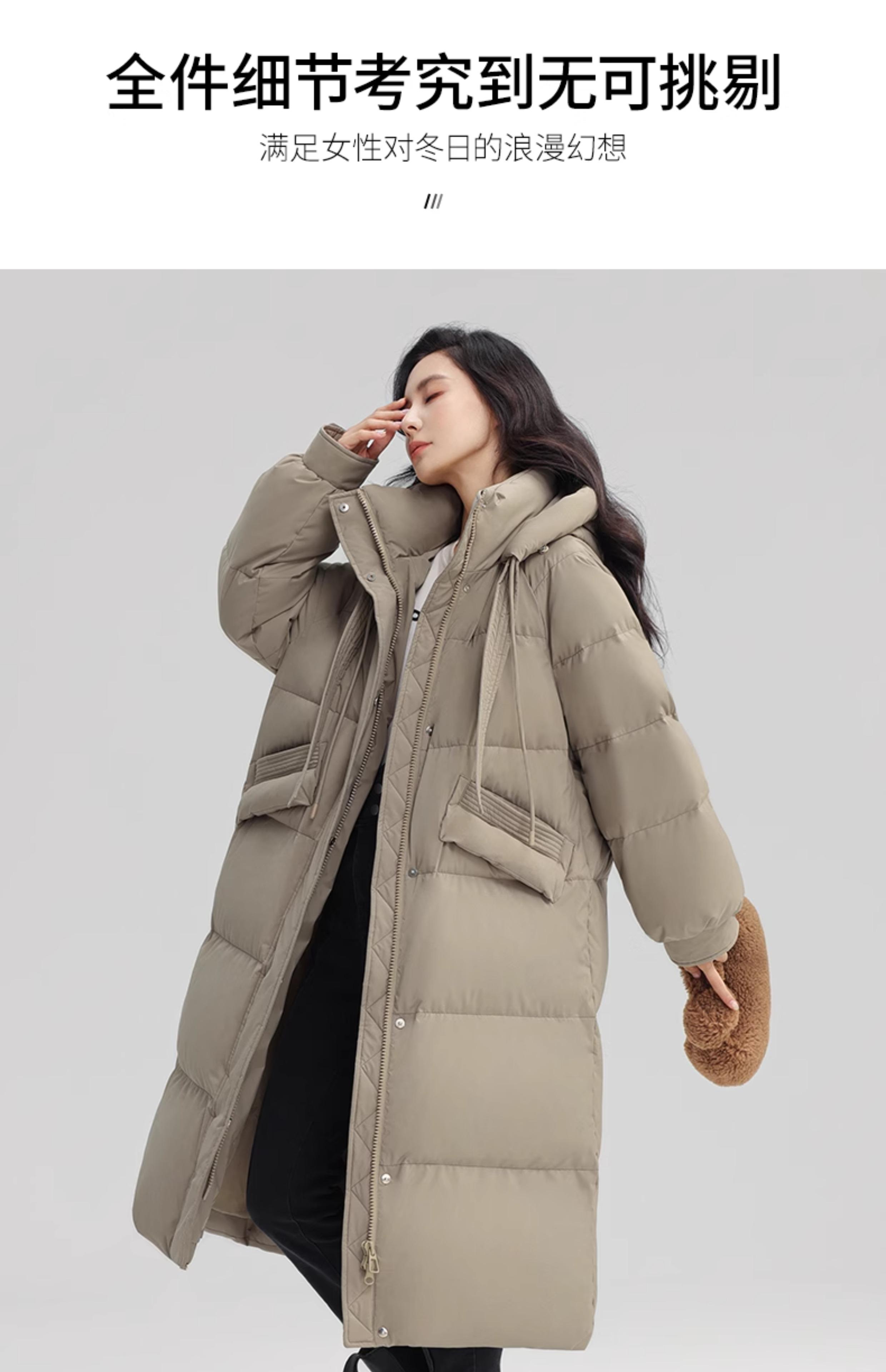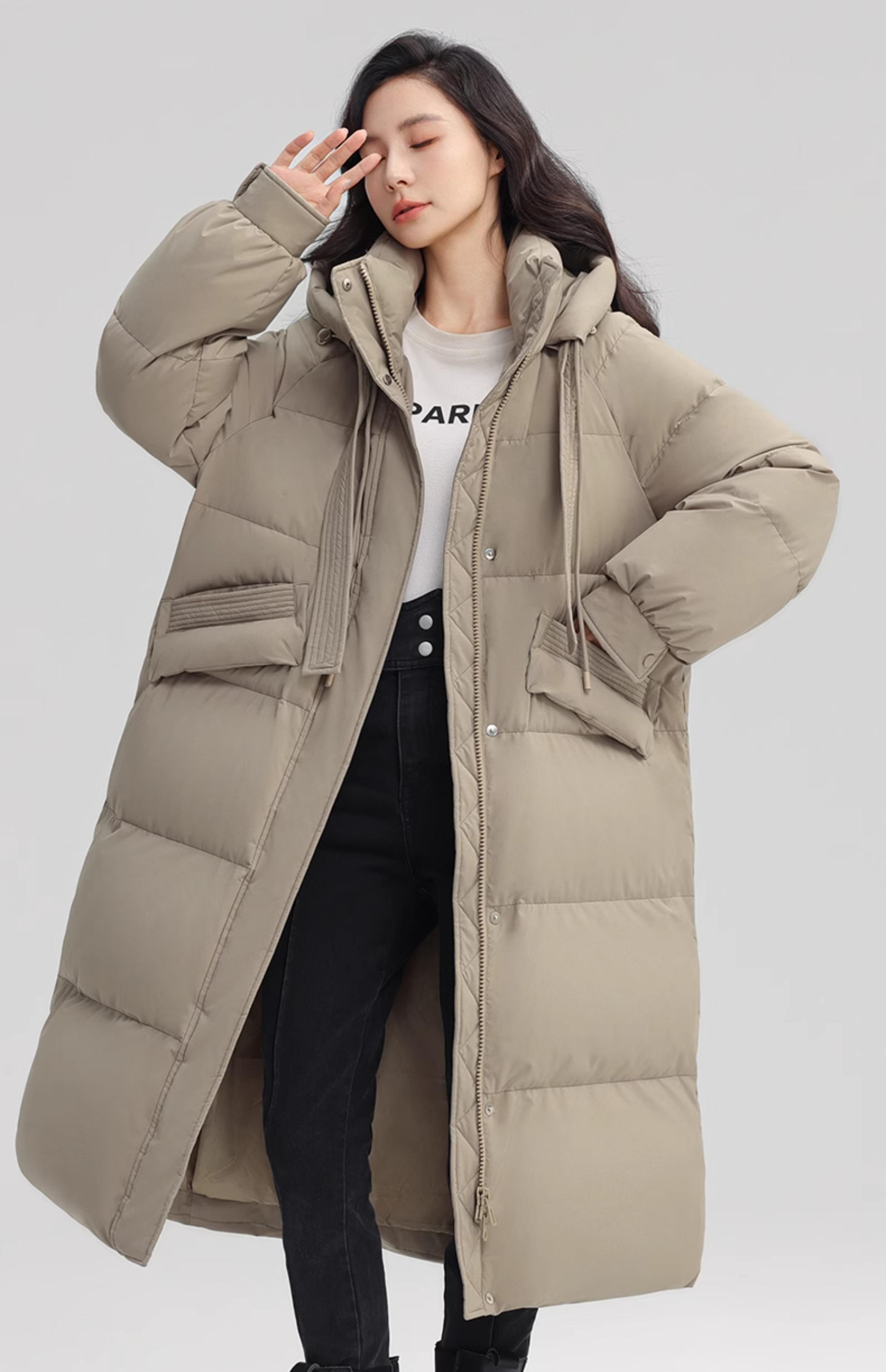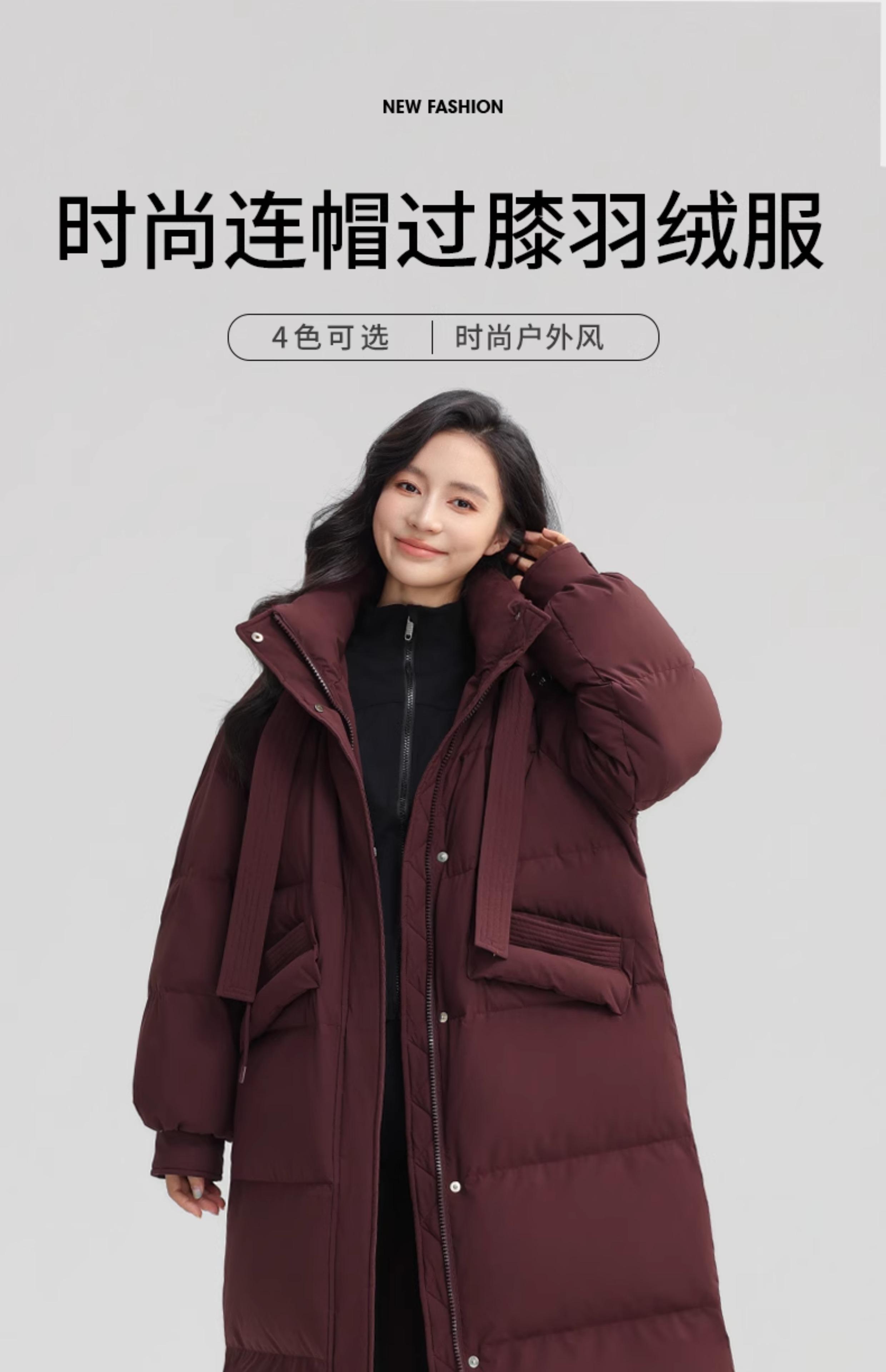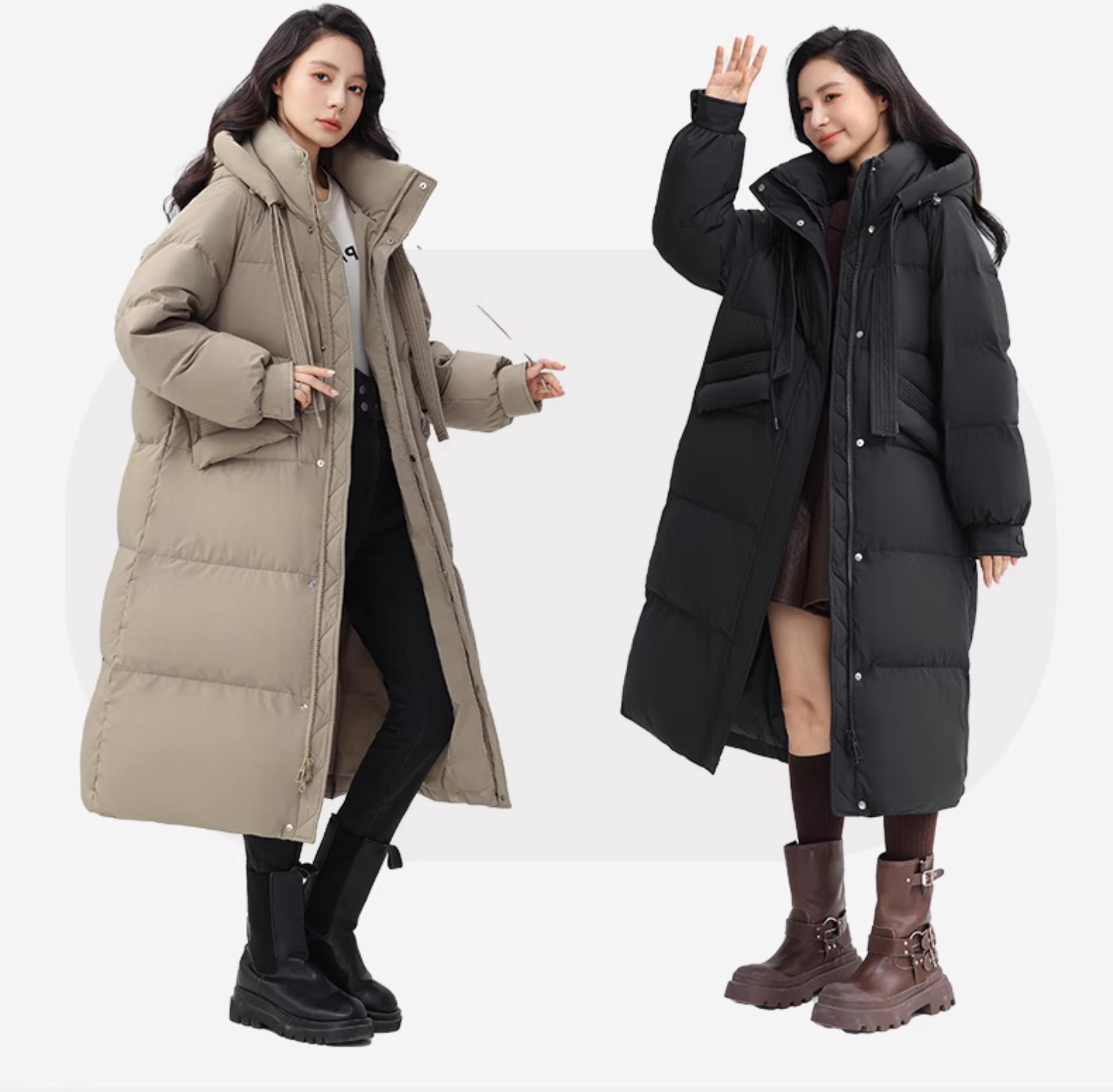 Chamarra de Plumón de Pato para Mujer Invierno Nuevo Largo con Capucha Engrosado Cuello Vertical Suelto Recto Plumón de Pato Cálida Chaqueta S
