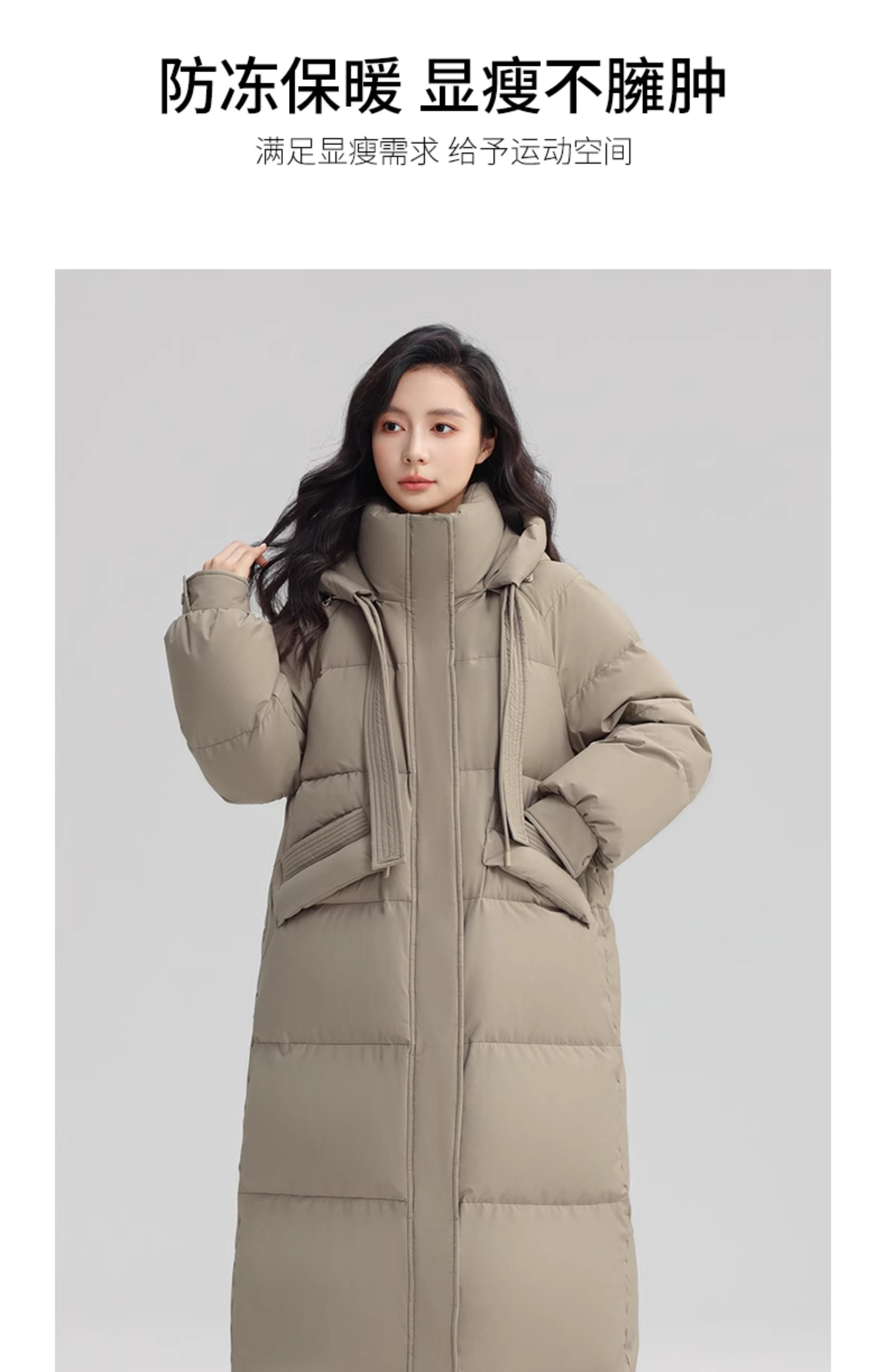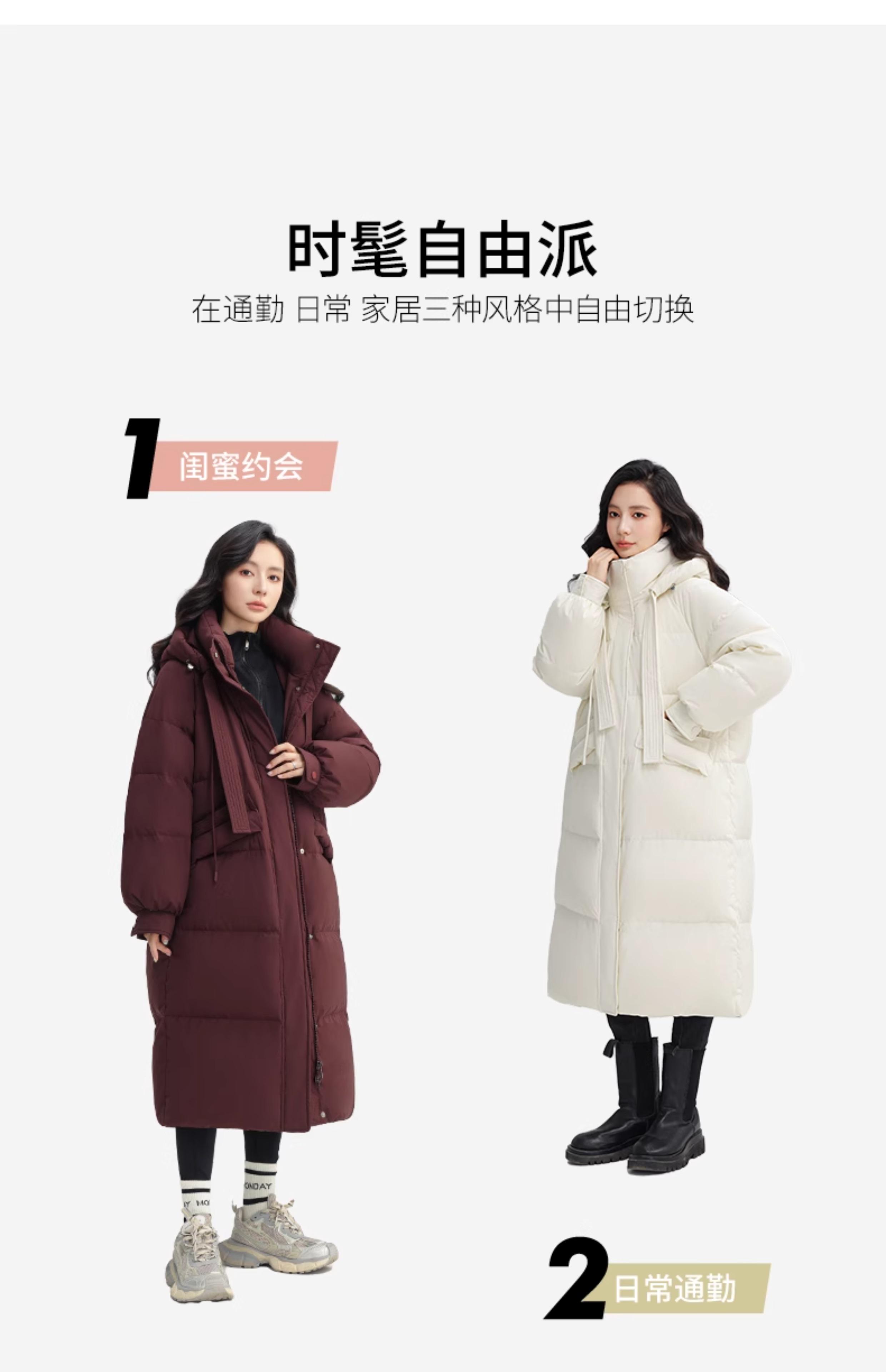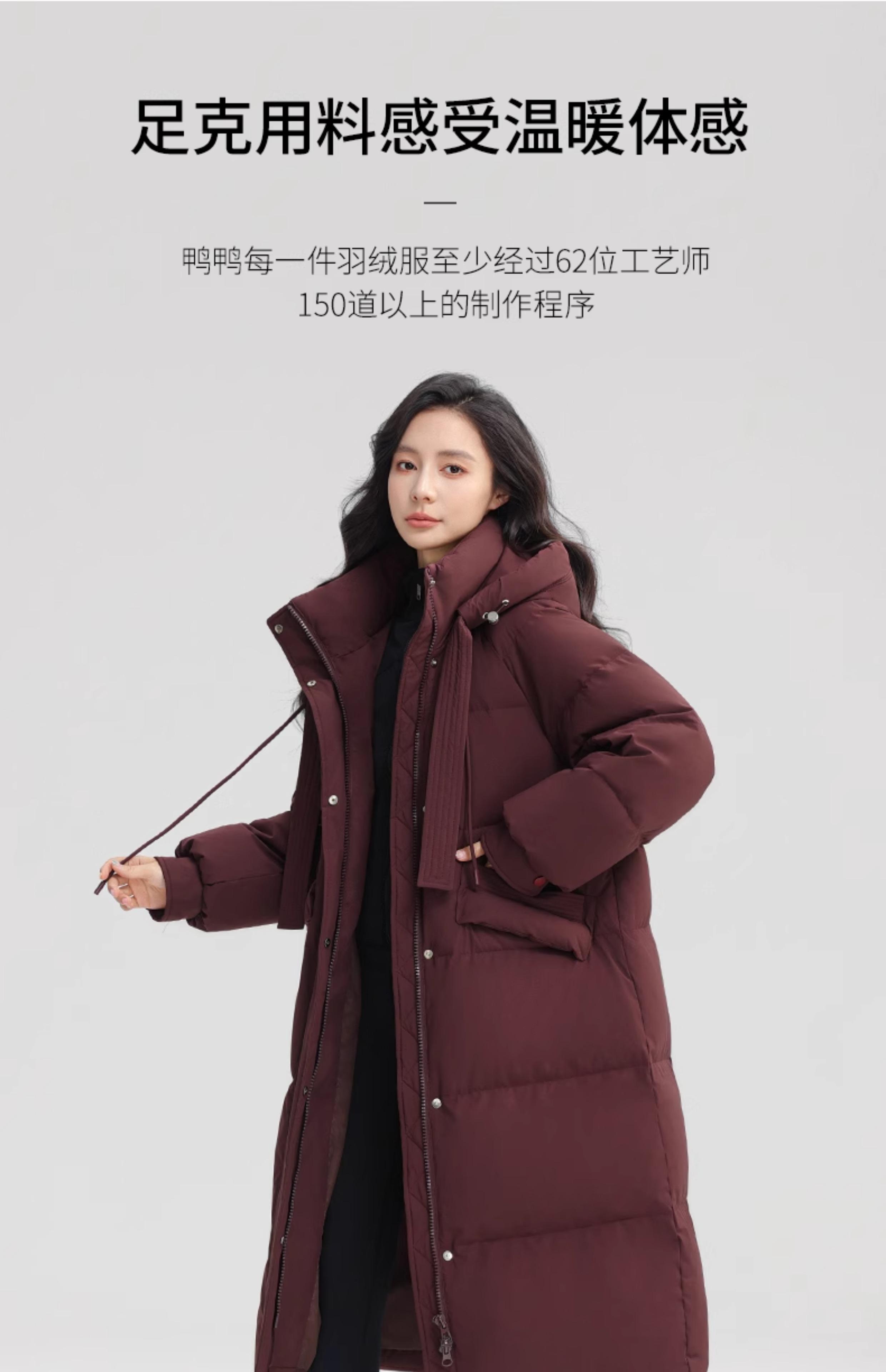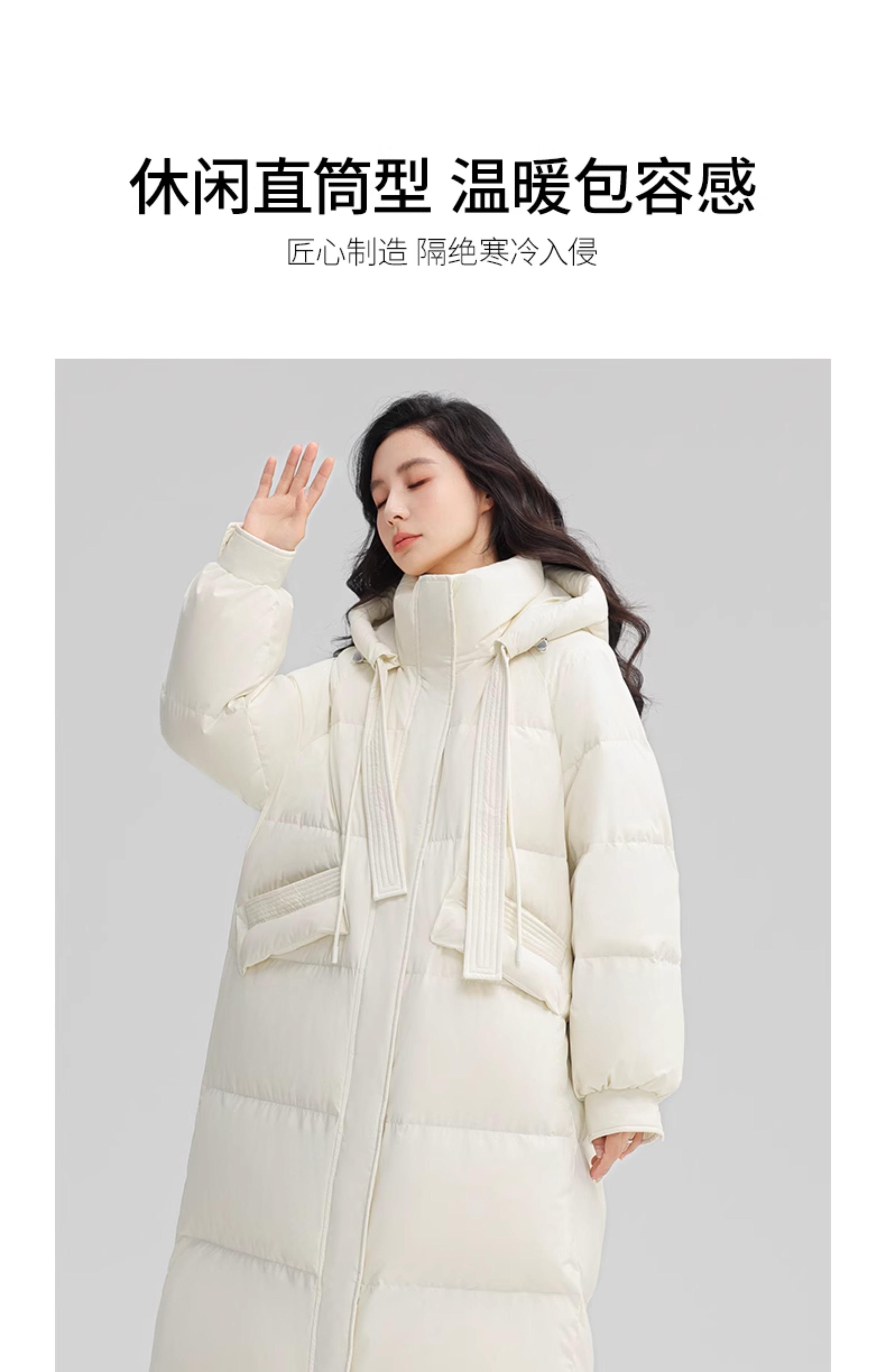 Chamarra de Plumón de Pato para Mujer Invierno Nuevo Largo con Capucha Engrosado Cuello Vertical Suelto Recto Plumón de Pato Cálida Chaqueta S