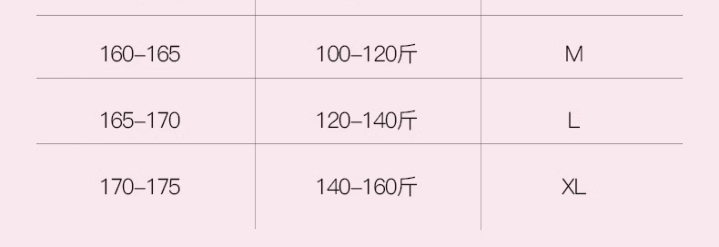 S (recommended 40-50kg ), M (recommended 50-60kg ), L (recommended 60-70kg )